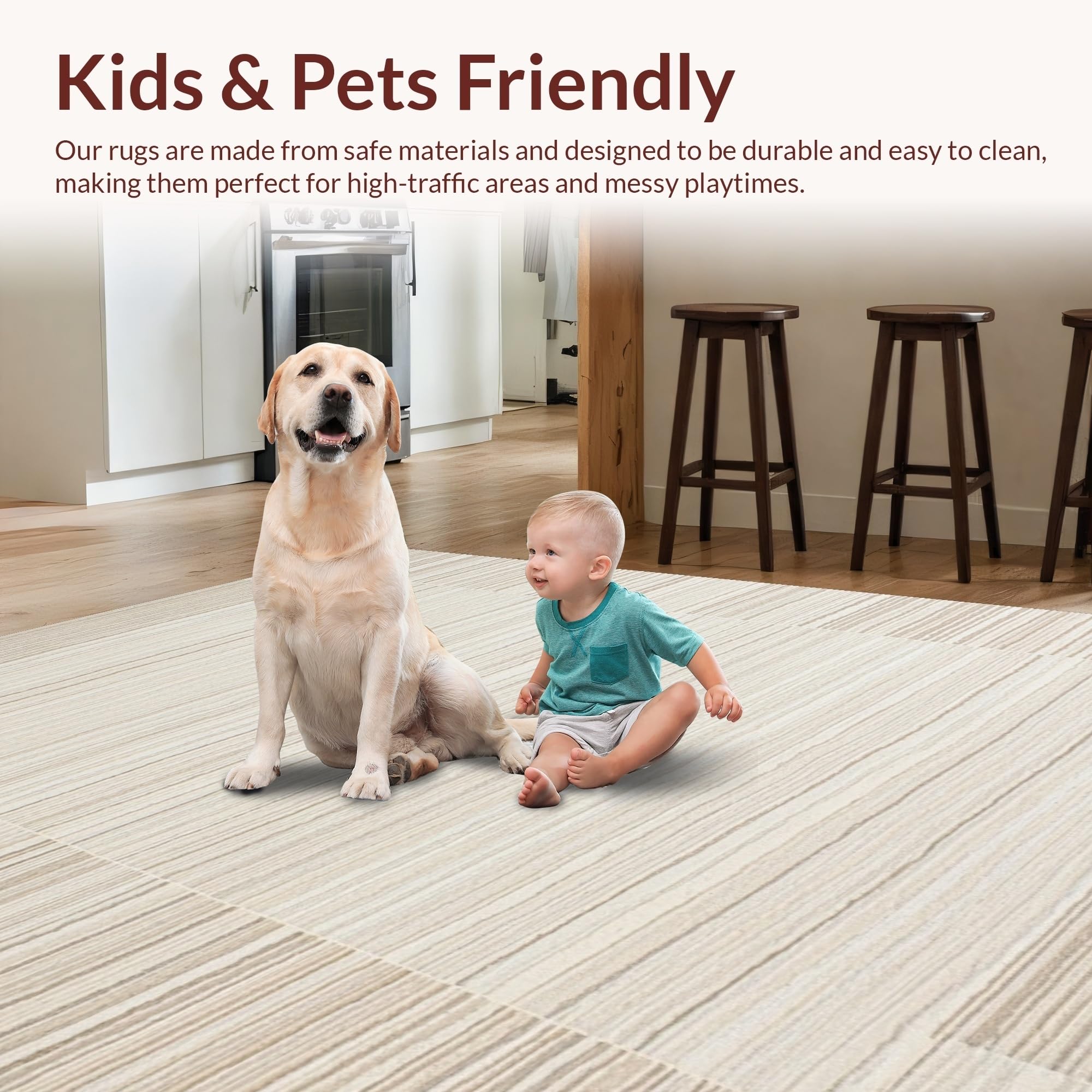 Ultra Soft Area Rug, Non Slip, Stain Resistant, Washable Area Rugs for Living Room, Bedroom, Fresh Contemporary Shaggy Look(Beige) Overview: