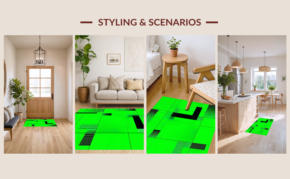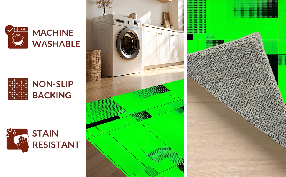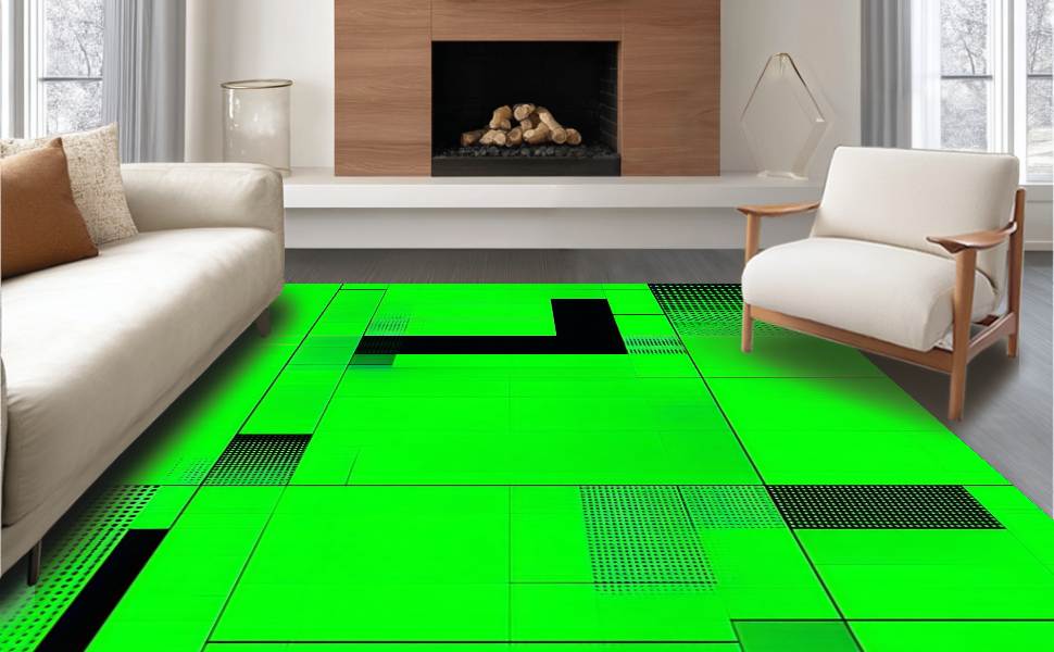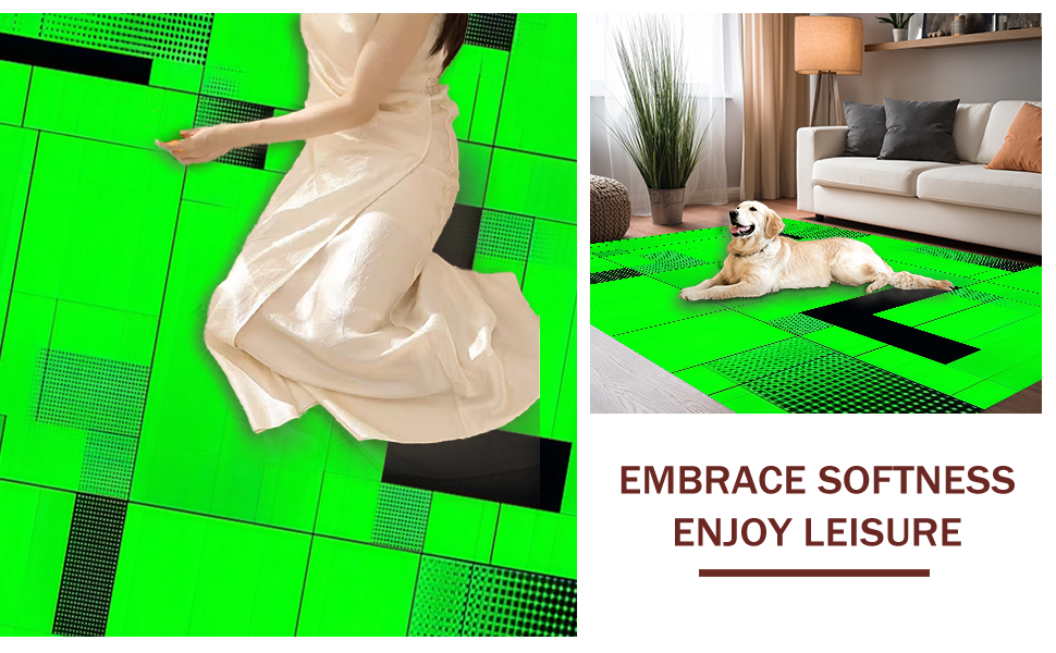 Ultra Soft Area Rug, Non Slip, Stain Resistant, Washable Area Rugs for Living Room, Bedroom, Fresh Earthy Tones and Shapes(Green) Overview:
