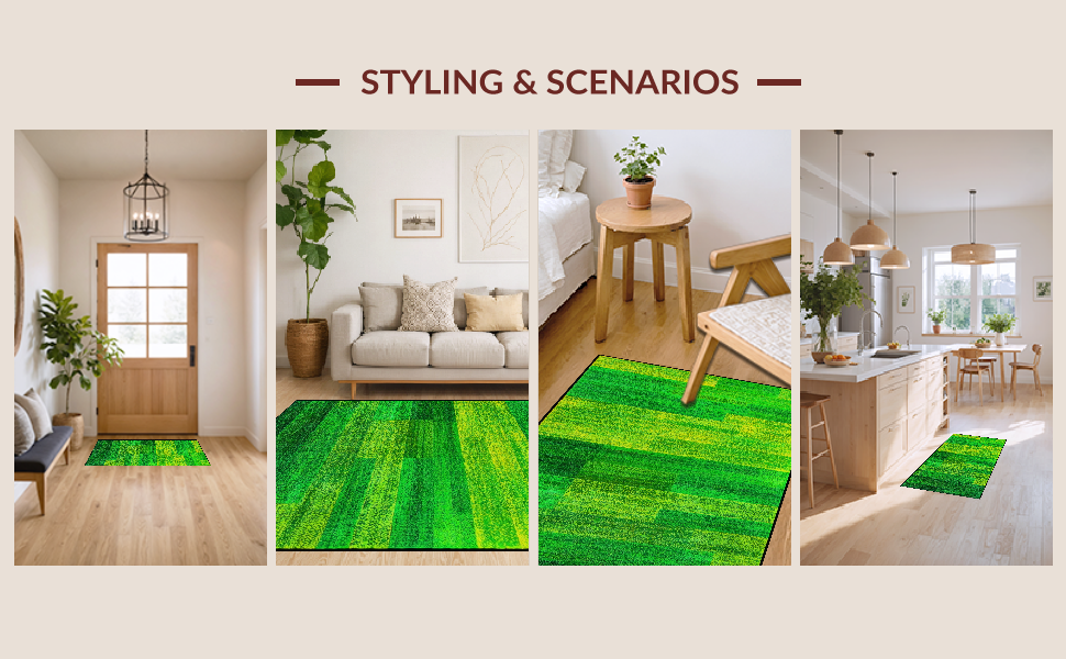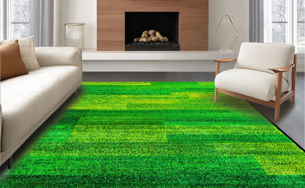 Ultra Soft Area Rug, Non Slip, Stain Resistant, Washable Area Rugs for Living Room, Bedroom, Fresh Earthy Tones Mosaic Style(Green) Overview: