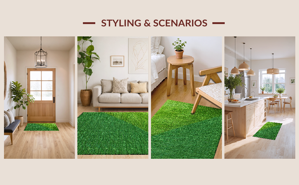 Ultra Soft Area Rug, Non Slip, Stain Resistant, Washable Area Rugs for Living Room, Bedroom, Fresh Eco-Friendly Outdoor Mat(Green) Overview: