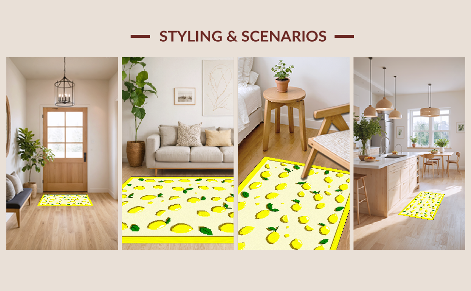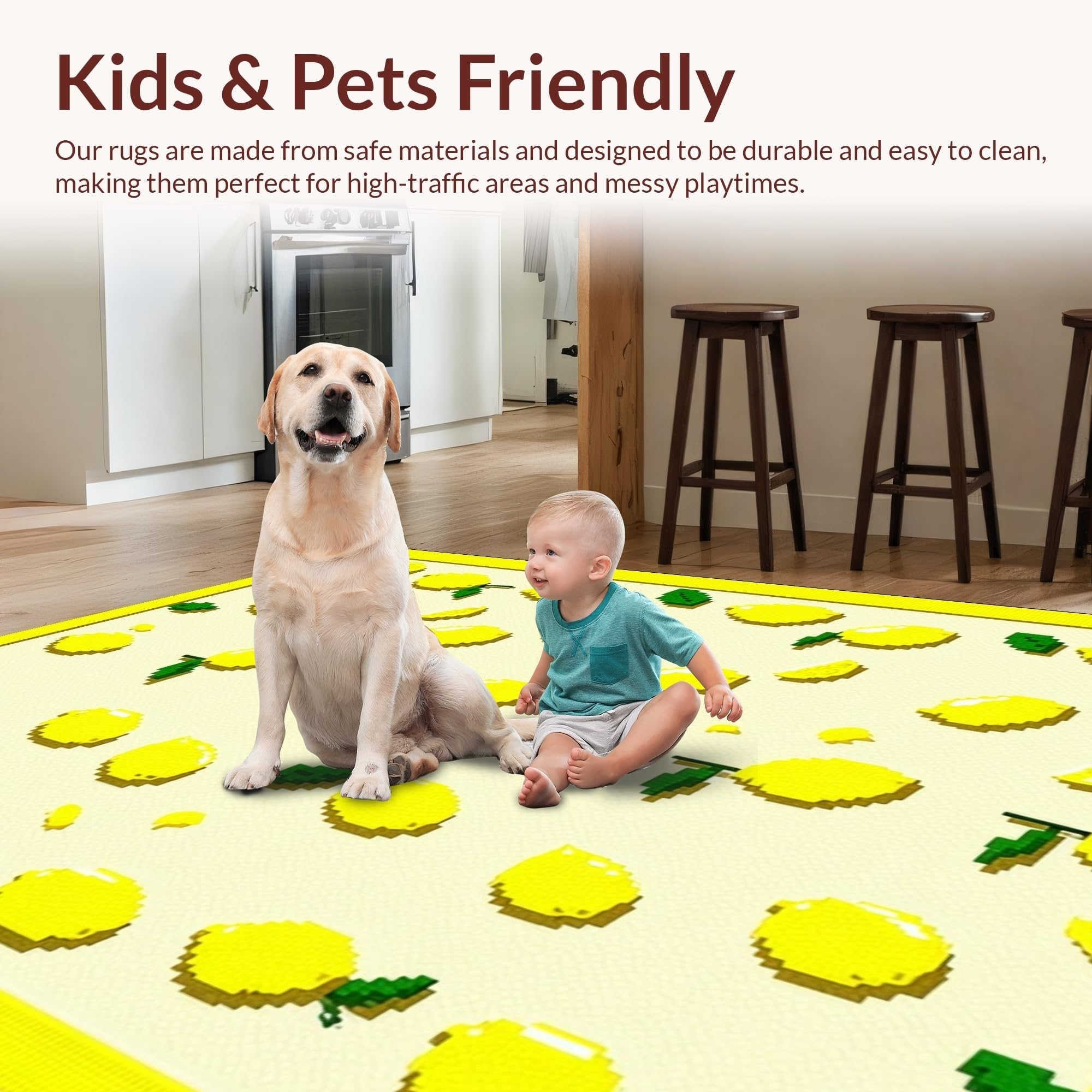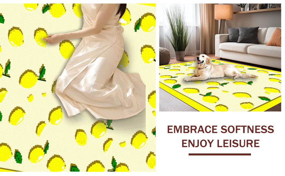 Ultra Soft Area Rug, Non Slip, Stain Resistant, Washable Area Rugs for Living Room, Bedroom, Fresh Green Accented Design(Yellow) Overview: