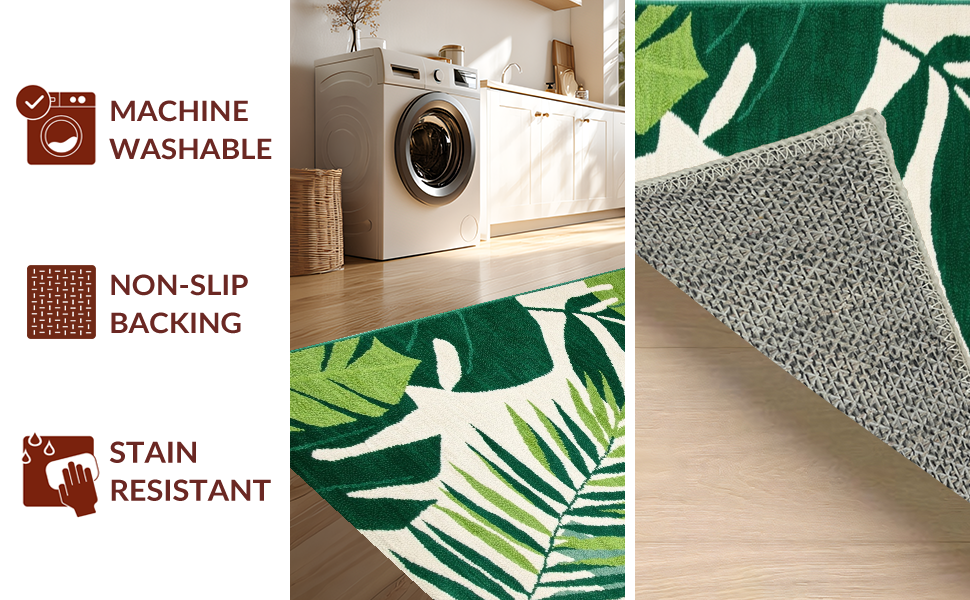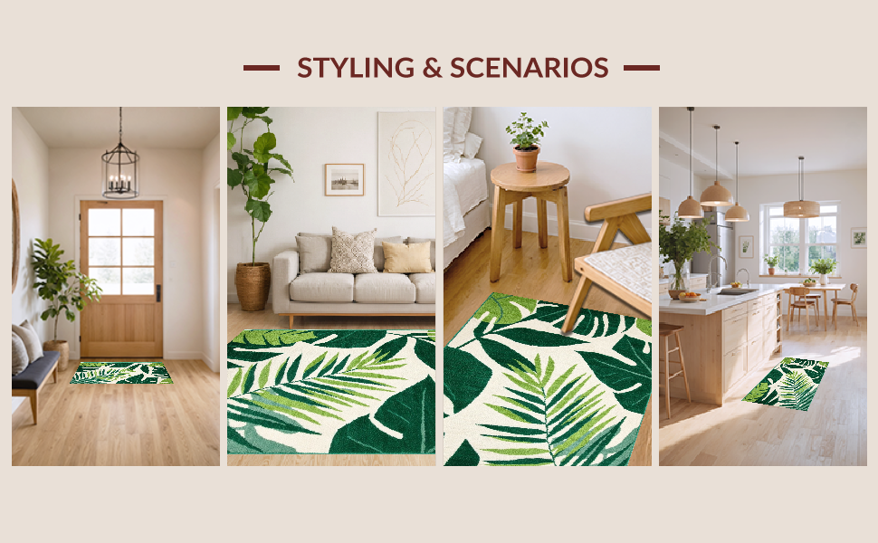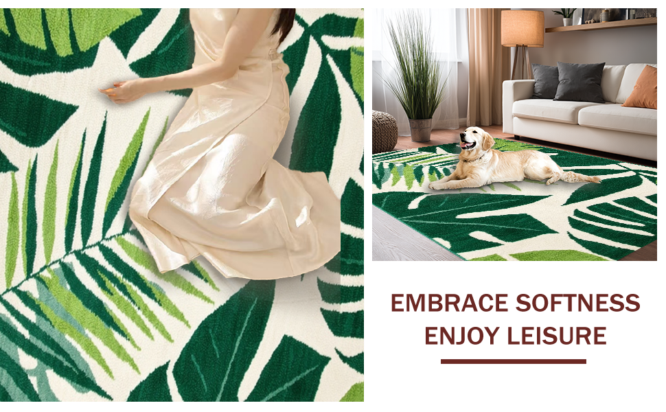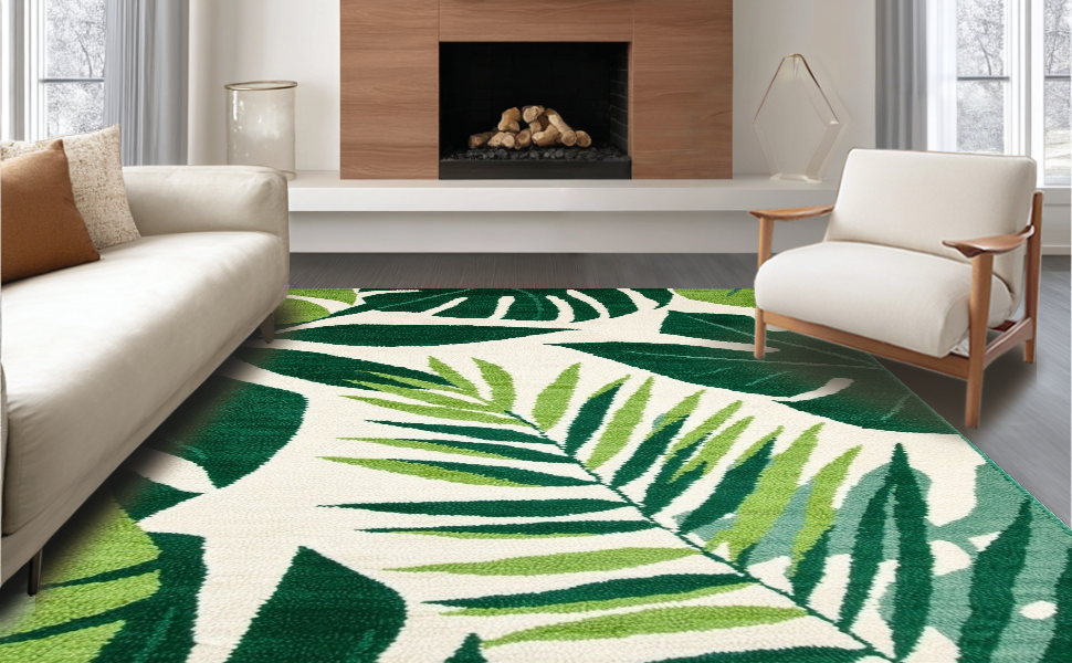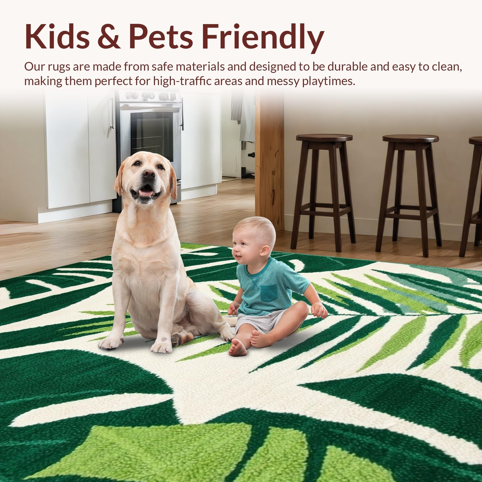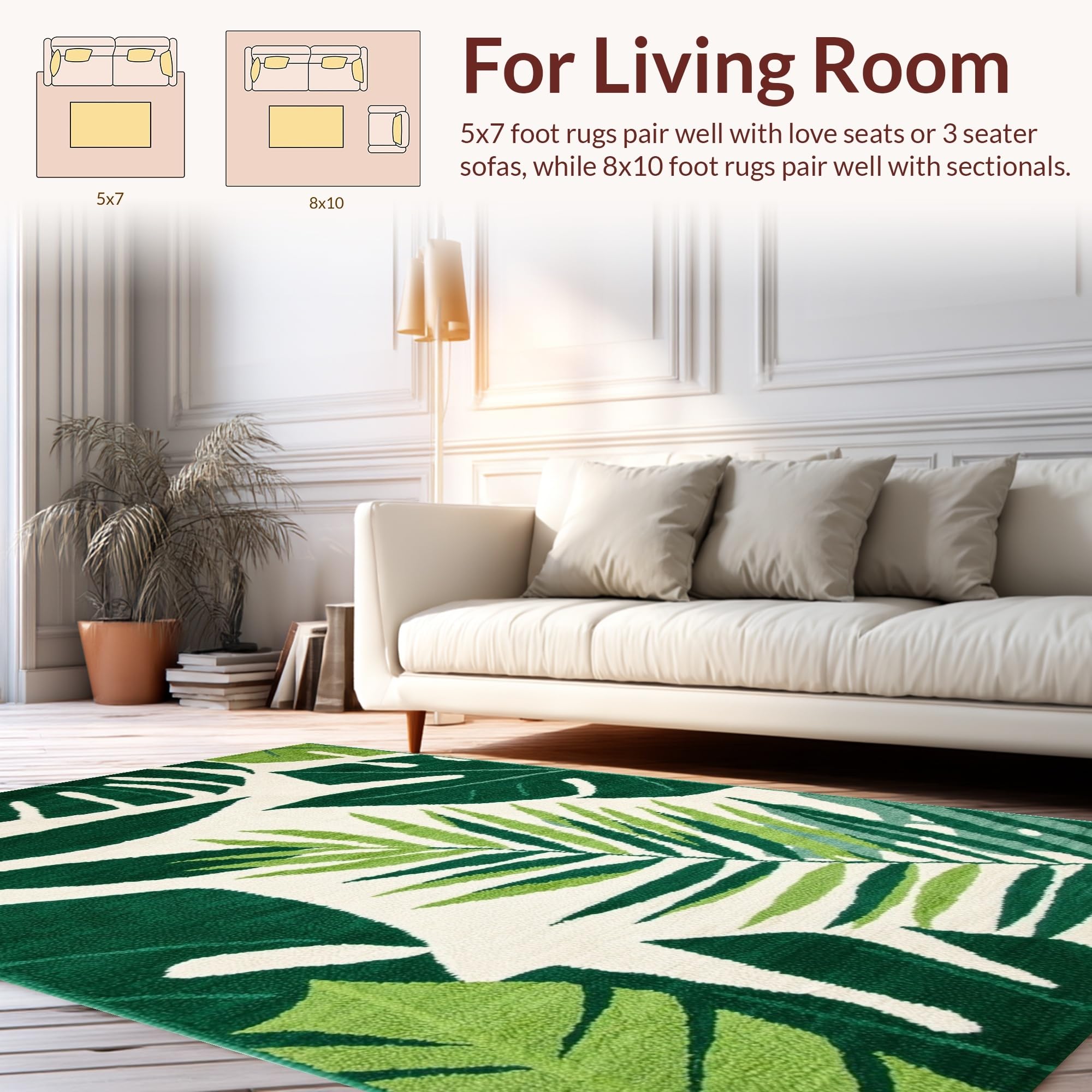 Ultra Soft Area Rug, Non Slip, Stain Resistant, Washable Area Rugs for Living Room, Bedroom, Fresh Green Botanical Aesthetic(Green) Overview: