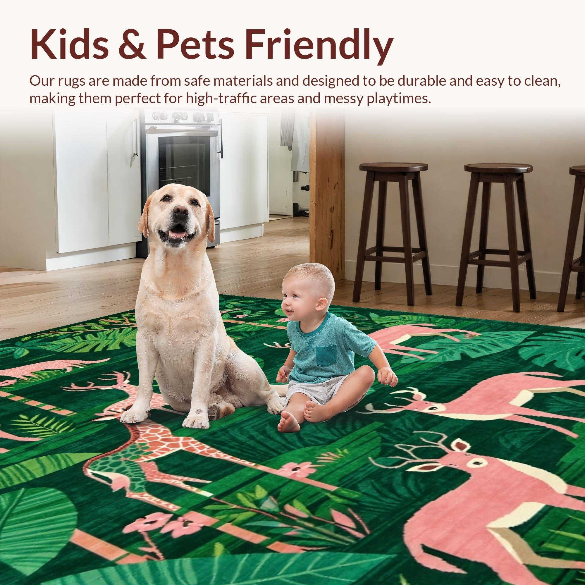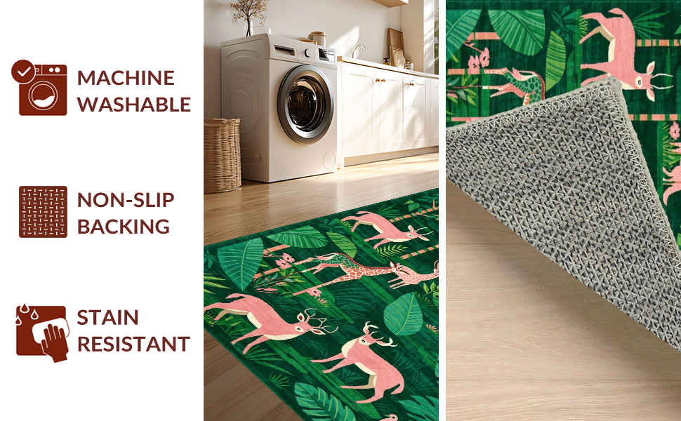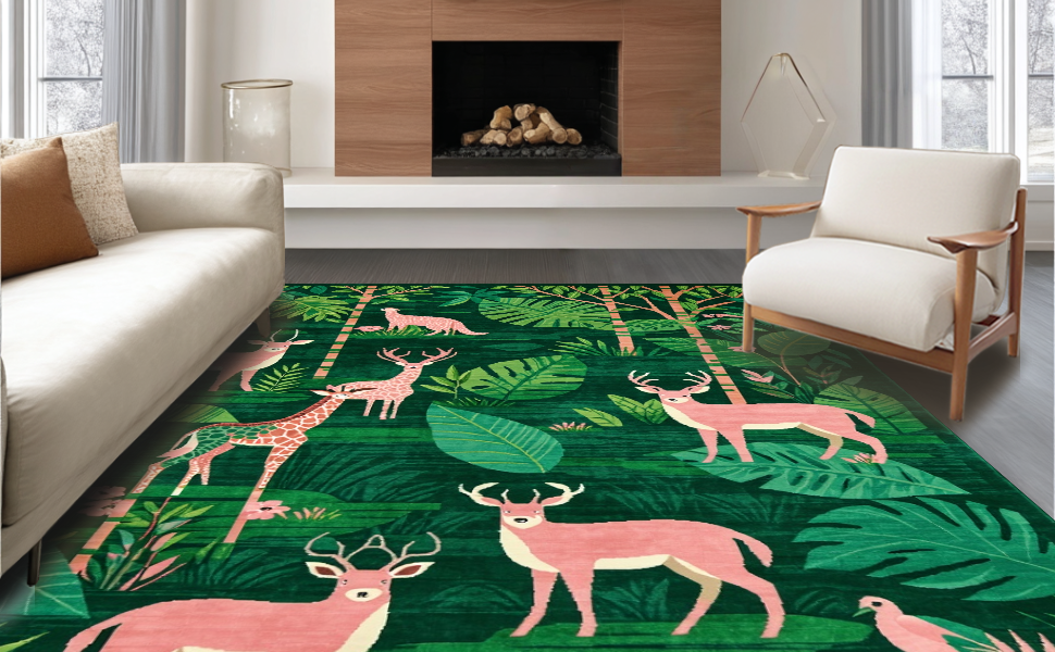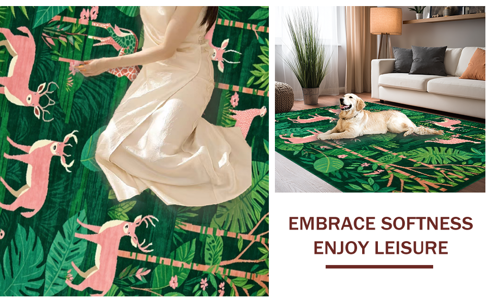 Ultra Soft Area Rug, Non Slip, Stain Resistant, Washable Area Rugs for Living Room, Bedroom, Fresh Leafy Green Decor(Green) Overview: