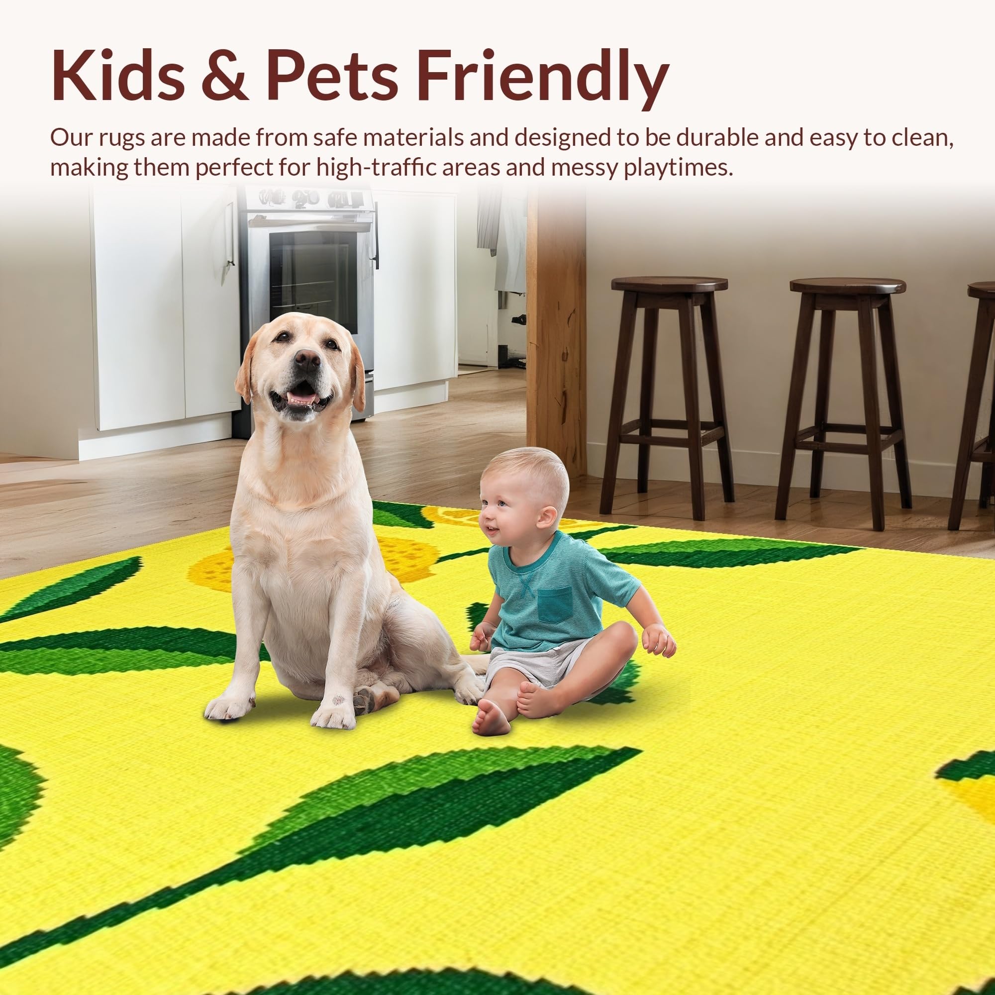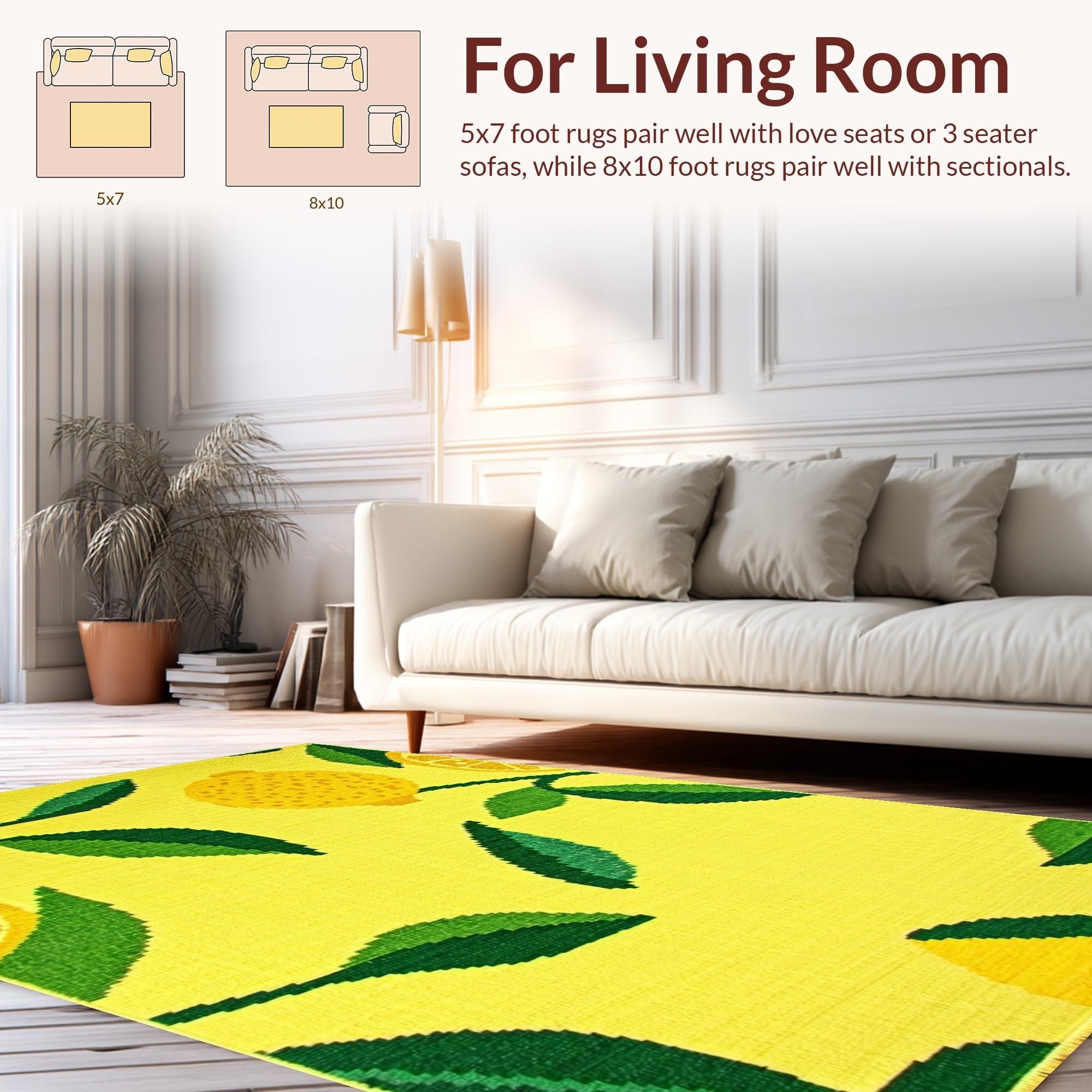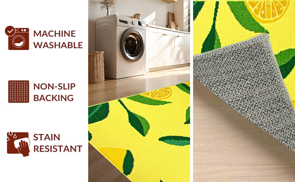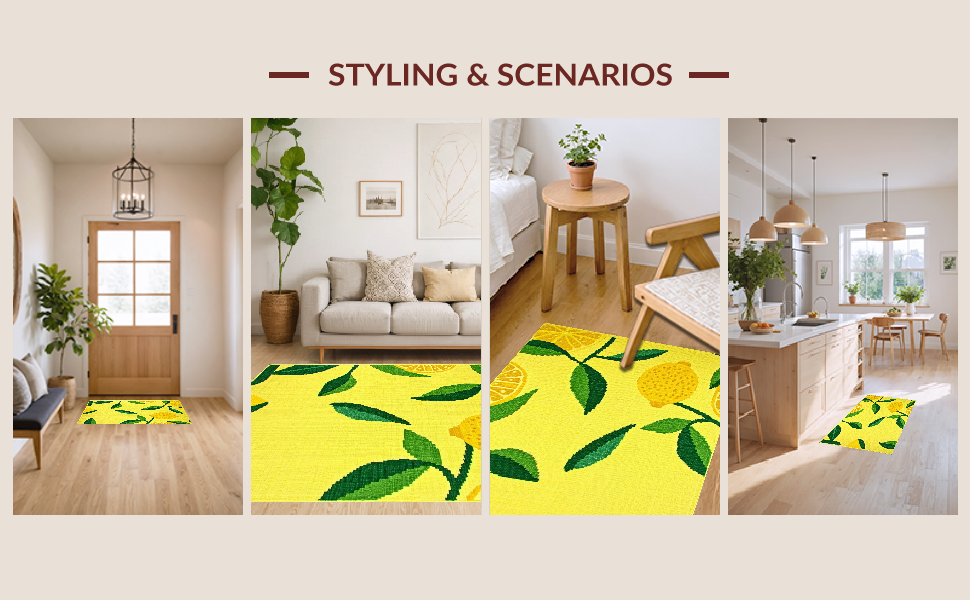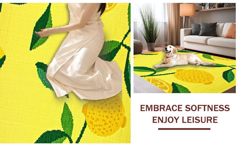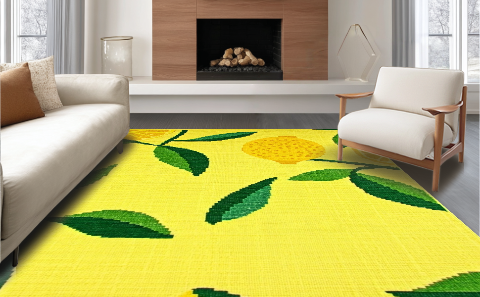 Ultra Soft Area Rug, Non Slip, Stain Resistant, Washable Area Rugs for Living Room, Bedroom, Fresh Lemon Blossom Aesthetic(Yellow) Overview: