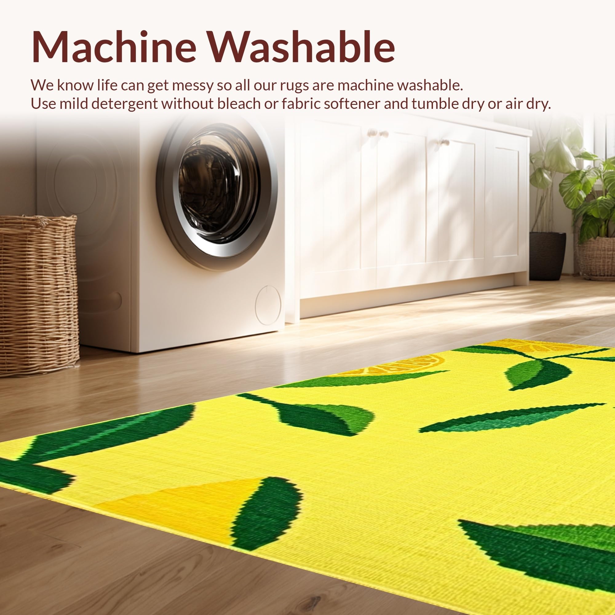 - Machine Washable: Our rugs can be easily thrown in the wash machine.