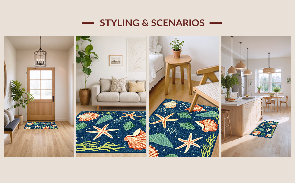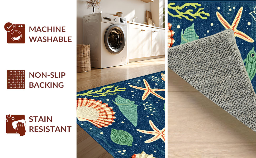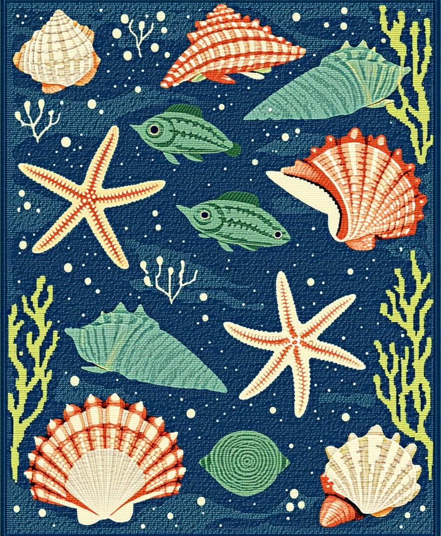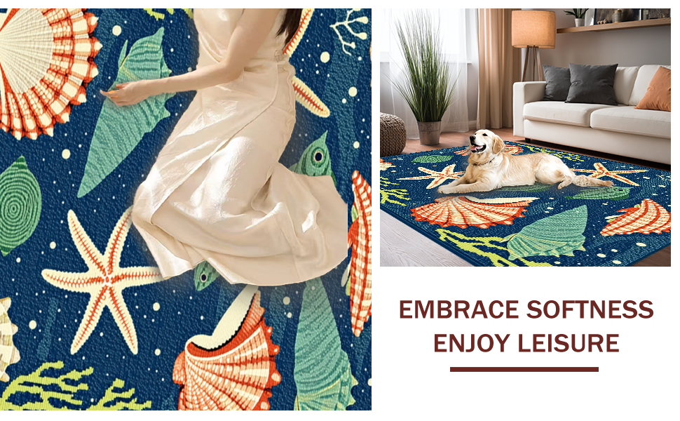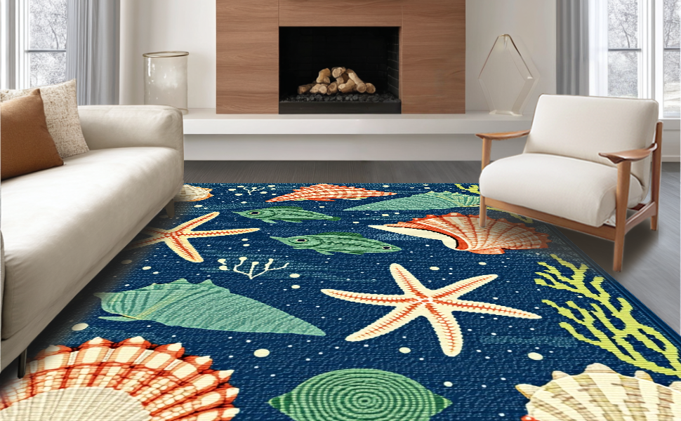 Ultra Soft Area Rug, Non Slip, Stain Resistant, Washable Area Rugs for Living Room, Bedroom, Fresh Marine Life Graphic Style(Blue) Overview: