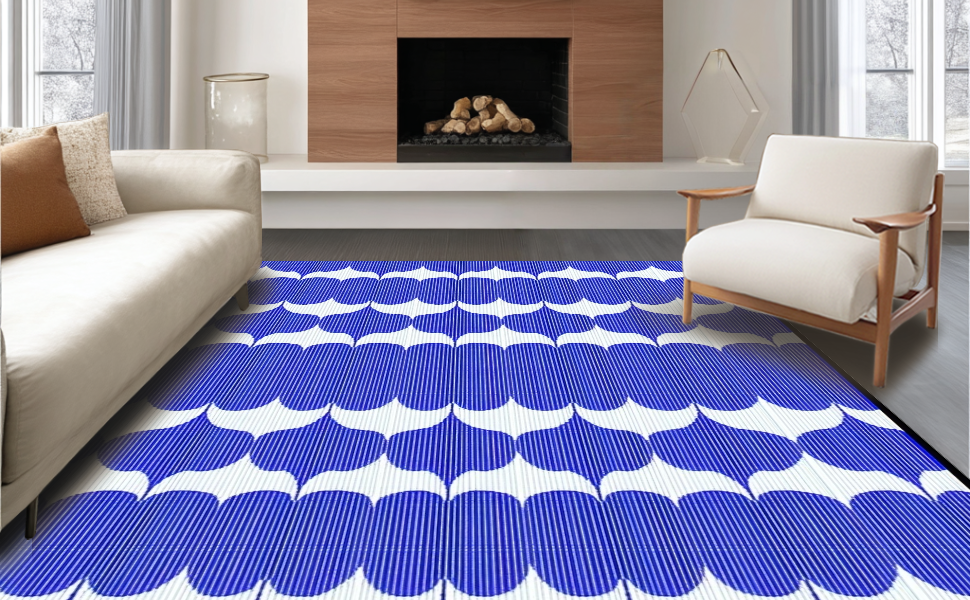 Ultra Soft Area Rug, Non Slip, Stain Resistant, Washable Area Rugs for Living Room, Bedroom, Fresh Minimalist Decorative Lines(Blue) Overview: