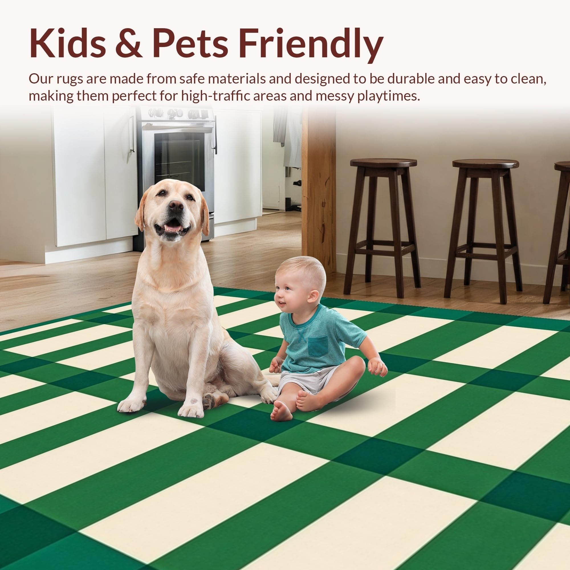 Ultra Soft Area Rug, Non Slip, Stain Resistant, Washable Area Rugs for Living Room, Bedroom, Fresh Modern Ogee Style(Green) Overview: