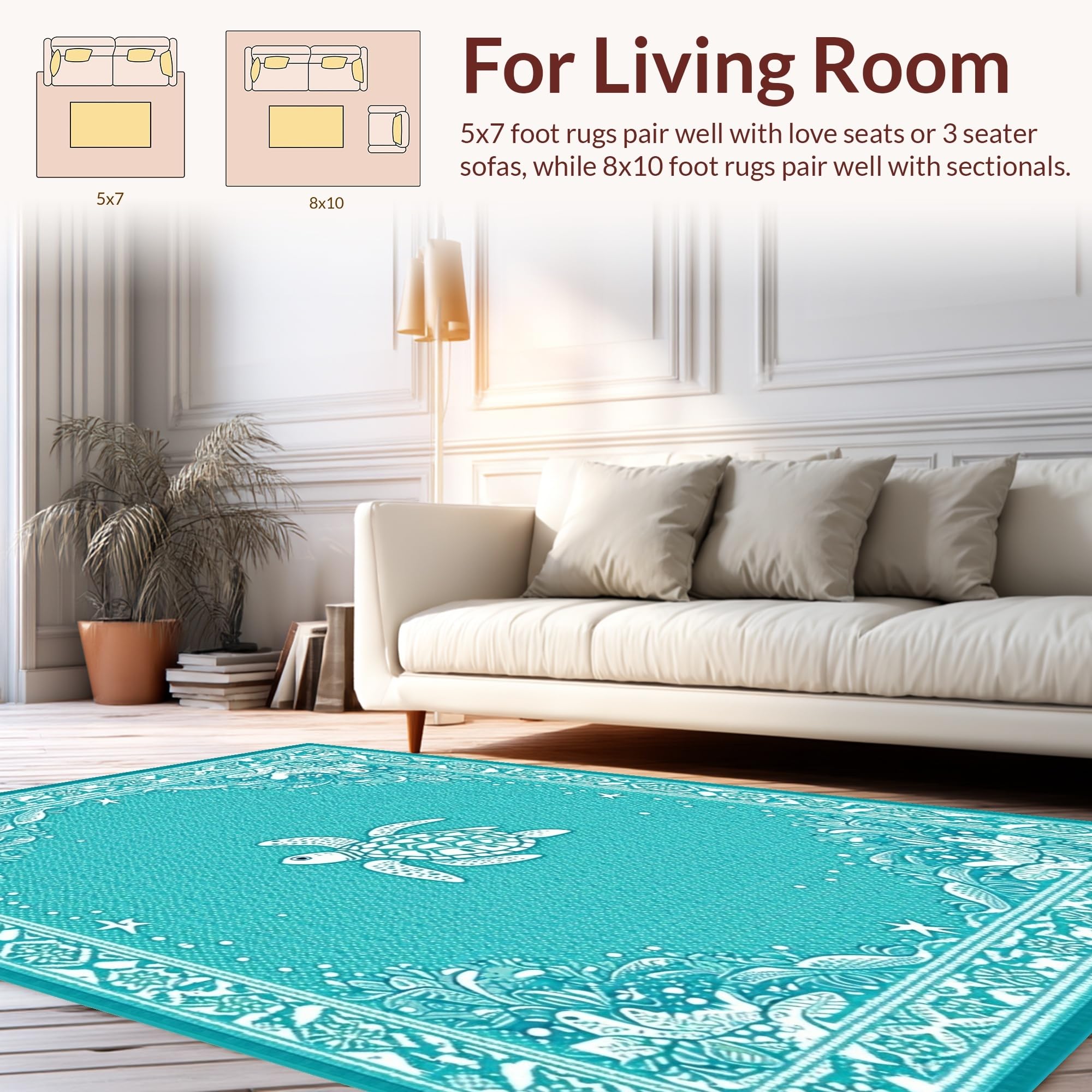 Ultra Soft Area Rug, Non Slip, Stain Resistant, Washable Area Rugs for Living Room, Bedroom, Fresh Nautical Color Palette(Blue) Overview: