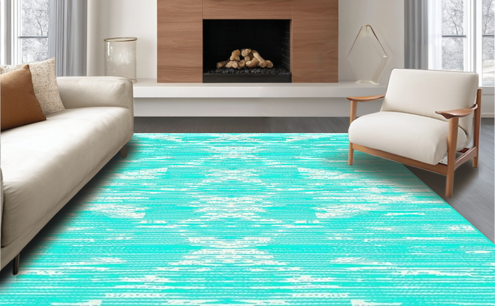 Ultra Soft Area Rug, Non Slip, Stain Resistant, Washable Area Rugs for Living Room, Bedroom, Fresh Ocean Breeze Color Palette(Blue) Overview: