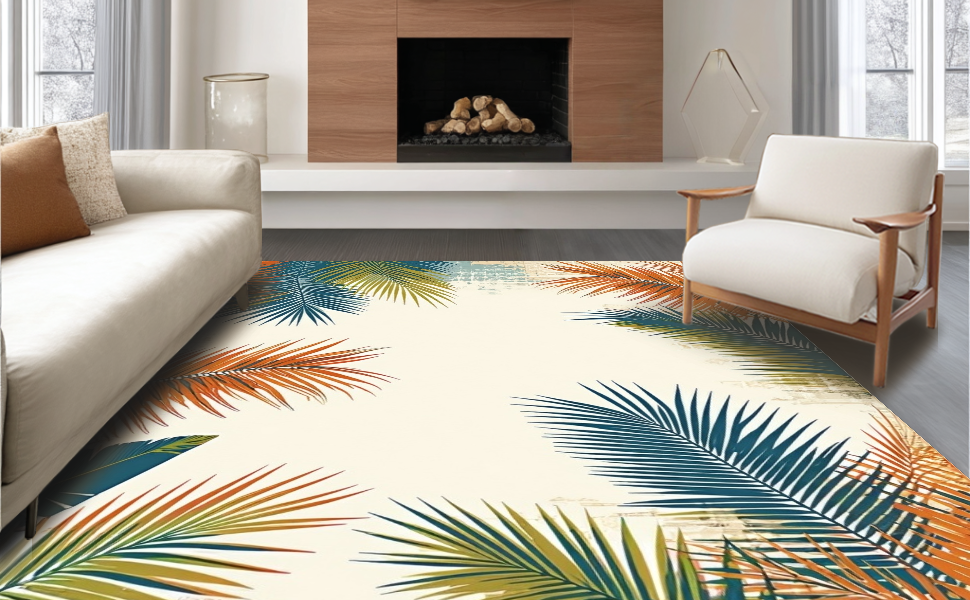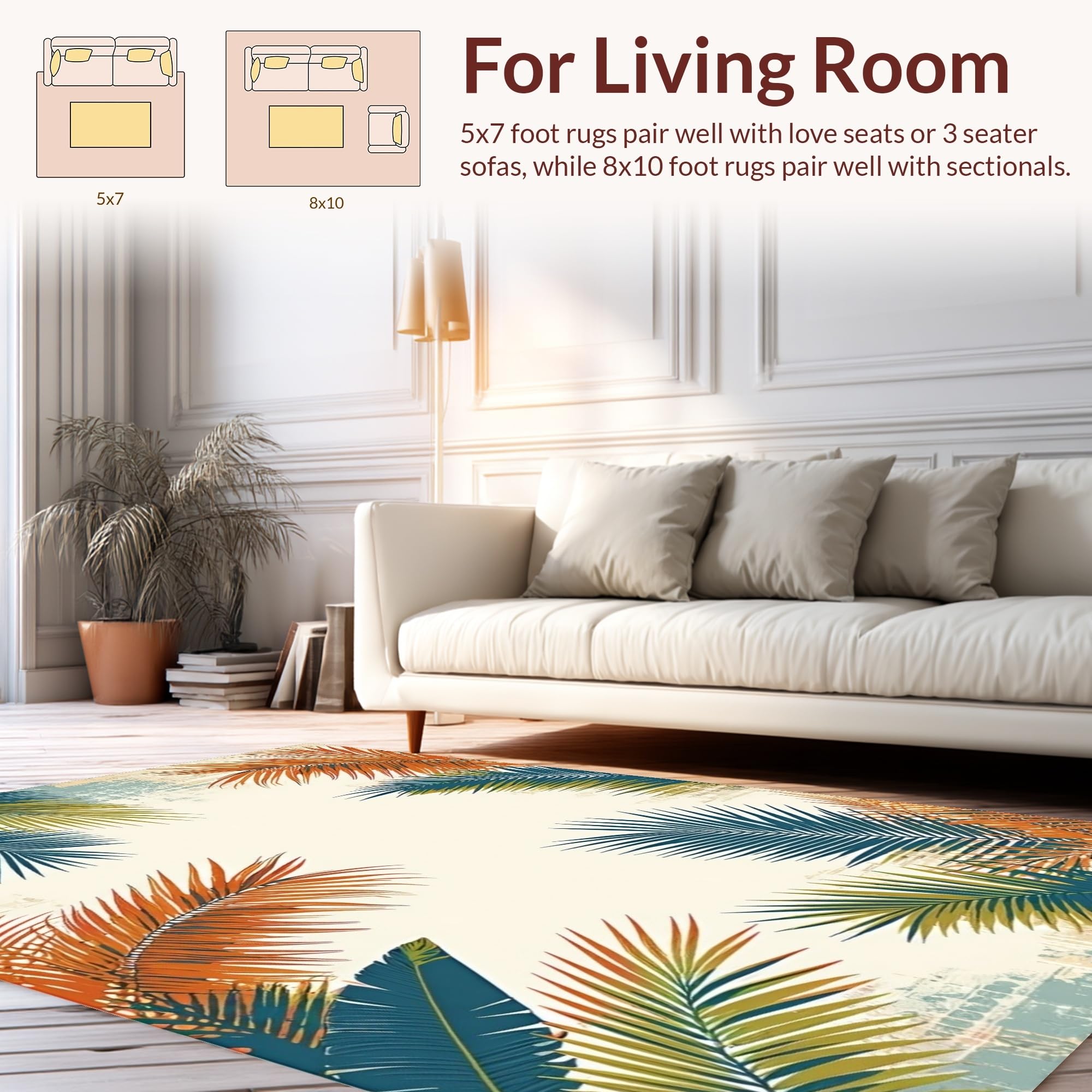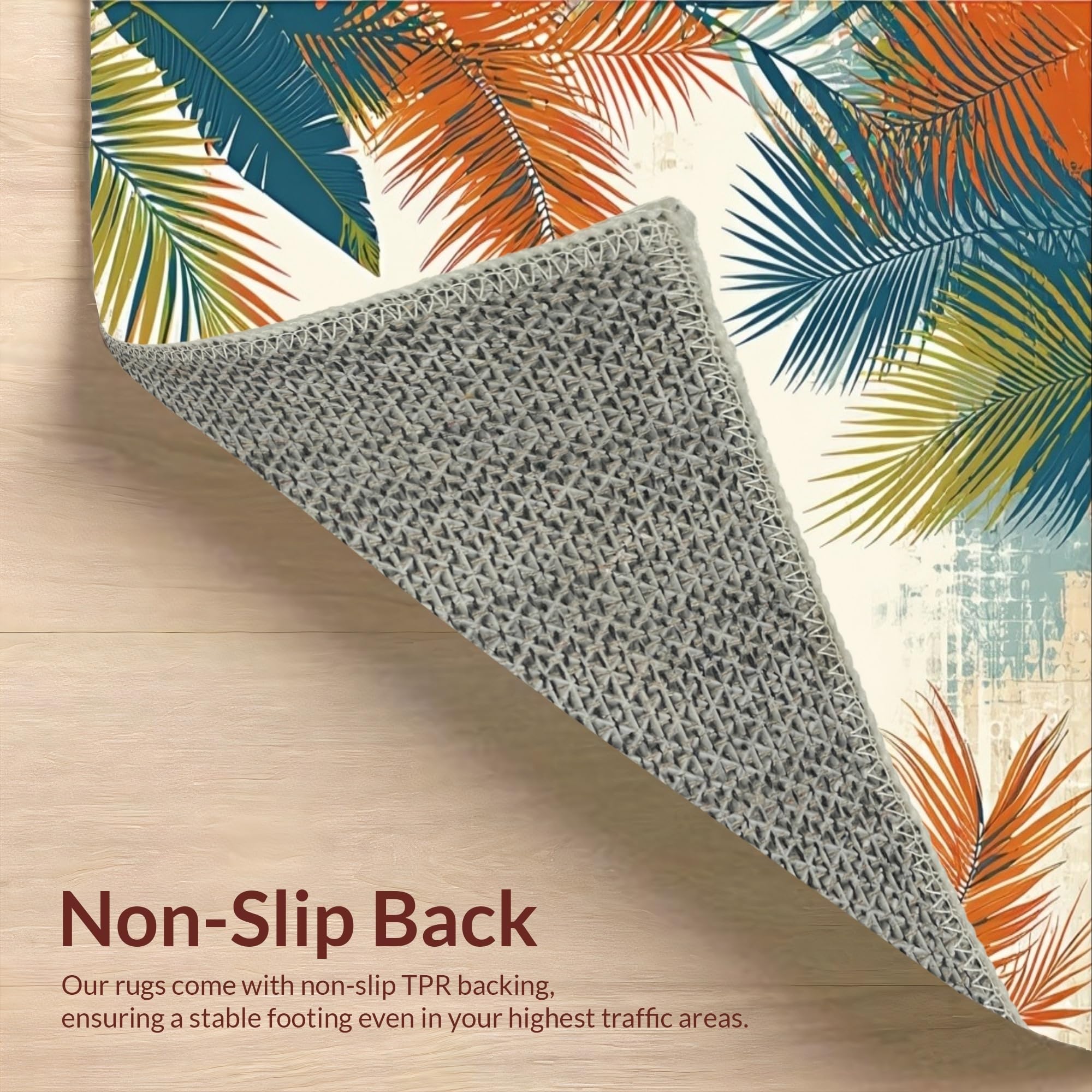 Ultra Soft Area Rug, Non Slip, Stain Resistant, Washable Area Rugs for Living Room, Bedroom, Fresh Tropical Oasis Style(Orange) Overview: