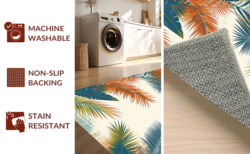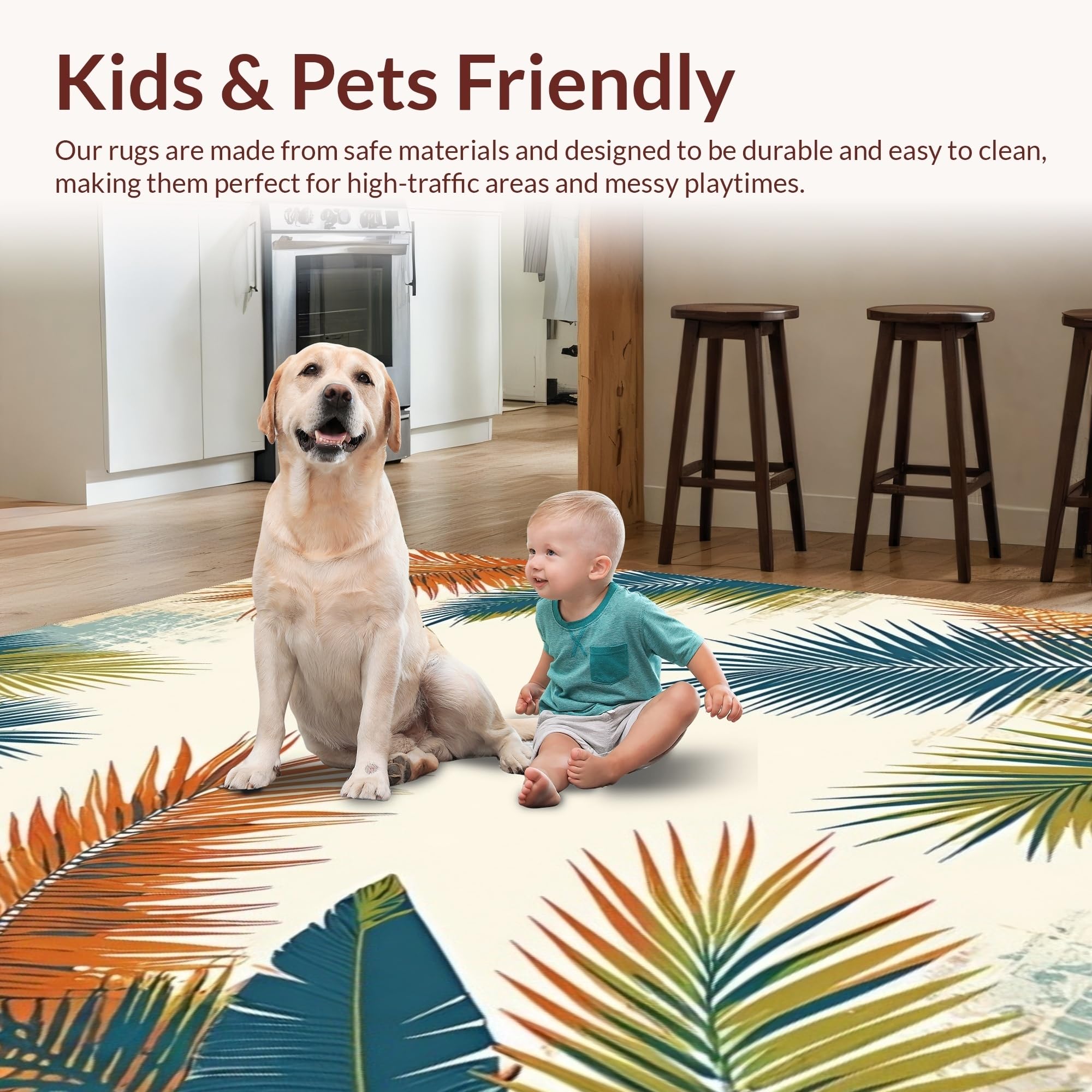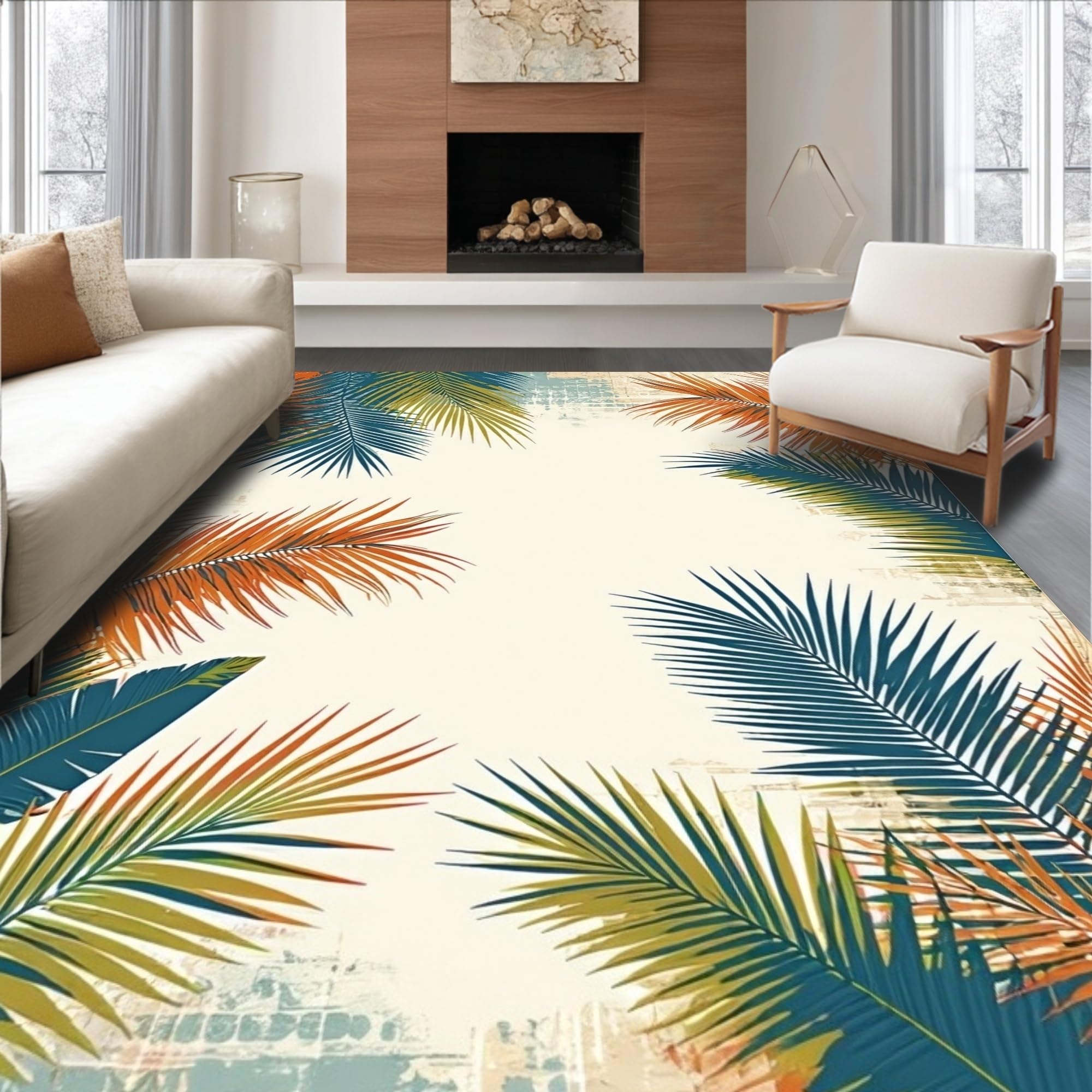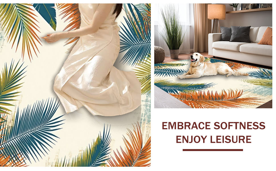 Ultra Soft Area Rug, Non Slip, Stain Resistant, Washable Area Rugs for Living Room, Bedroom, Fresh Tropical Oasis Style(Orange) Overview: