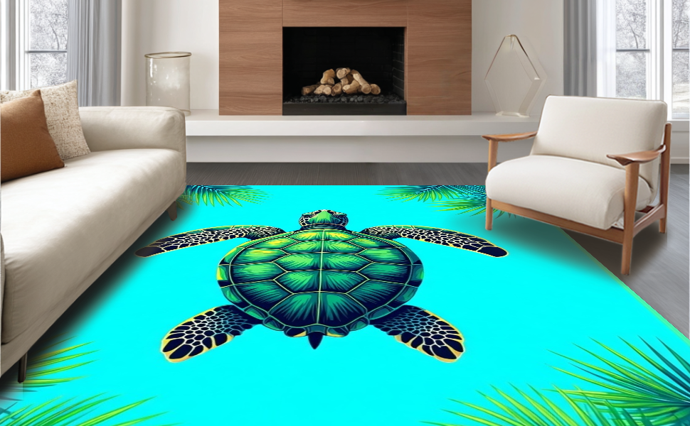 Ultra Soft Area Rug, Non Slip, Stain Resistant, Washable Area Rugs for Living Room, Bedroom, Fresh Tropical Vibes Floor Covering(Blue) Overview: