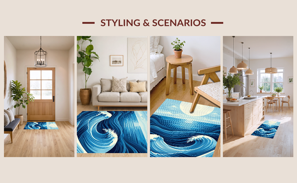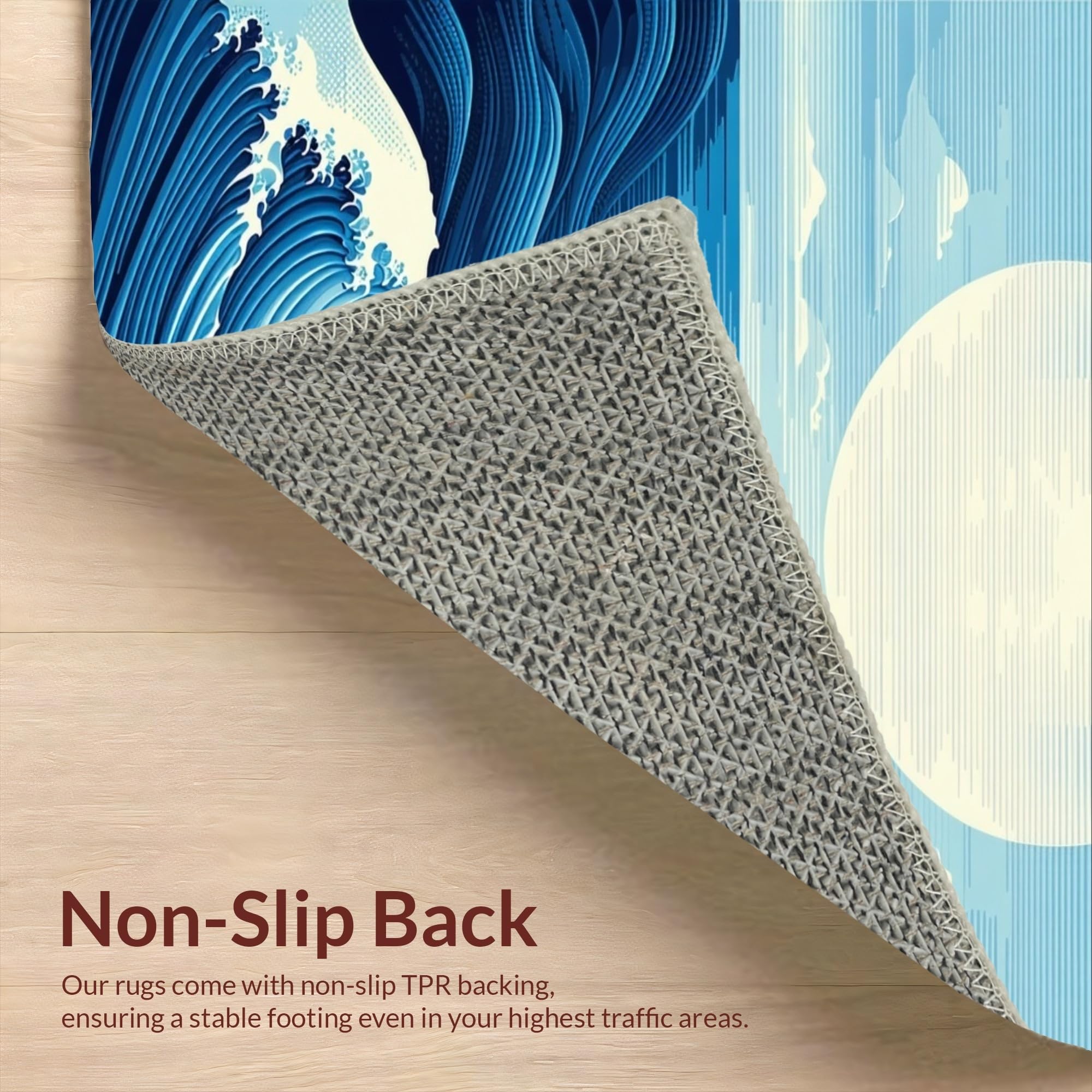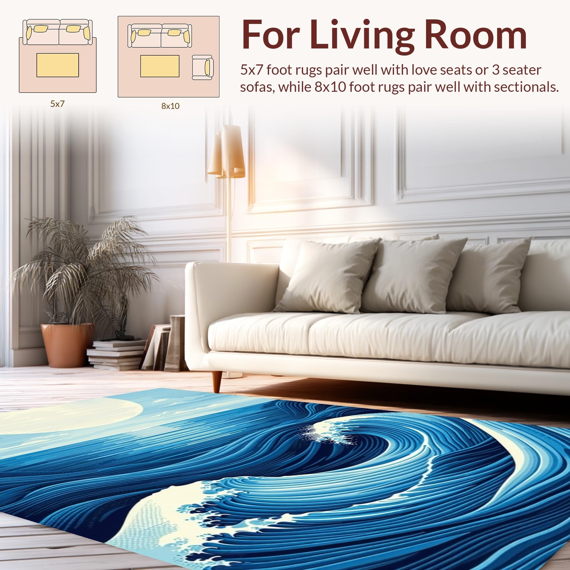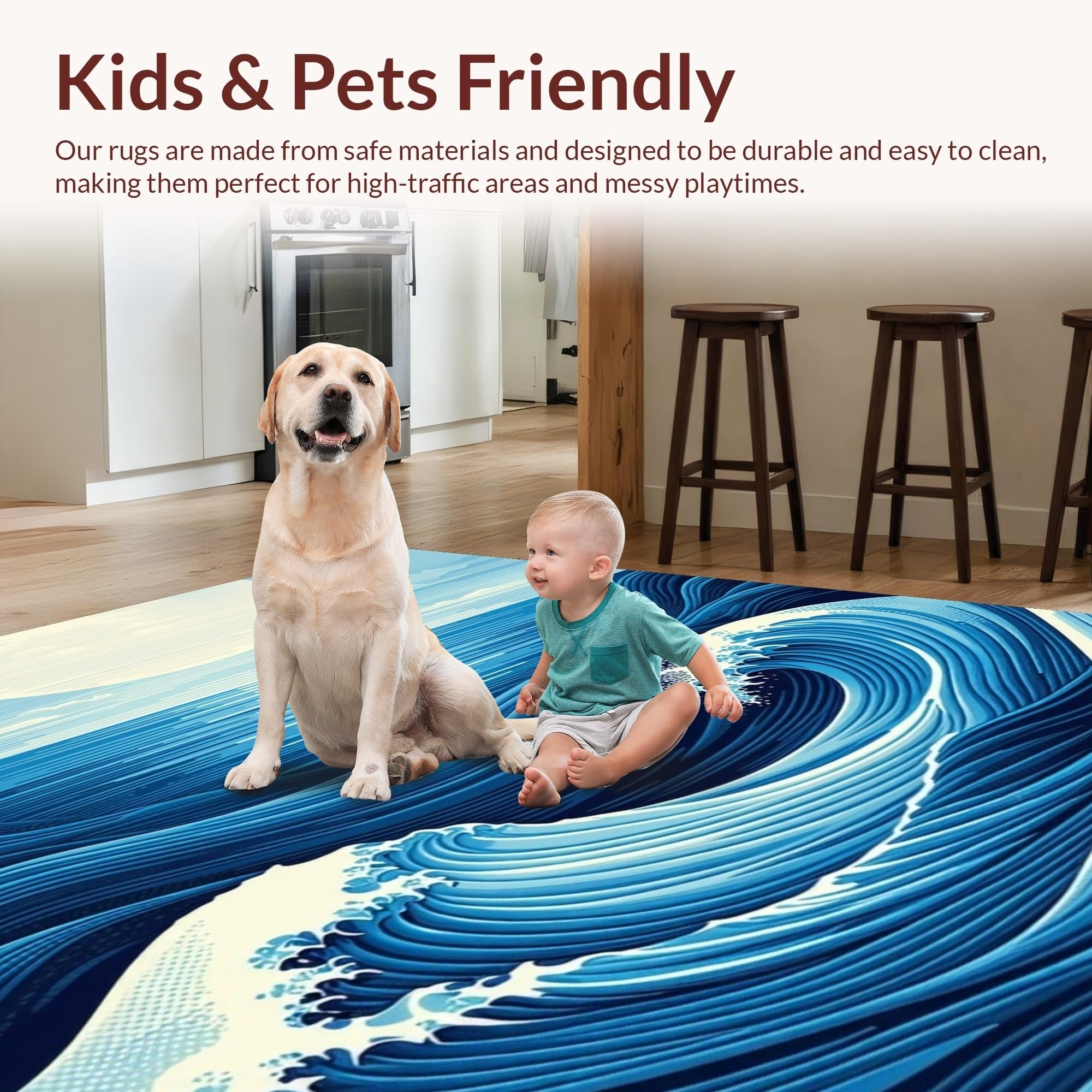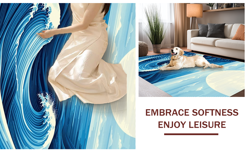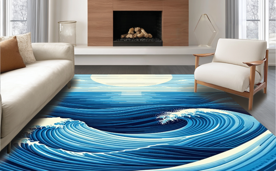 Ultra Soft Area Rug, Non Slip, Stain Resistant, Washable Area Rugs for Living Room, Bedroom, Fresh Turquoise Ripple Effect(Blue) Overview: