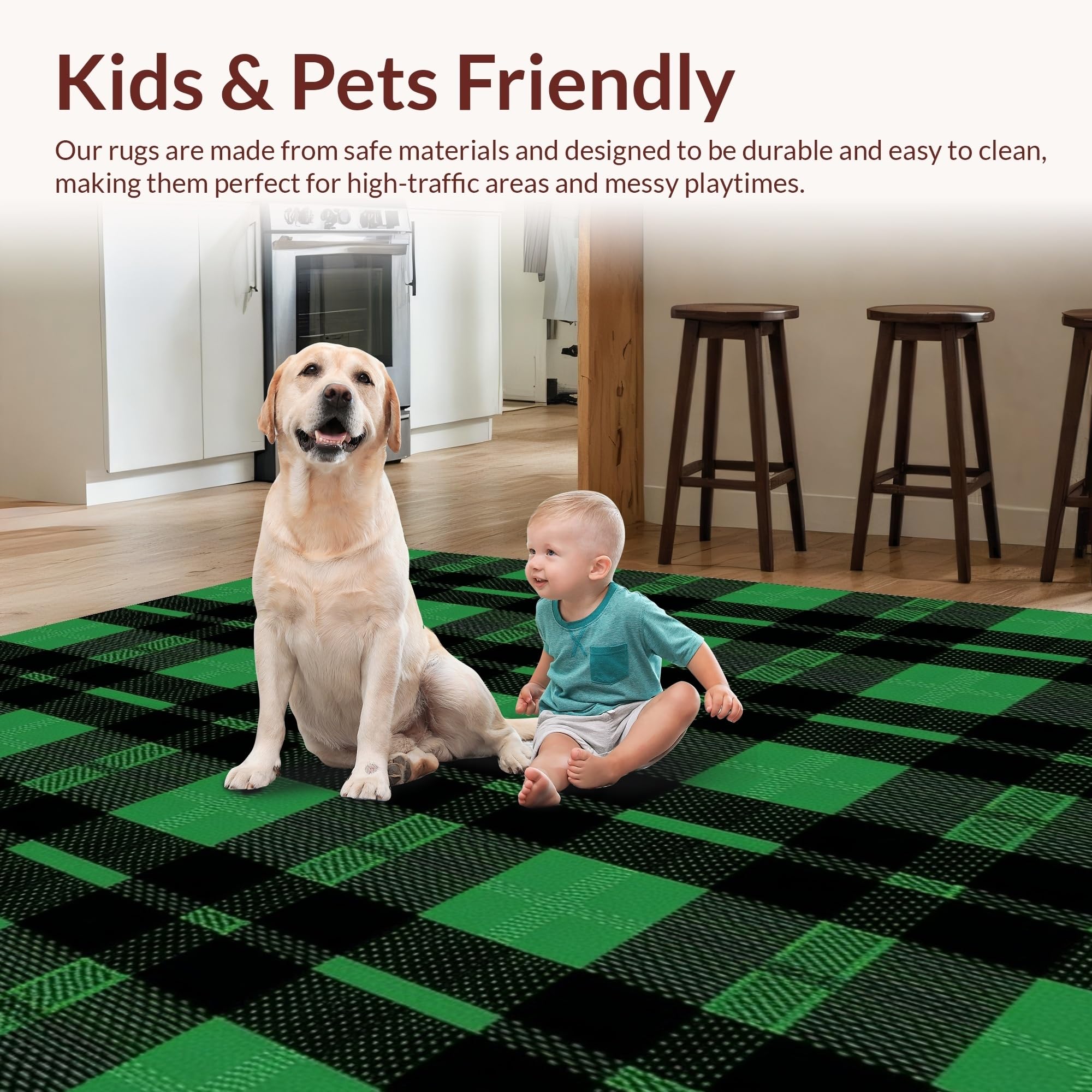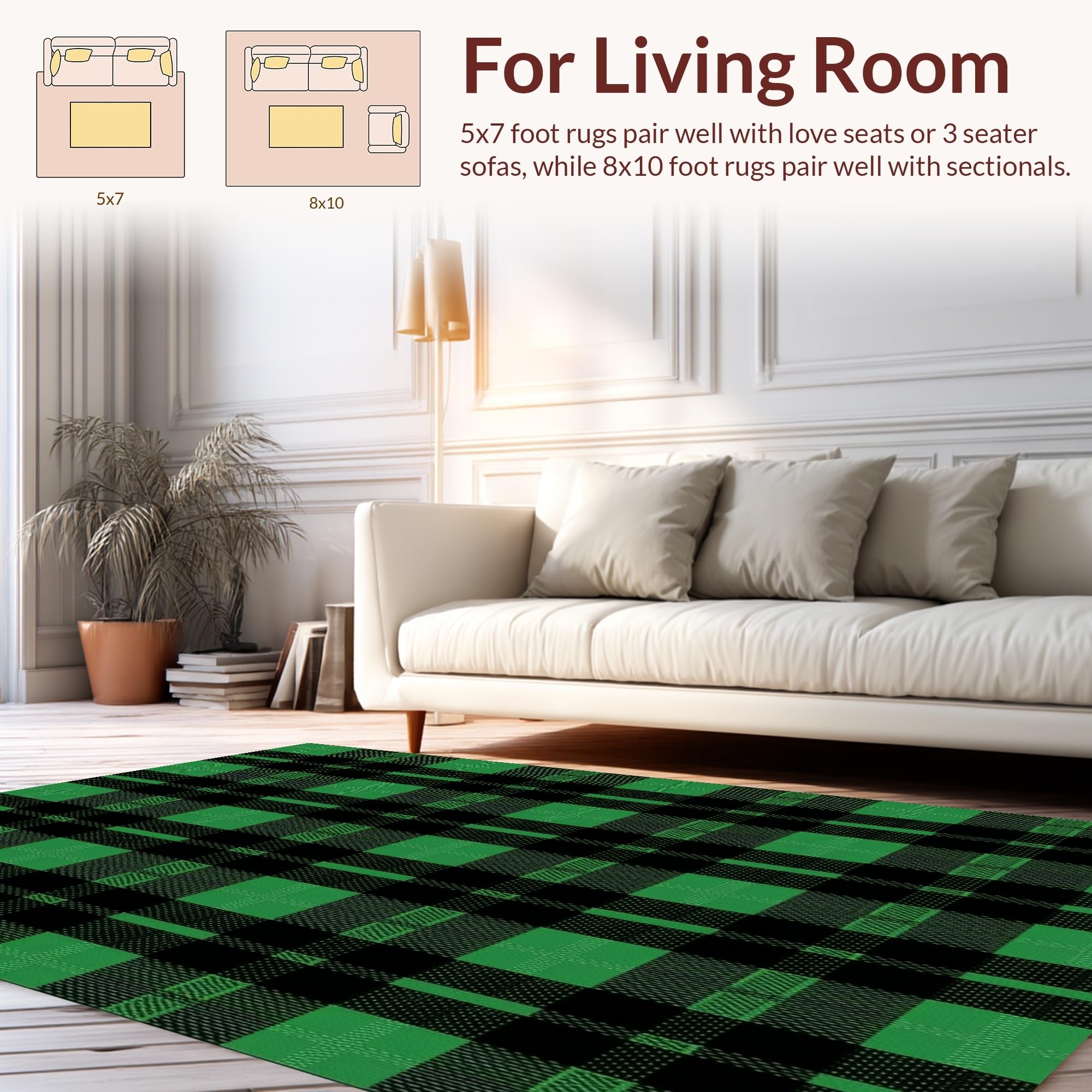 Ultra Soft Area Rug, Non Slip, Stain Resistant, Washable Area Rugs for Living Room, Bedroom, Fresh Vibrant Green Motif(Green) Overview: