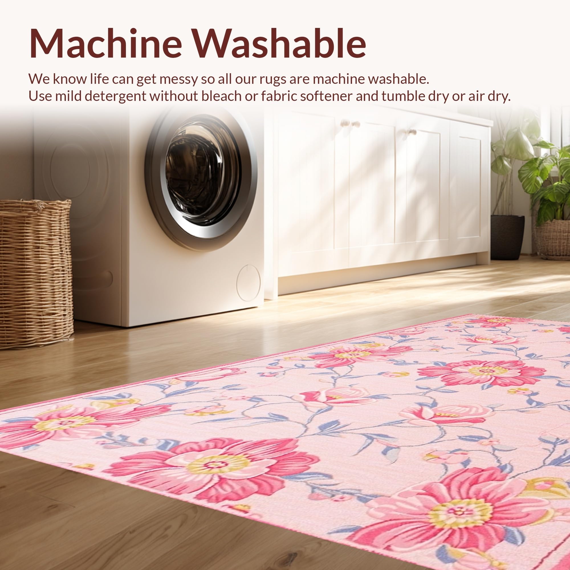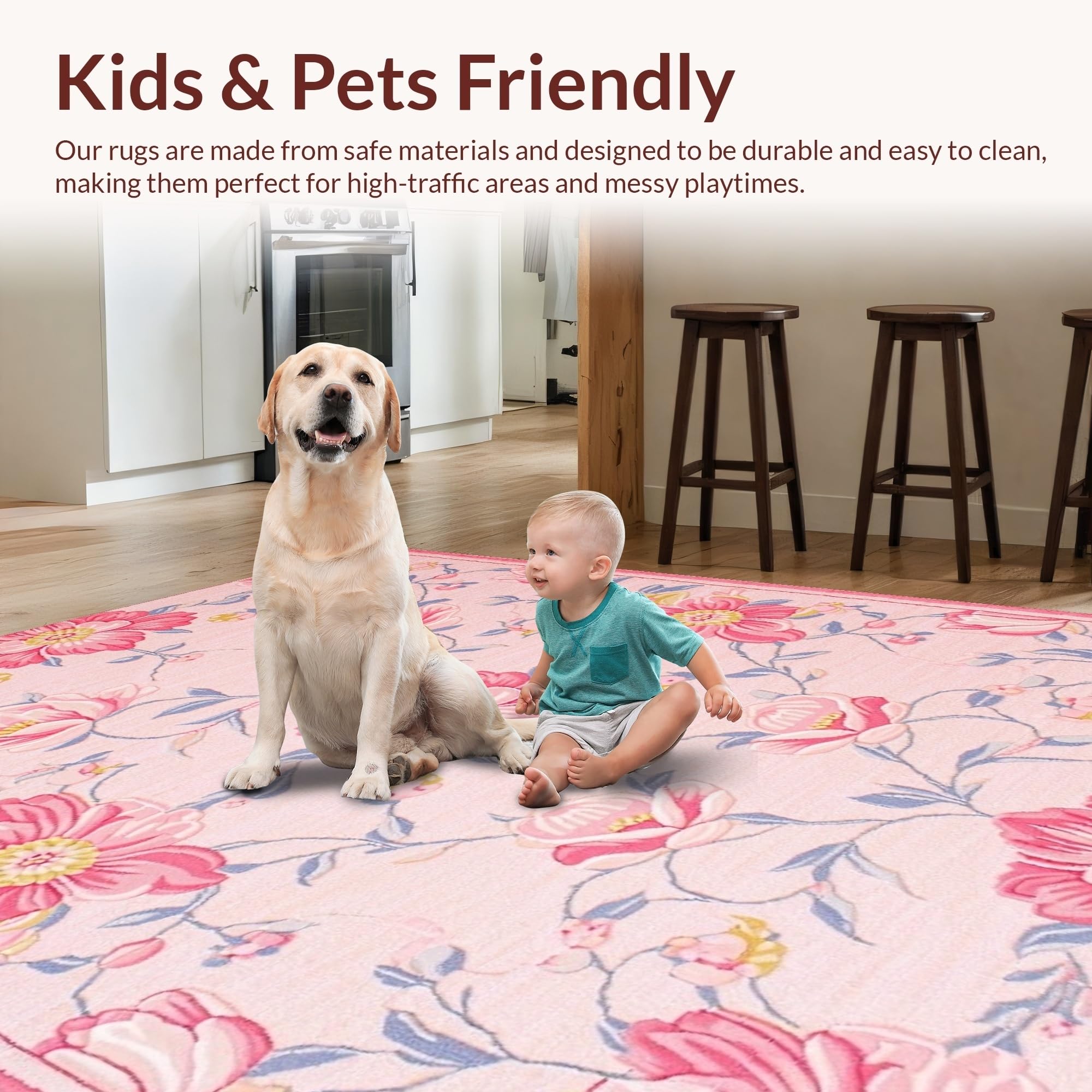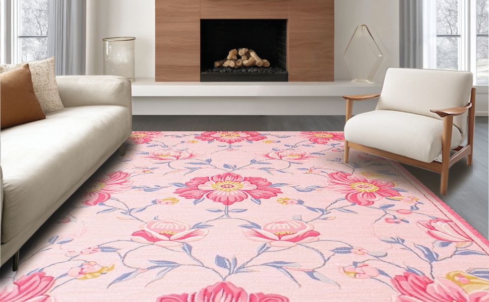 Ultra Soft Area Rug, Non Slip, Stain Resistant, Washable Area Rugs for Living Room, Bedroom, Fresh Vibrant Petal Arrangement(Pink) Overview: