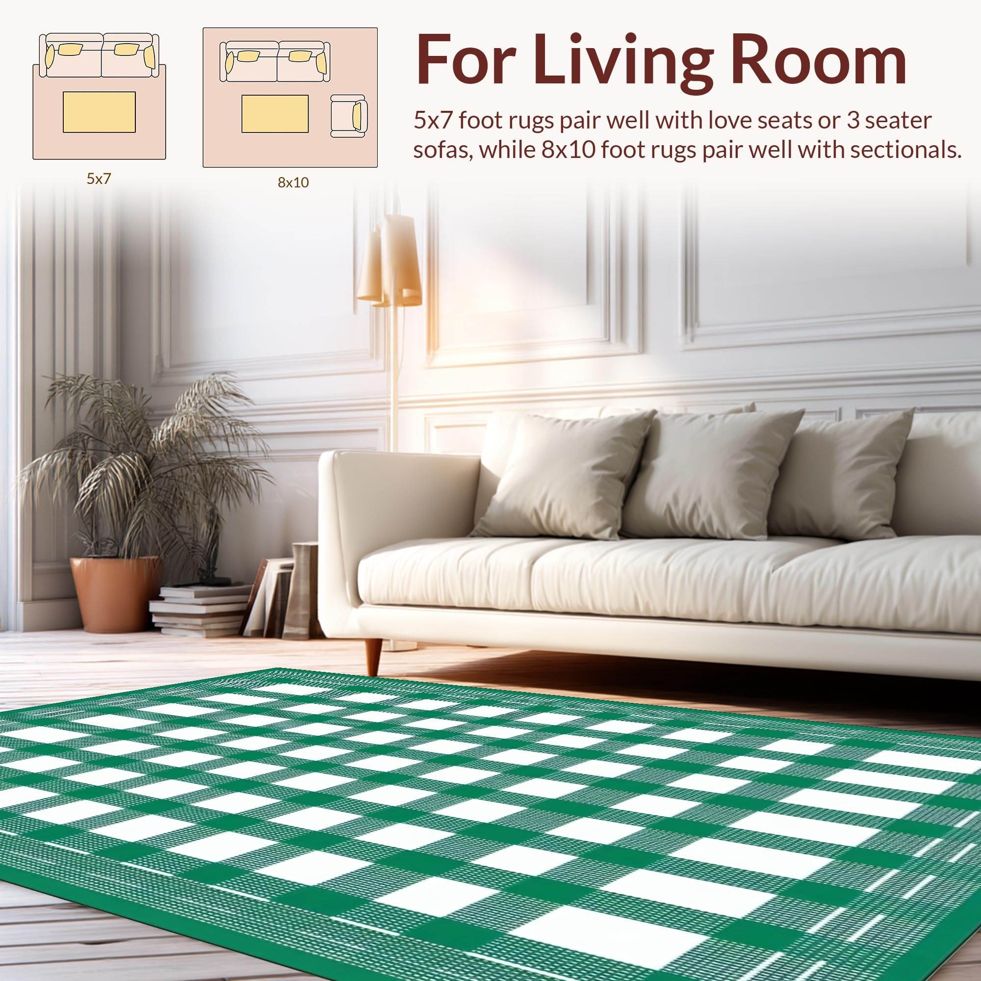 Ultra Soft Area Rug, Non Slip, Stain Resistant, Washable Area Rugs for Living Room, Bedroom, Fresh White Abstract Composition(Green) Overview: