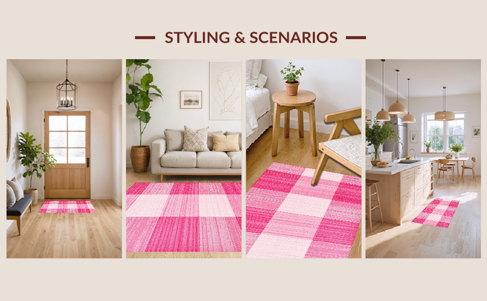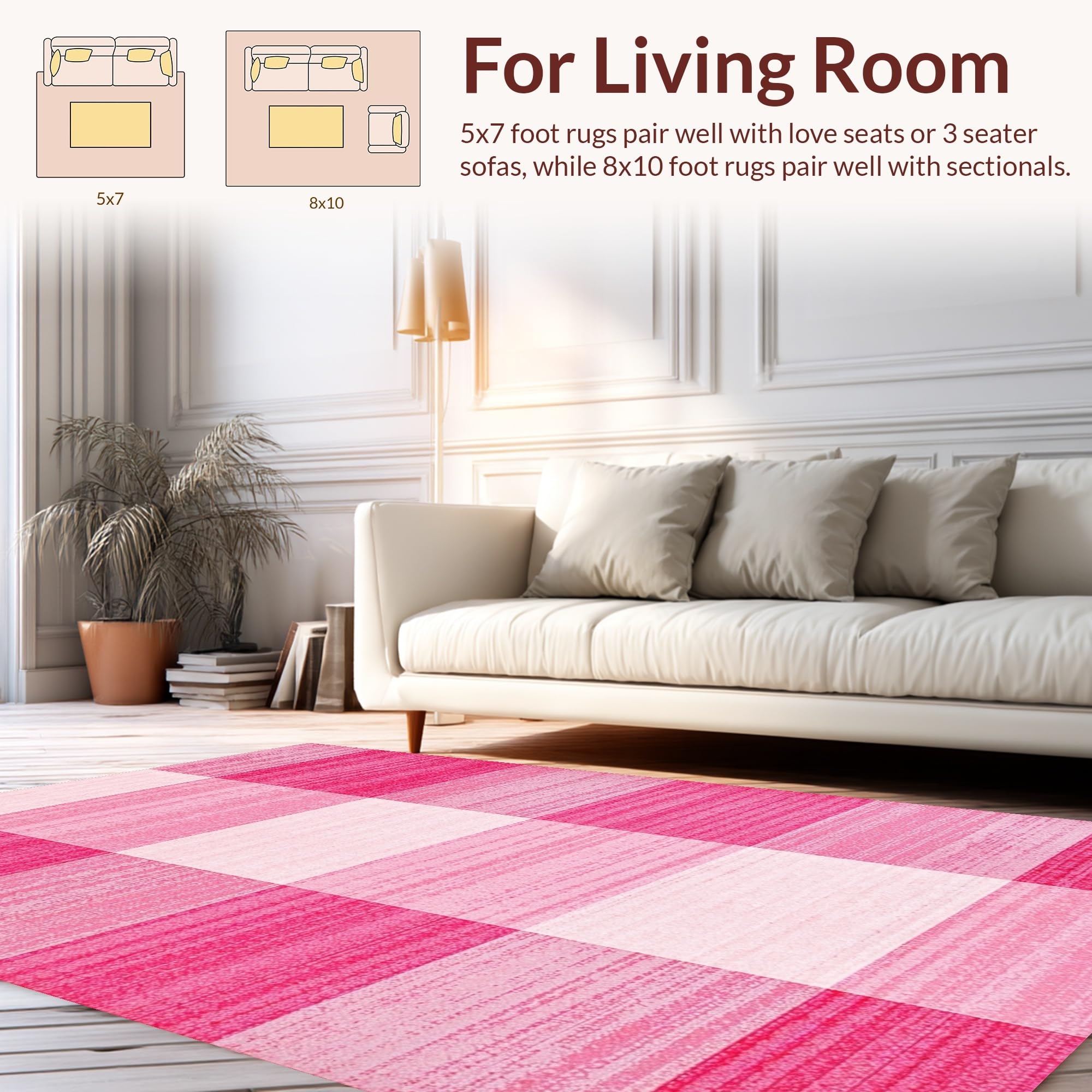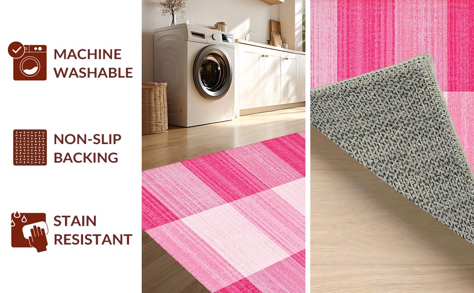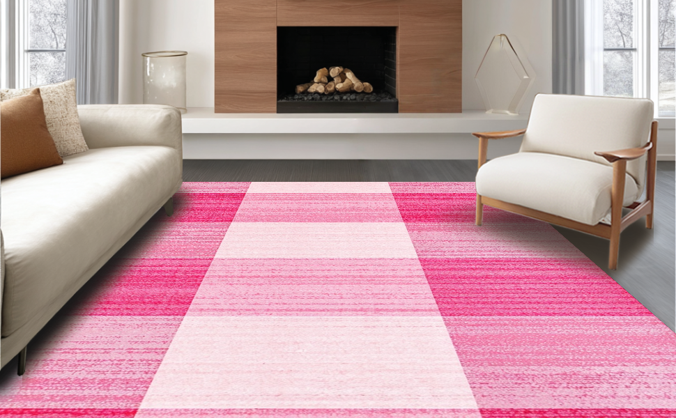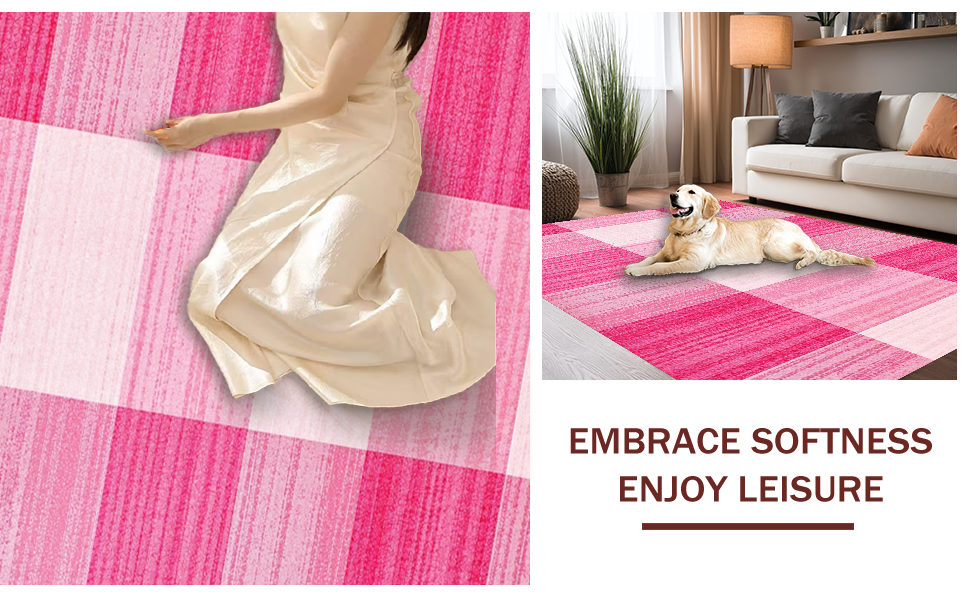 Ultra Soft Area Rug, Non Slip, Stain Resistant, Washable Area Rugs for Living Room, Bedroom, Fresh White and Pink Visual Harmony(Pink) Overview: