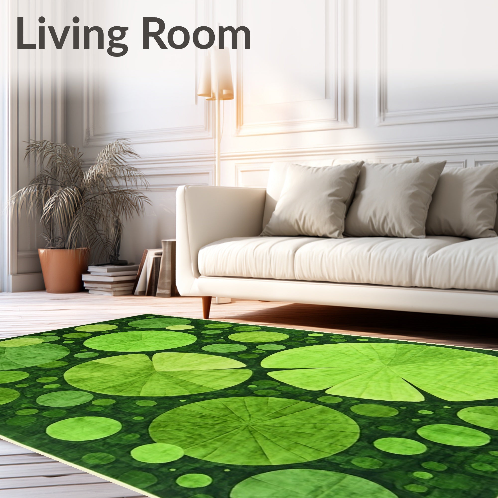 Ultra Soft Area Rug, Non Slip, Stain Resistant, Washable Area Rugs for Living Room, Bedroom, Frog Haven Playful Lily Pad Inspired Accent Green Rug(Green) Overview: