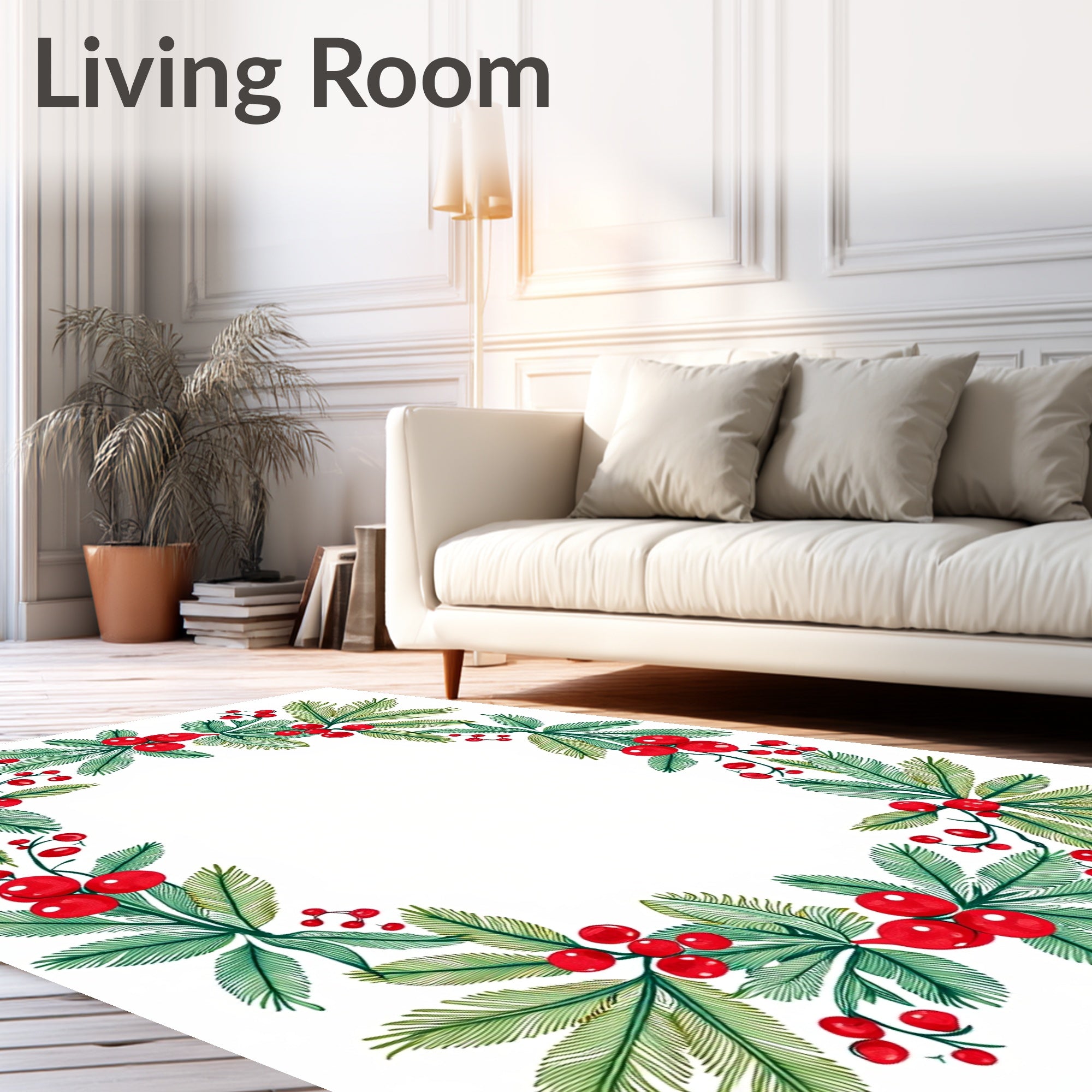 Ultra Soft Area Rug, Non Slip, Stain Resistant, Washable Area Rugs for Living Room, Bedroom, Frosted Evergreen Sprig Arrangement with Berry Detailing(Green) Overview: