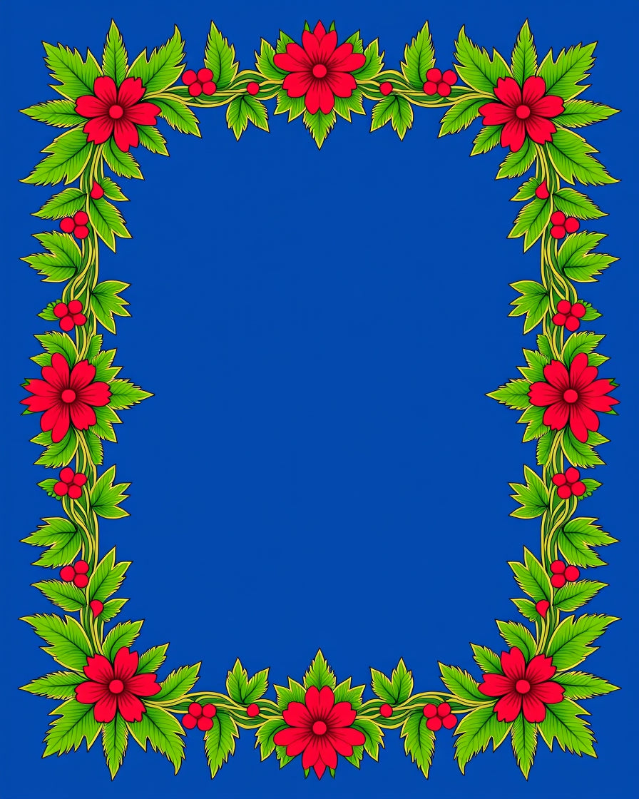 Frosted Holly with Interlocking Berry Sprigs and Classic Scrolls(Blue)