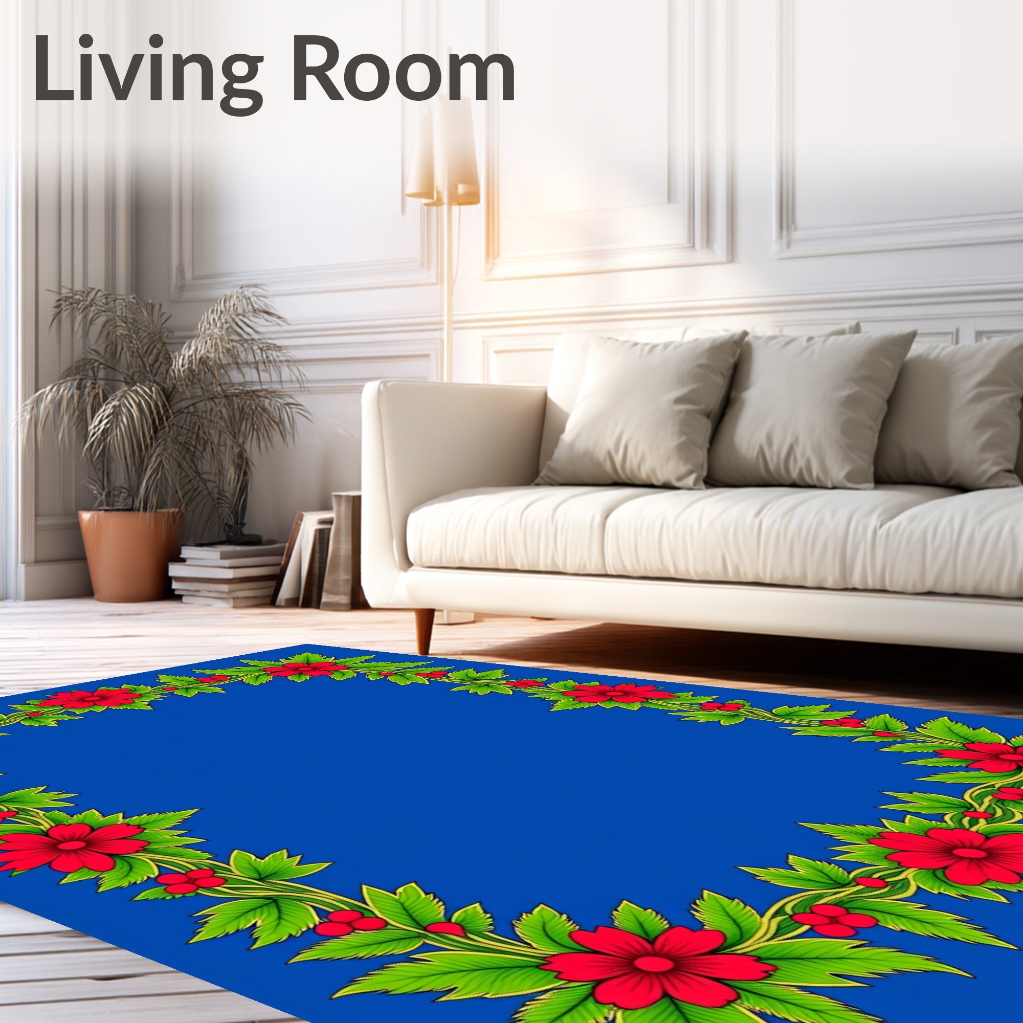 Ultra Soft Area Rug, Non Slip, Stain Resistant, Washable Area Rugs for Living Room, Bedroom, Frosted Holly with Interlocking Berry Sprigs and Classic Scrolls(Blue) Overview: