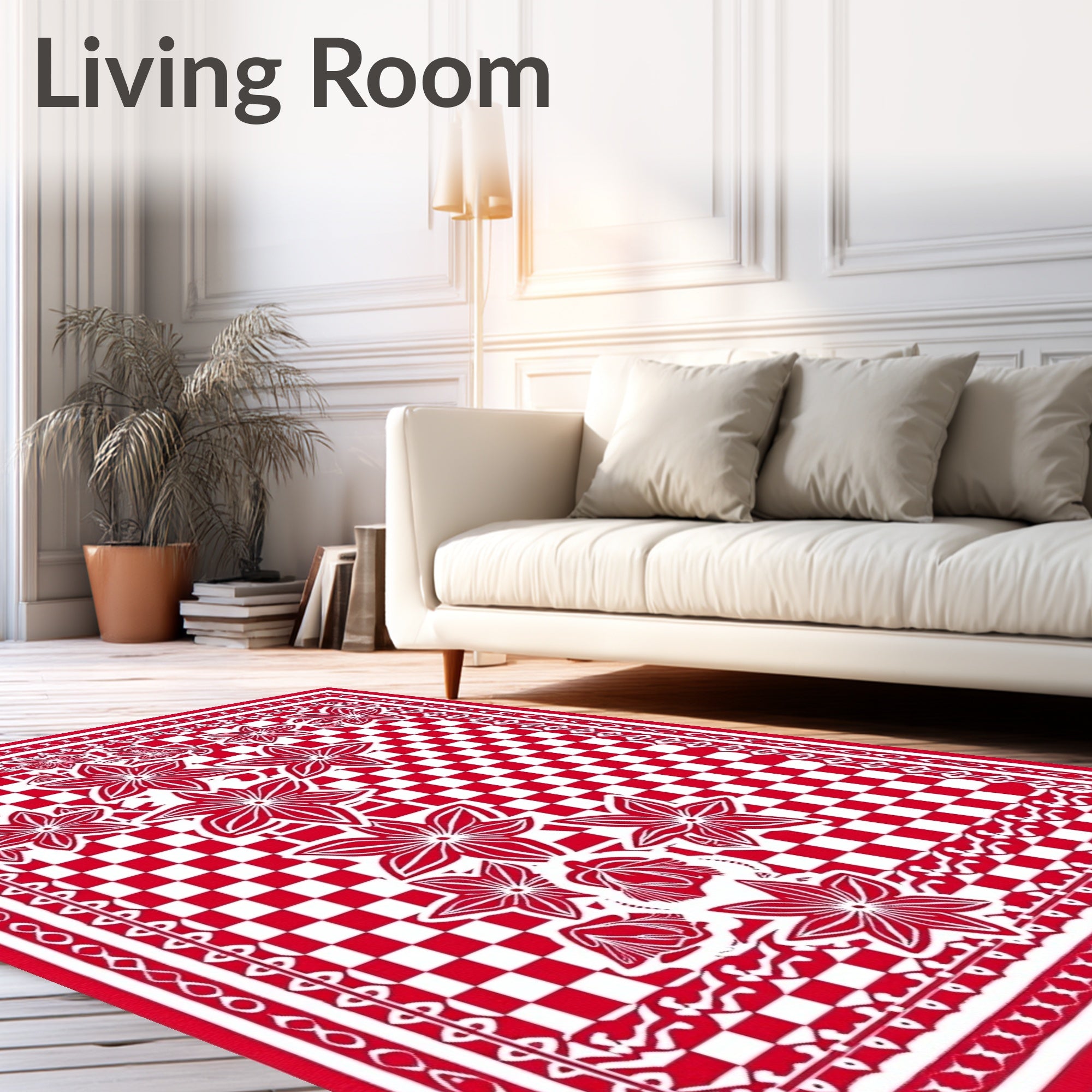 Ultra Soft Area Rug, Non Slip, Stain Resistant, Washable Area Rugs for Living Room, Bedroom, Frosted Interlocking Checkered Holiday Mosaic(Red) Overview: