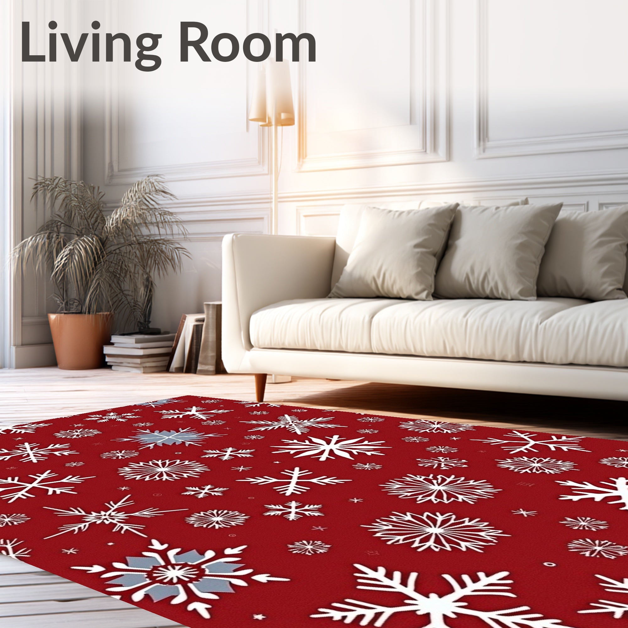Ultra Soft Area Rug, Non Slip, Stain Resistant, Washable Area Rugs for Living Room, Bedroom, Frosty Celebration Joyful Spirit Seasonal(Red) Overview: