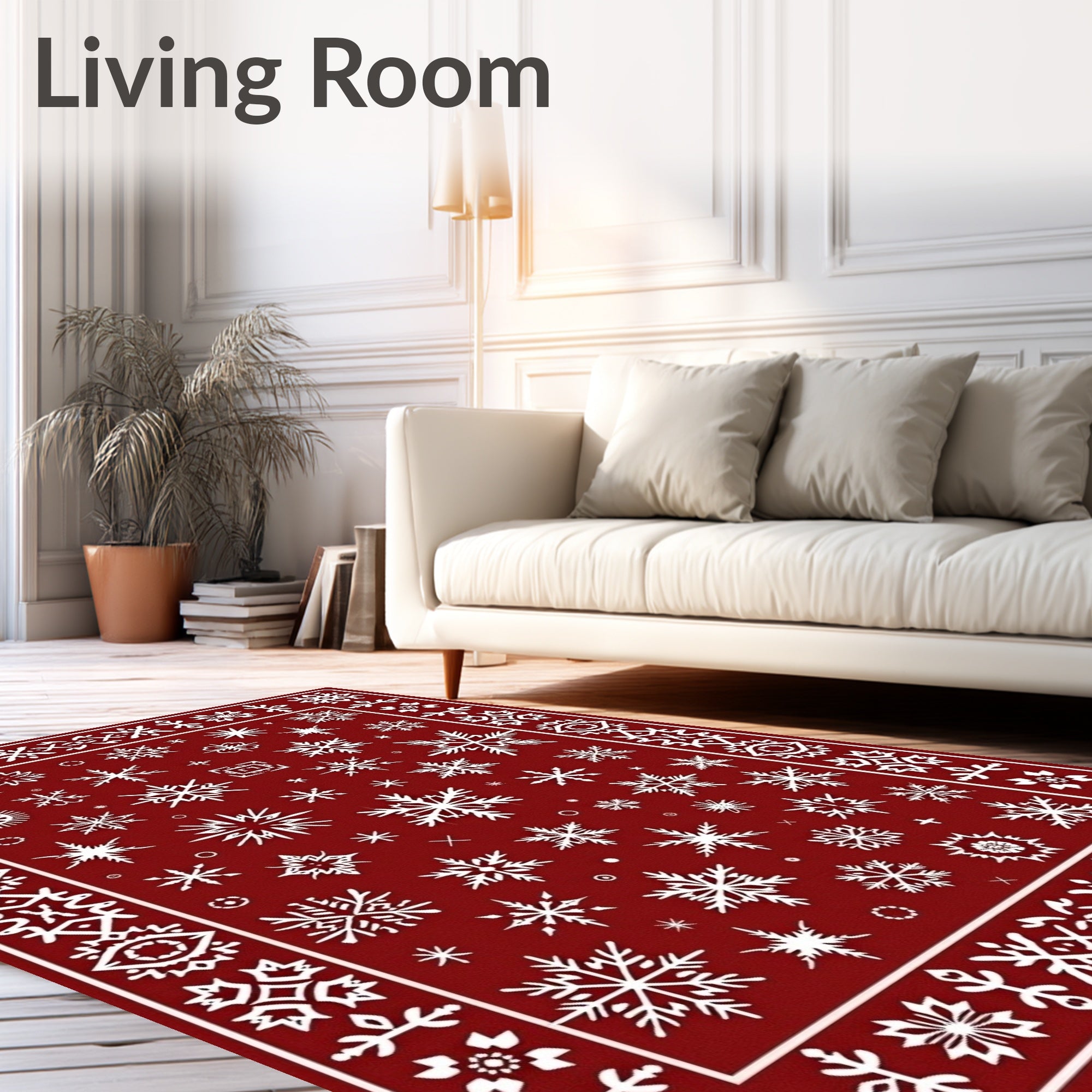 Ultra Soft Area Rug, Non Slip, Stain Resistant, Washable Area Rugs for Living Room, Bedroom, Frosty Celebration Seasonal Narrow Walkway Embellishment(Red) Overview: