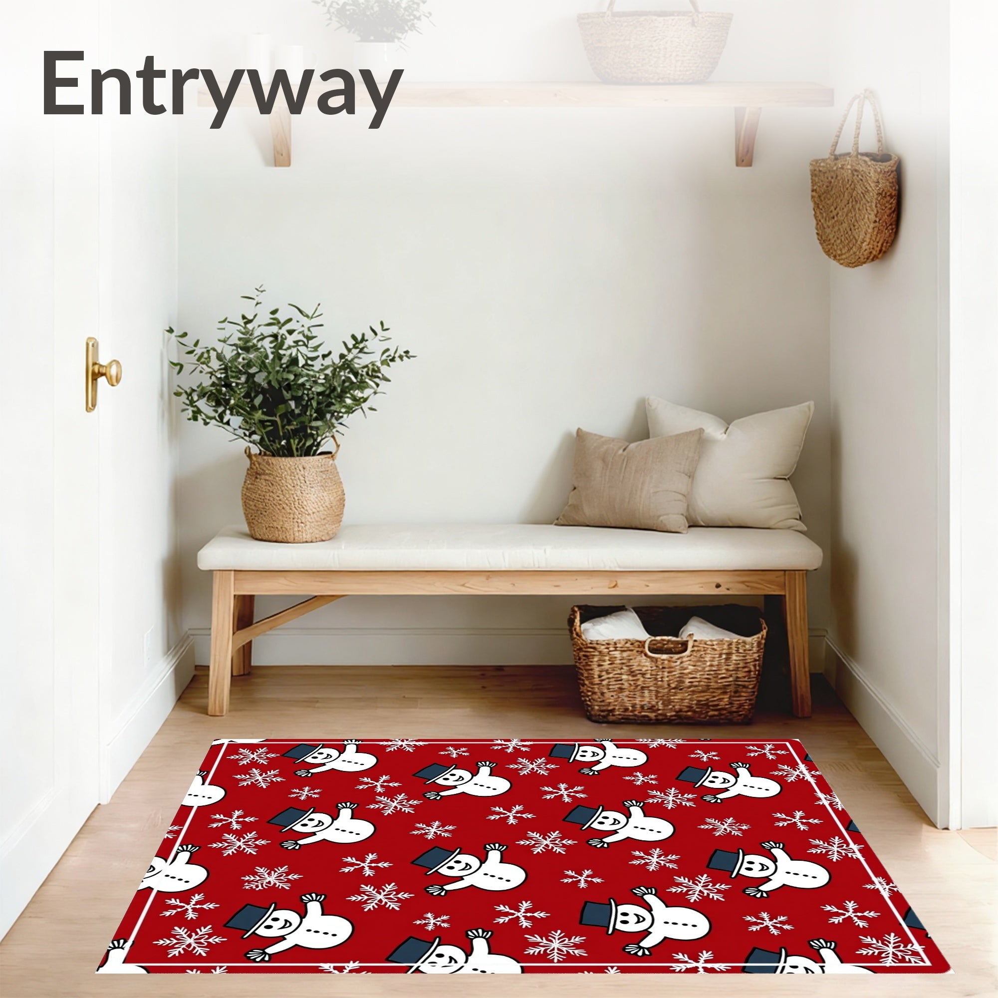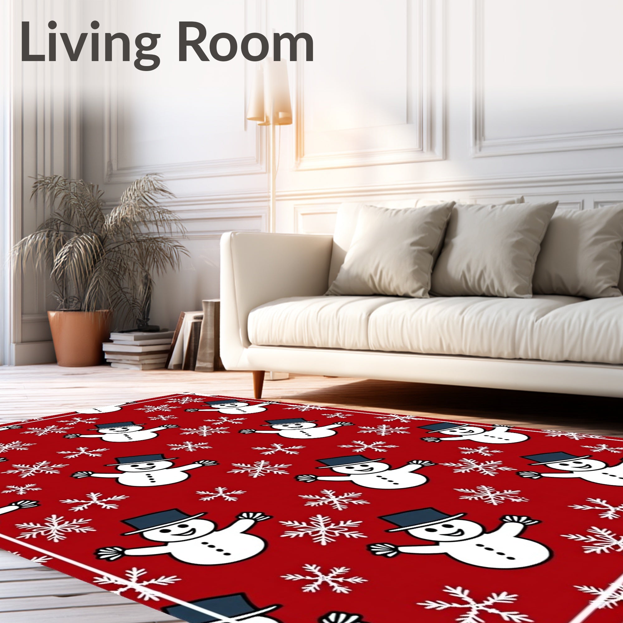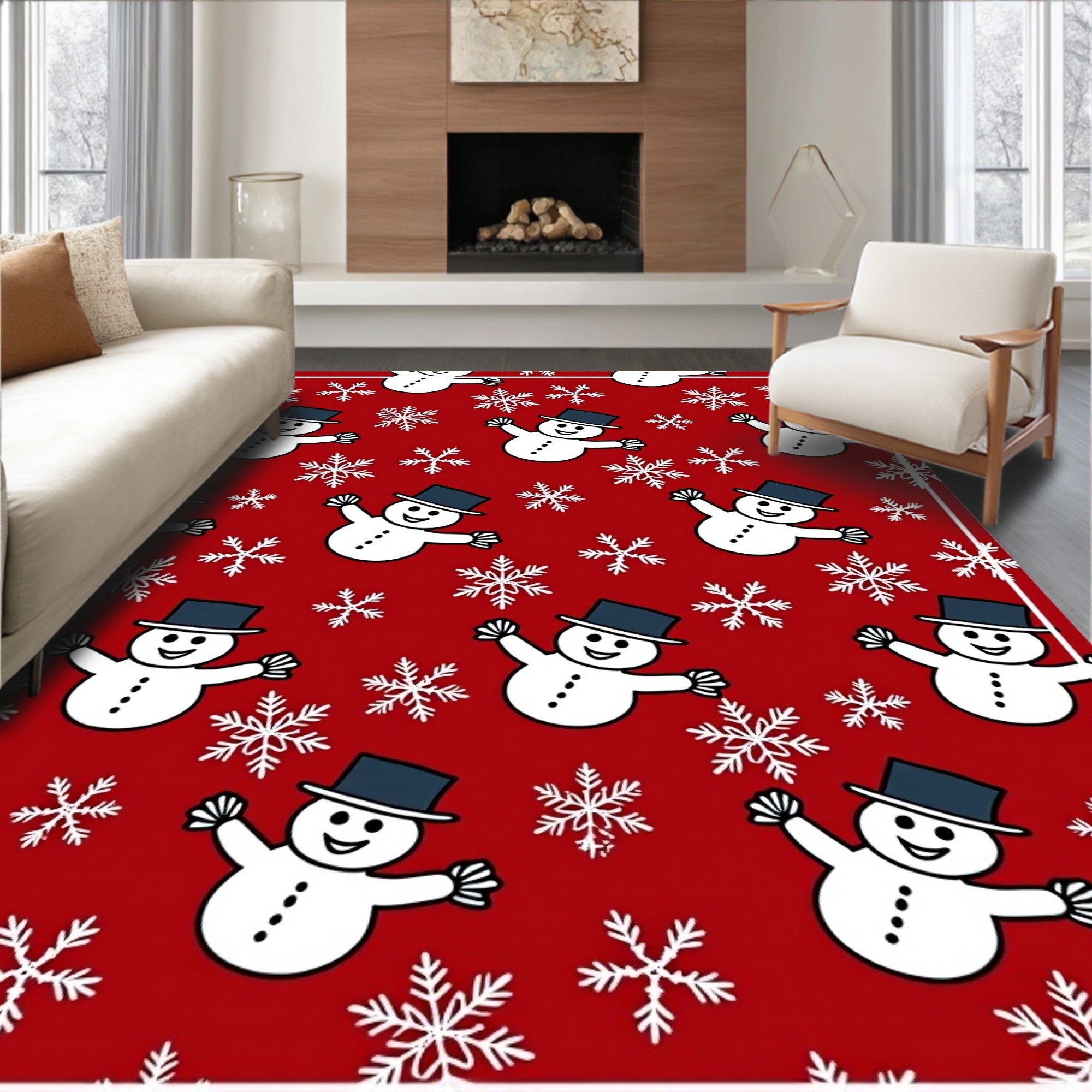 Ultra Soft Area Rug, Non Slip, Stain Resistant, Washable Area Rugs for Living Room, Bedroom, Frosty Snowman Holiday with Sparkling Winter Wonderland Design(Red) Overview: