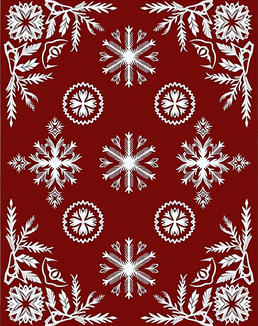 Frosty Winter Wonderland Floor with Cascading Ice Crystal Motifs(Red)