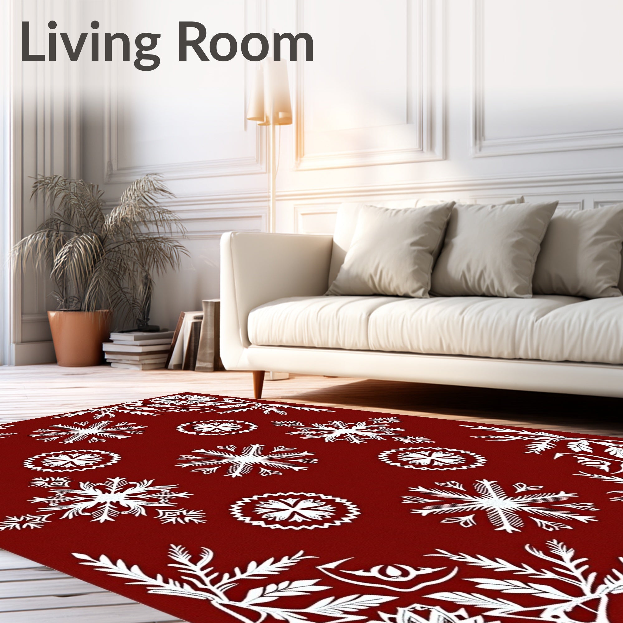 Ultra Soft Area Rug, Non Slip, Stain Resistant, Washable Area Rugs for Living Room, Bedroom, Frosty Winter Wonderland Floor with Cascading Ice Crystal Motifs(Red) Overview: