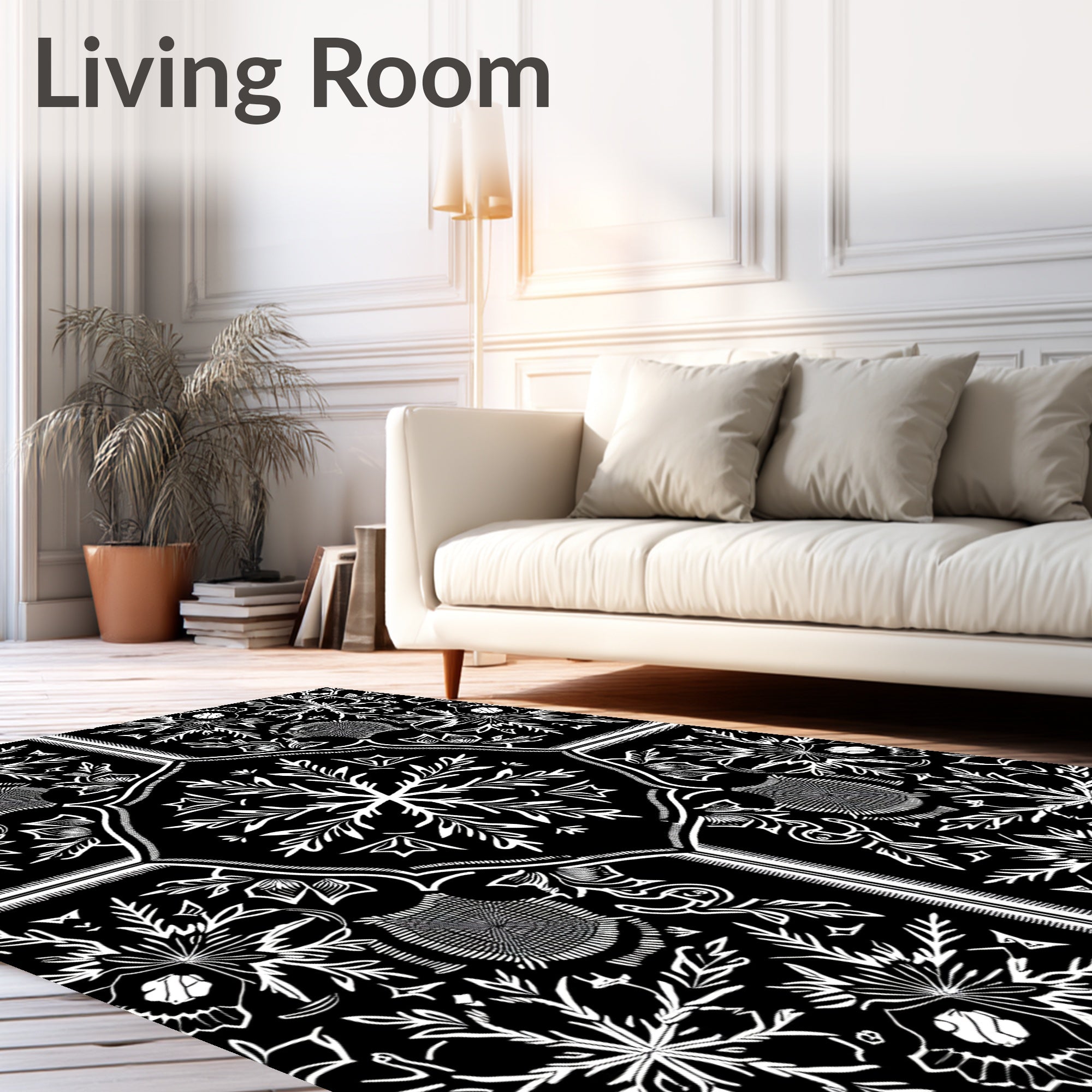 Ultra Soft Area Rug, Non Slip, Stain Resistant, Washable Area Rugs for Living Room, Bedroom, Frosty Wonderland Decorative Snowflake Winter Holiday(Black) Overview:
