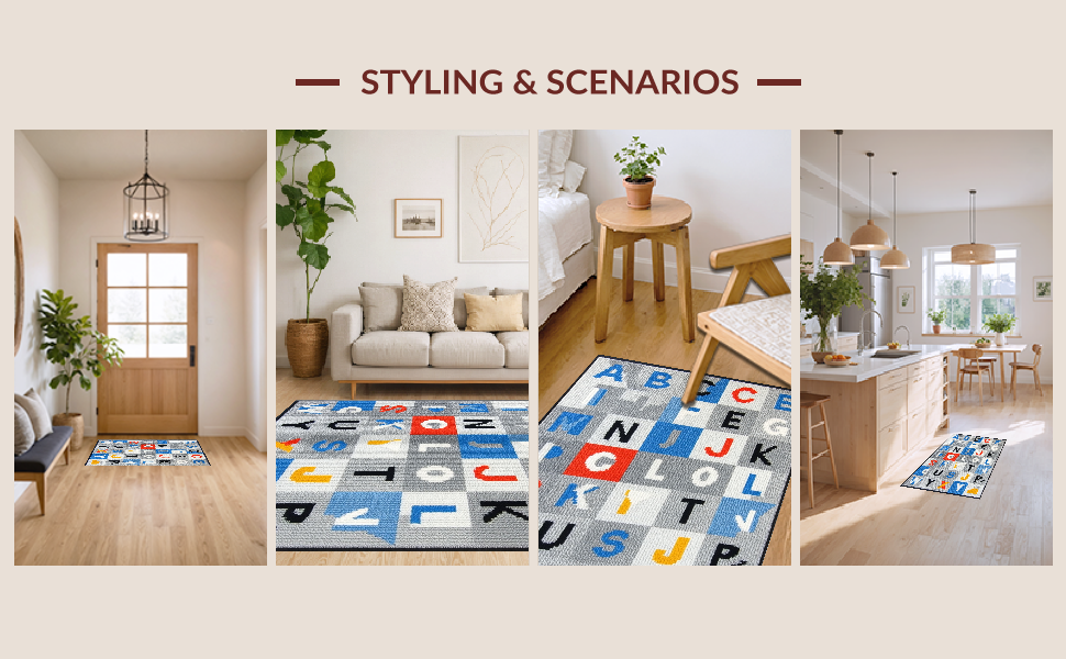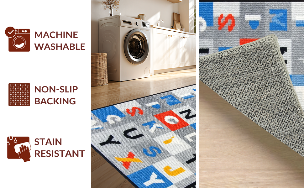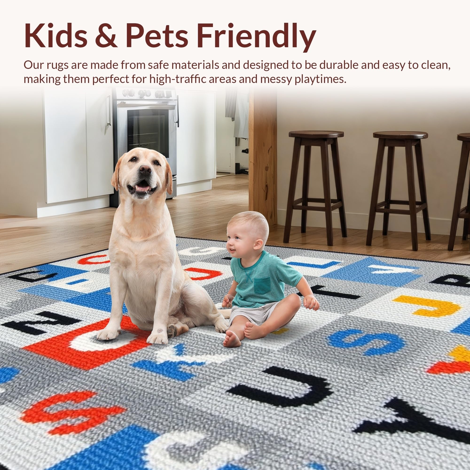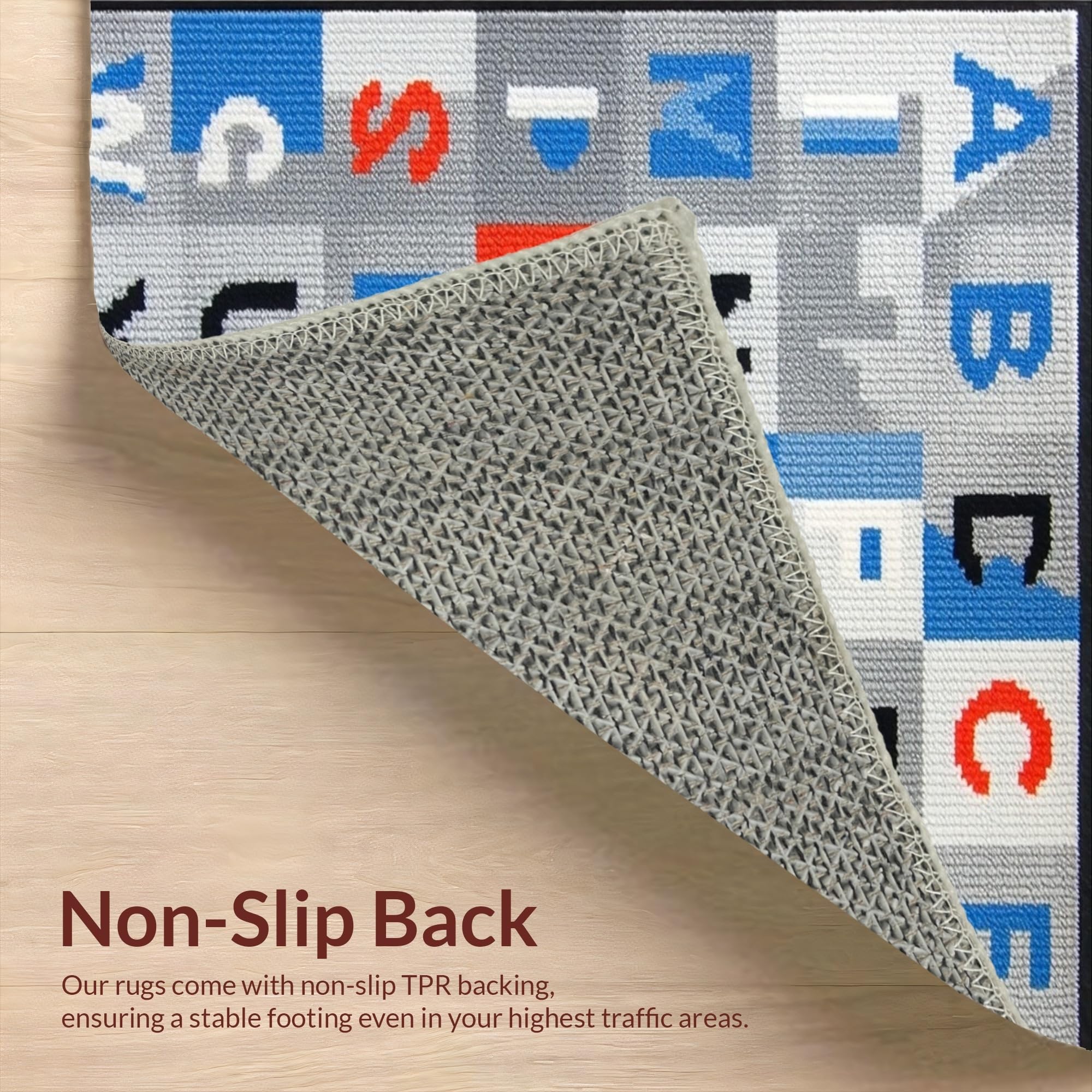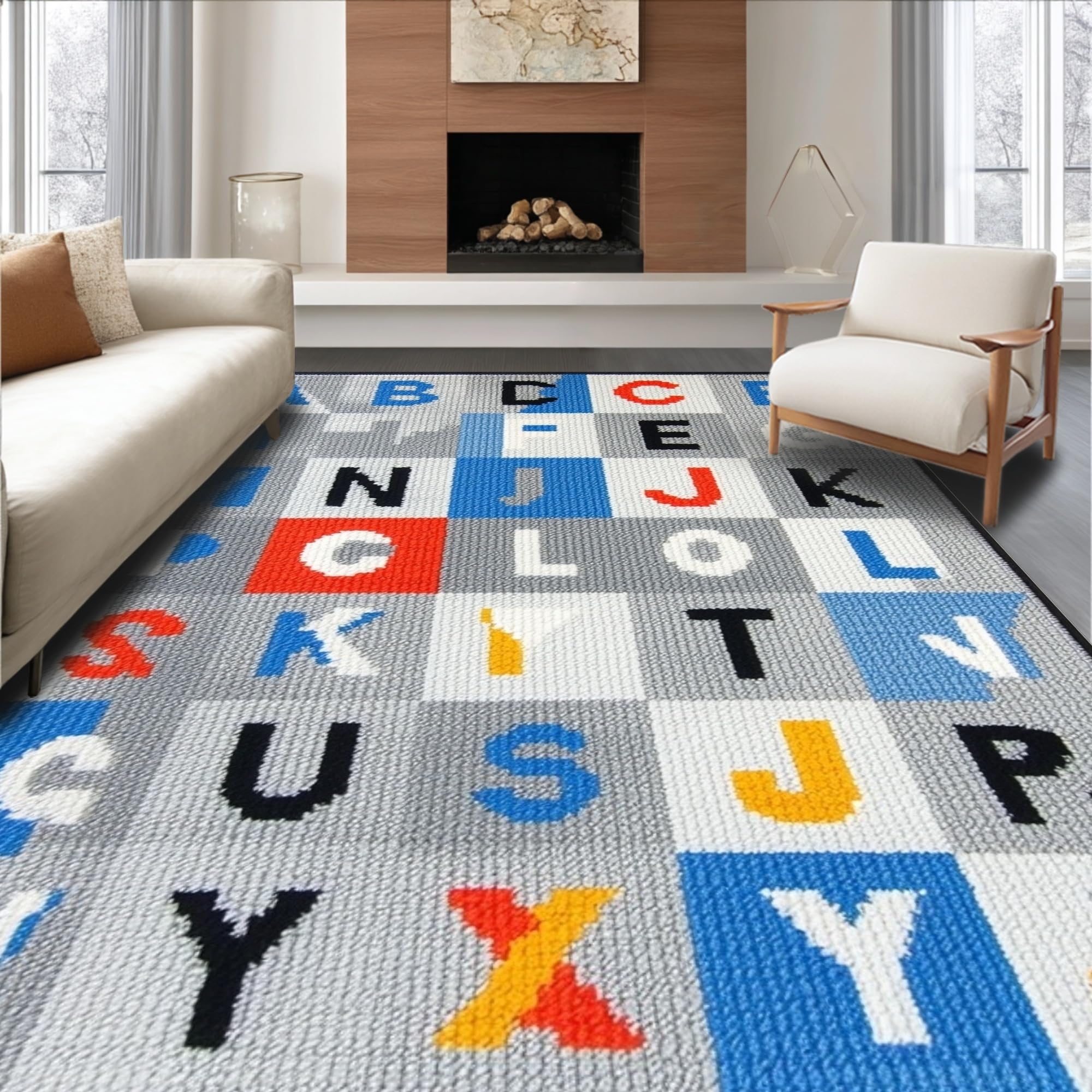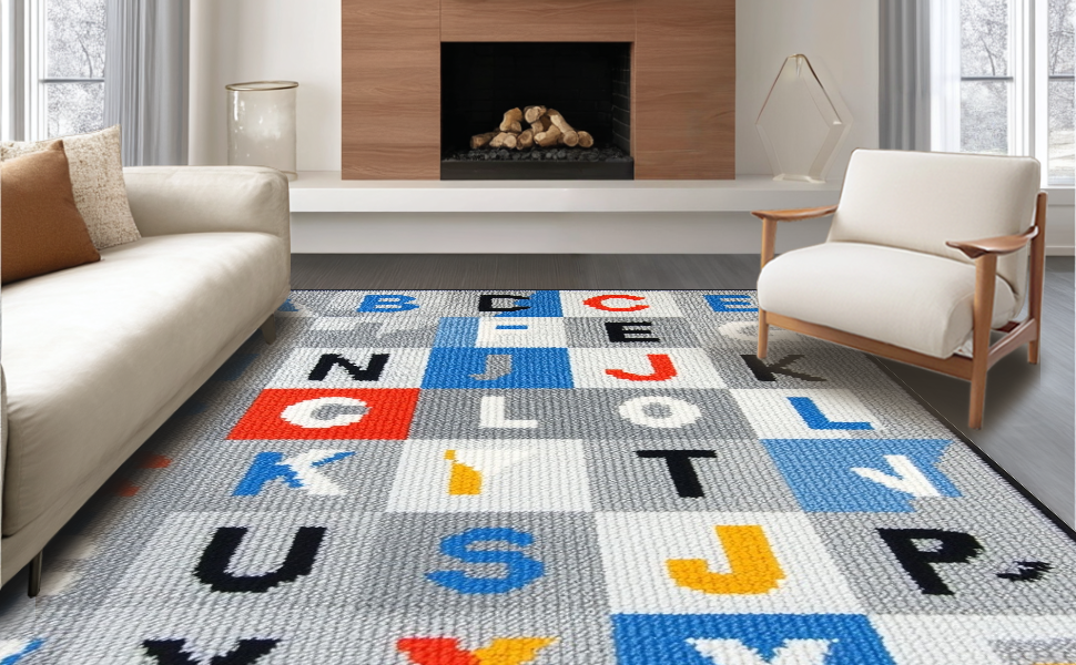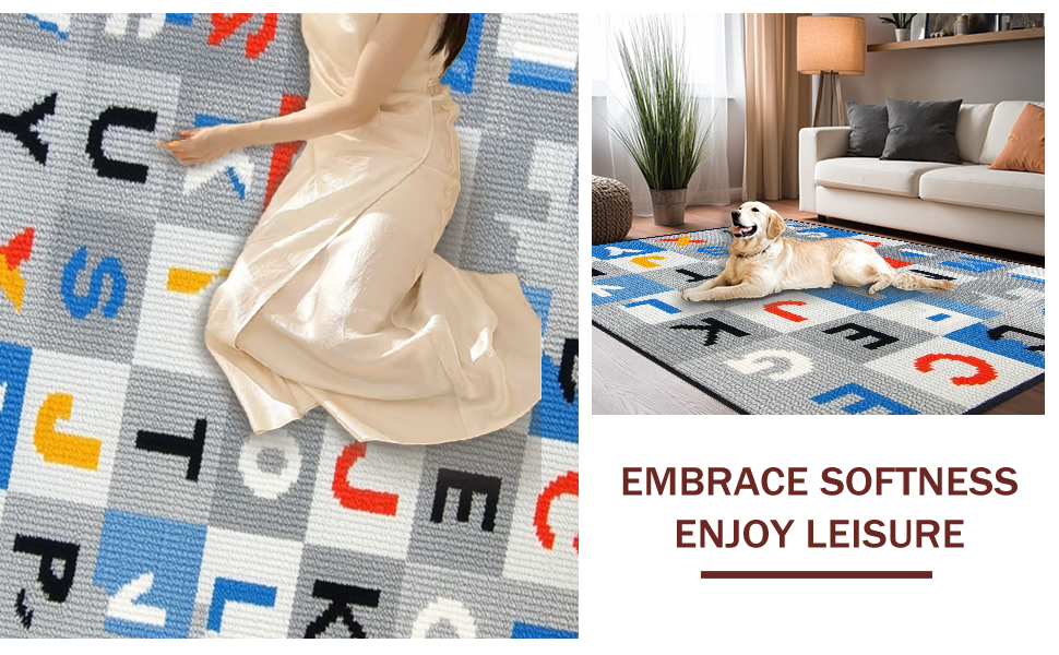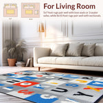 Ultra Soft Area Rug, Non Slip, Stain Resistant, Washable Area Rugs for Living Room, Bedroom, Fun Abstract Alphabetic Art Design(Gray) Overview: