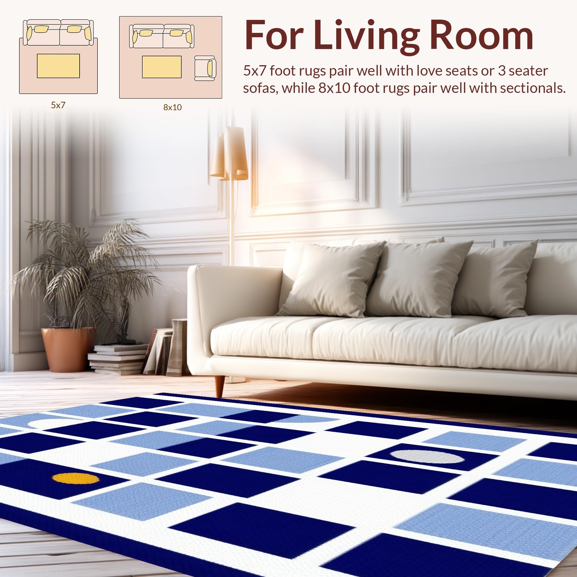Ultra Soft Area Rug, Non Slip, Stain Resistant, Washable Area Rugs for Living Room, Bedroom, Fun and Engaging Educational Layout(Blue) Overview: