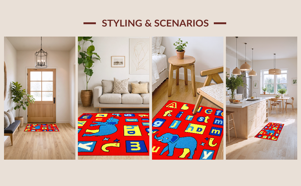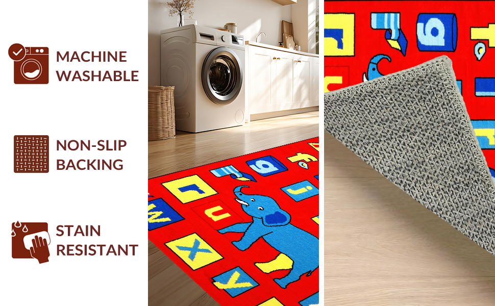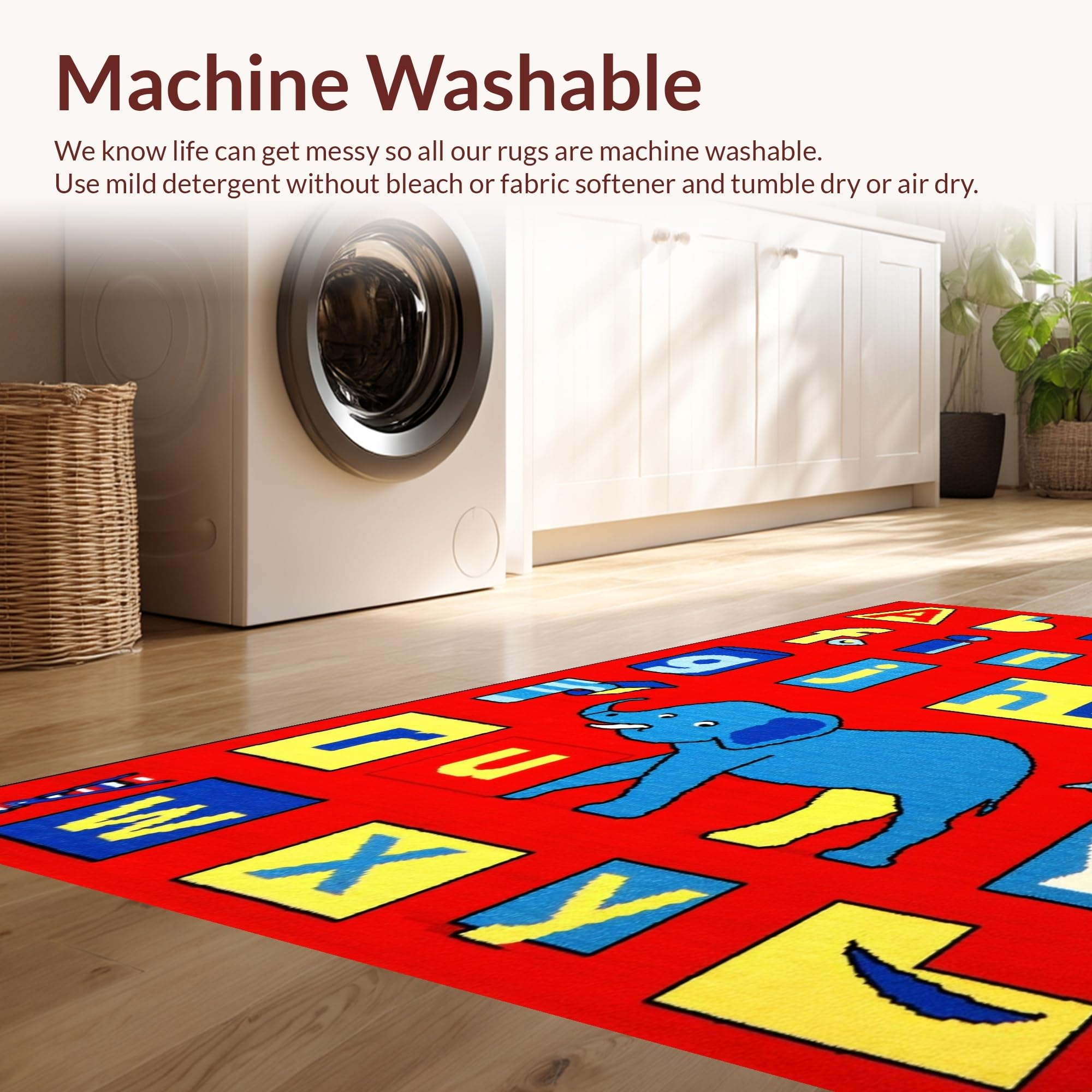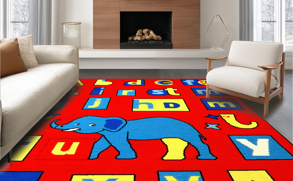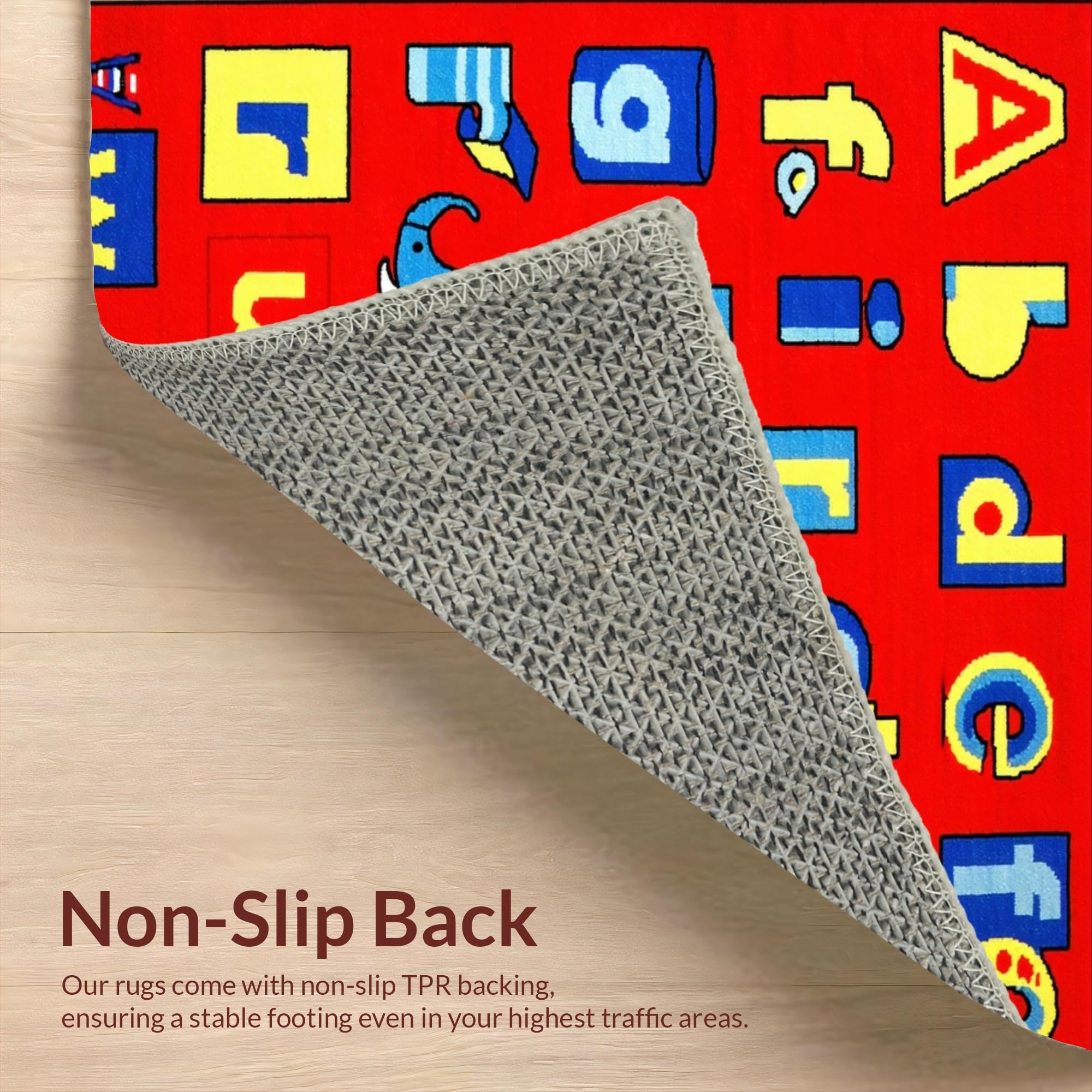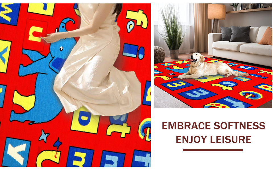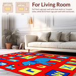 Ultra Soft Area Rug, Non Slip, Stain Resistant, Washable Area Rugs for Living Room, Bedroom, Fun and Engaging Educational Theme(Red) Overview: