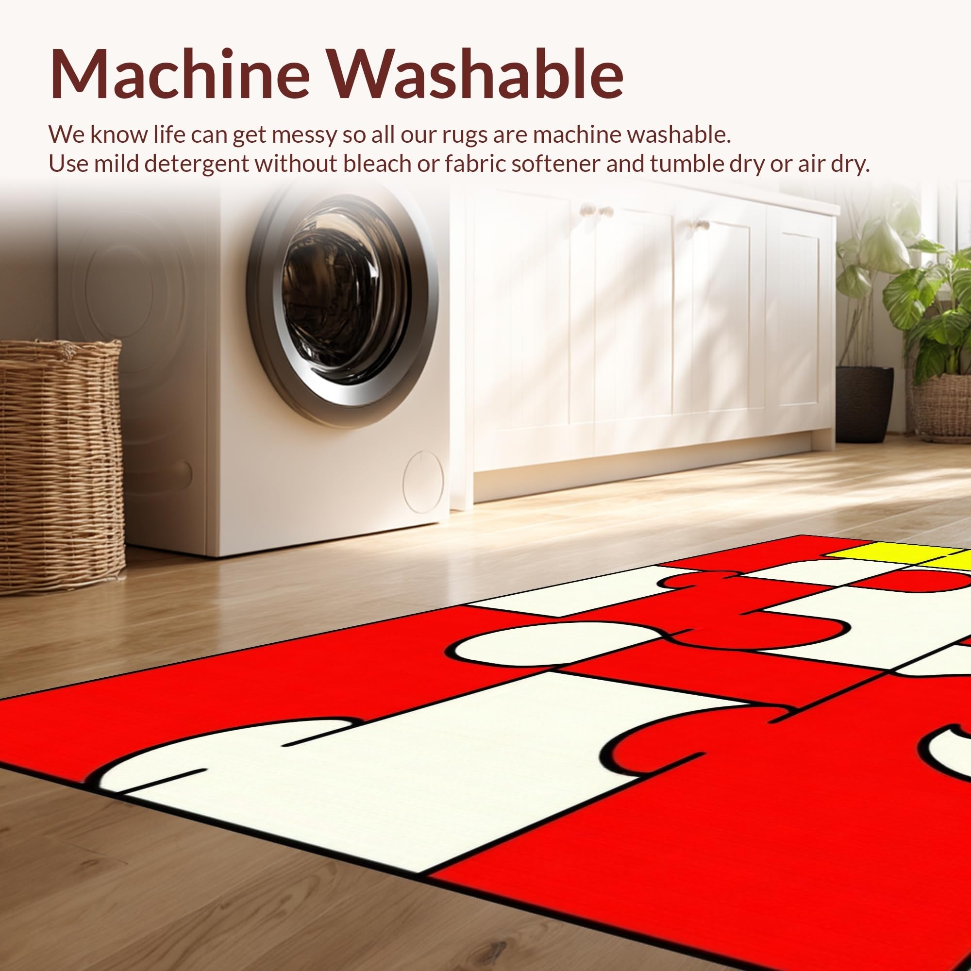 - Machine Washable: Our rugs can be easily thrown in the wash machine.
