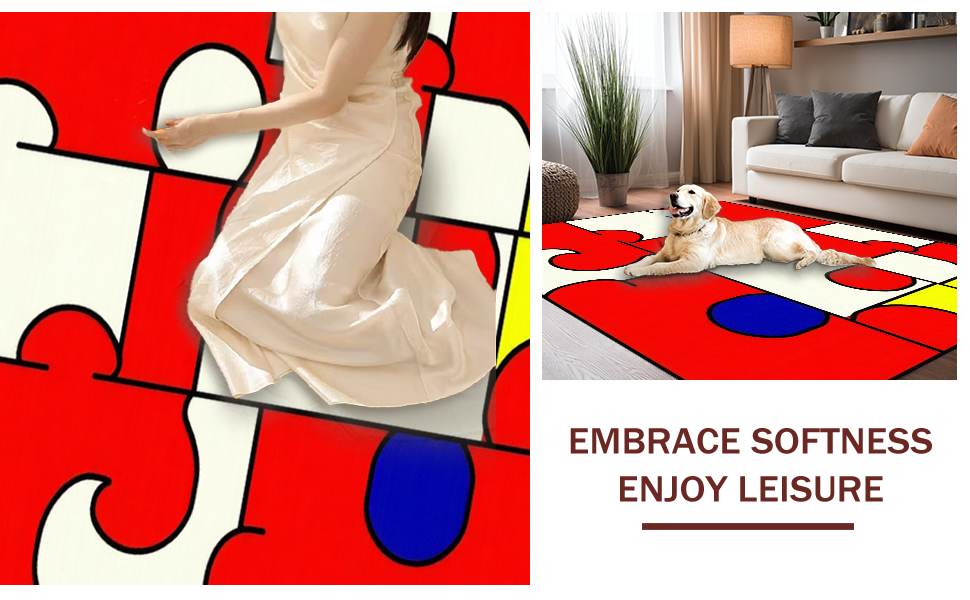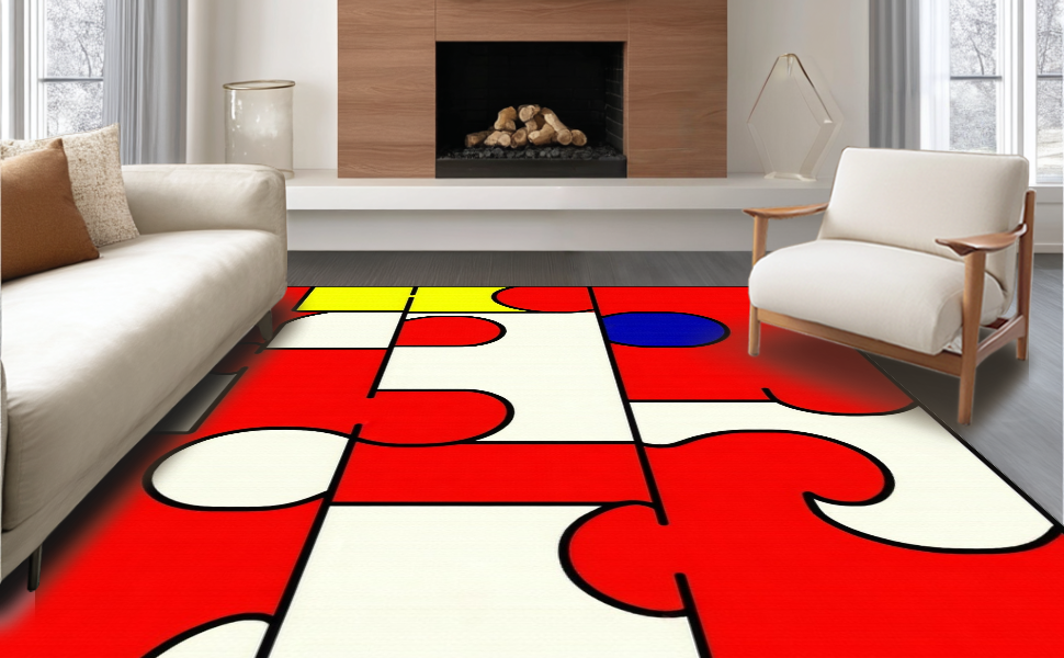 Ultra Soft Area Rug, Non Slip, Stain Resistant, Washable Area Rugs for Living Room, Bedroom, Fun Bold Lettering and Numbering(Red) Overview:
