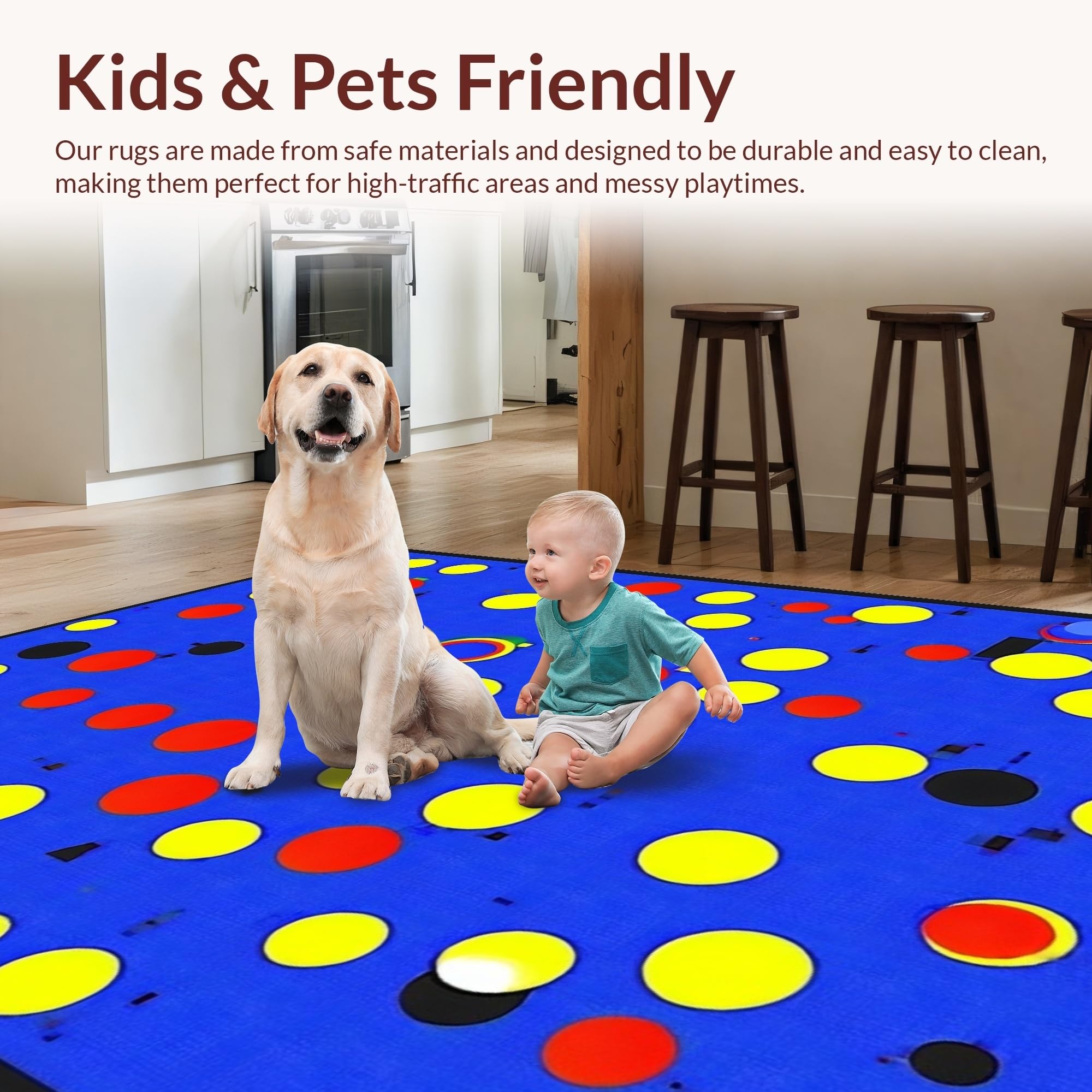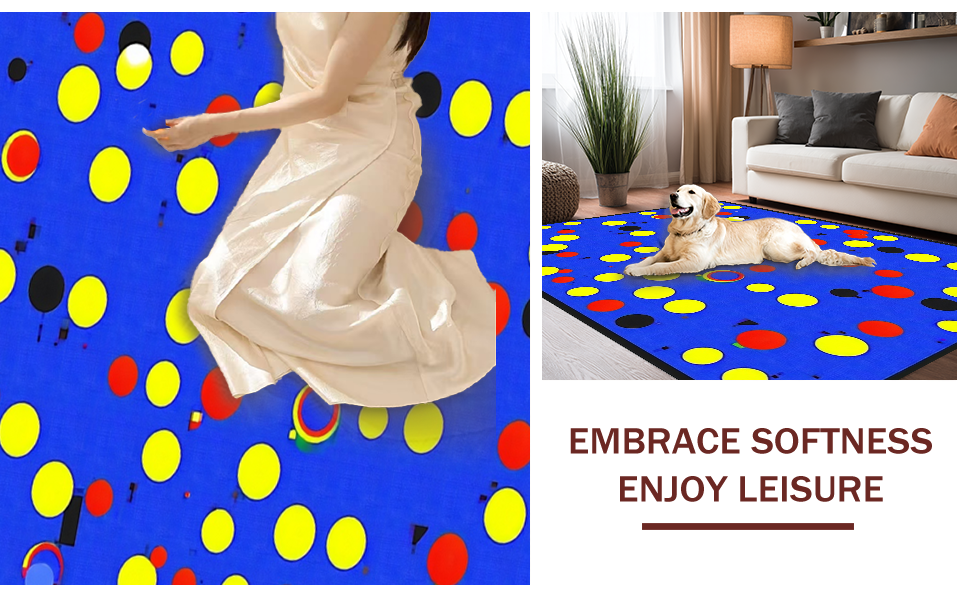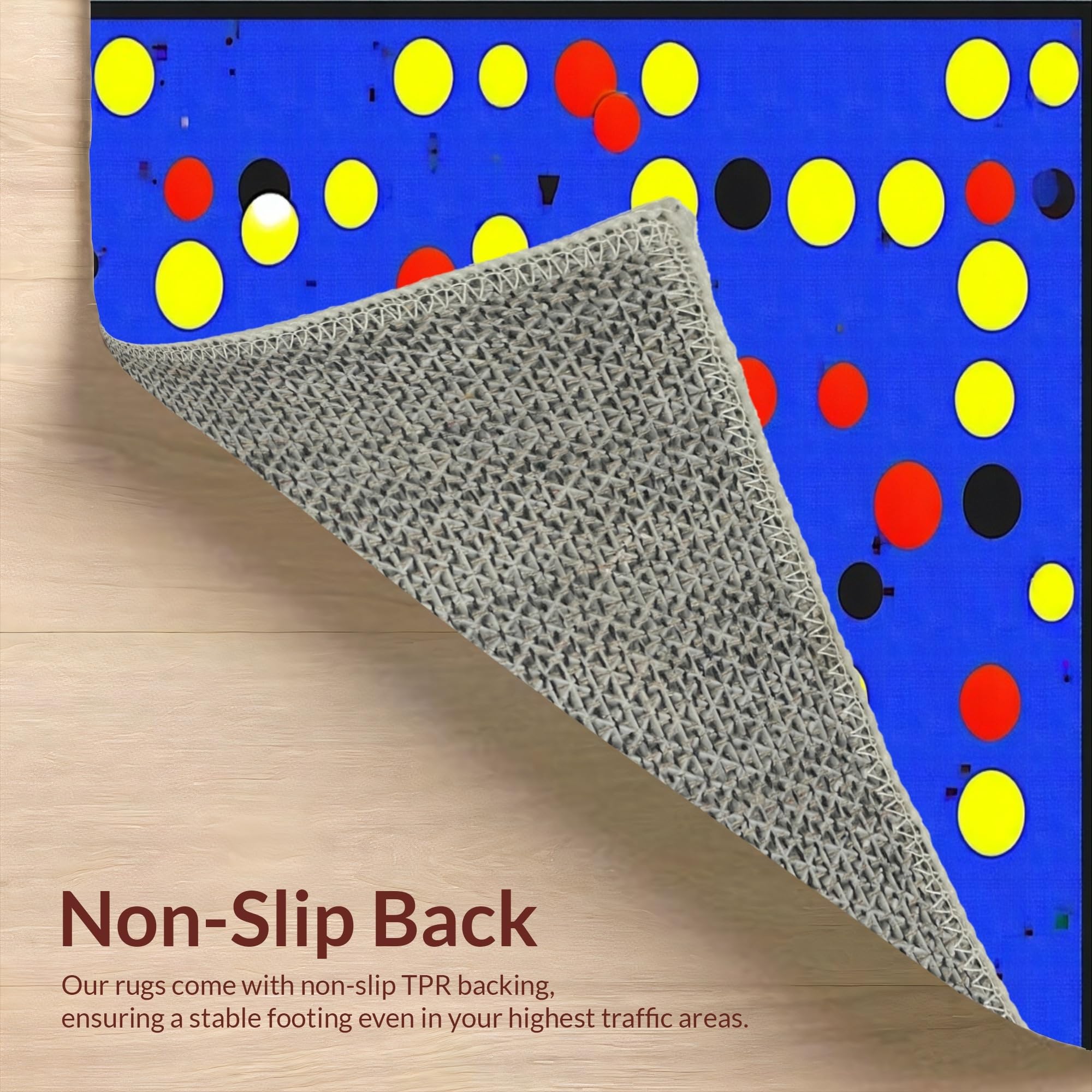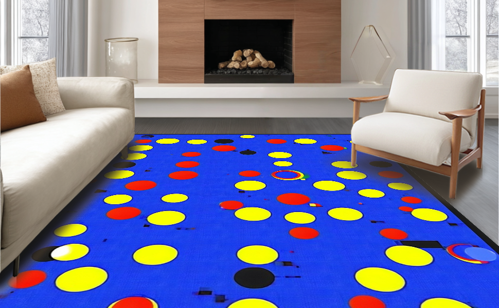 Ultra Soft Area Rug, Non Slip, Stain Resistant, Washable Area Rugs for Living Room, Bedroom, Fun Color-Infused Round Layout(Blue) Overview: