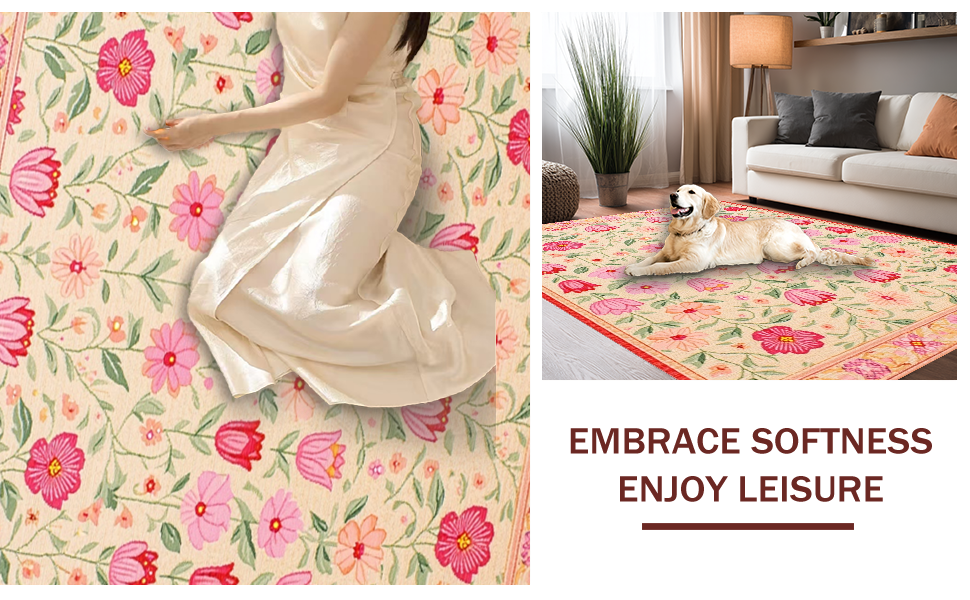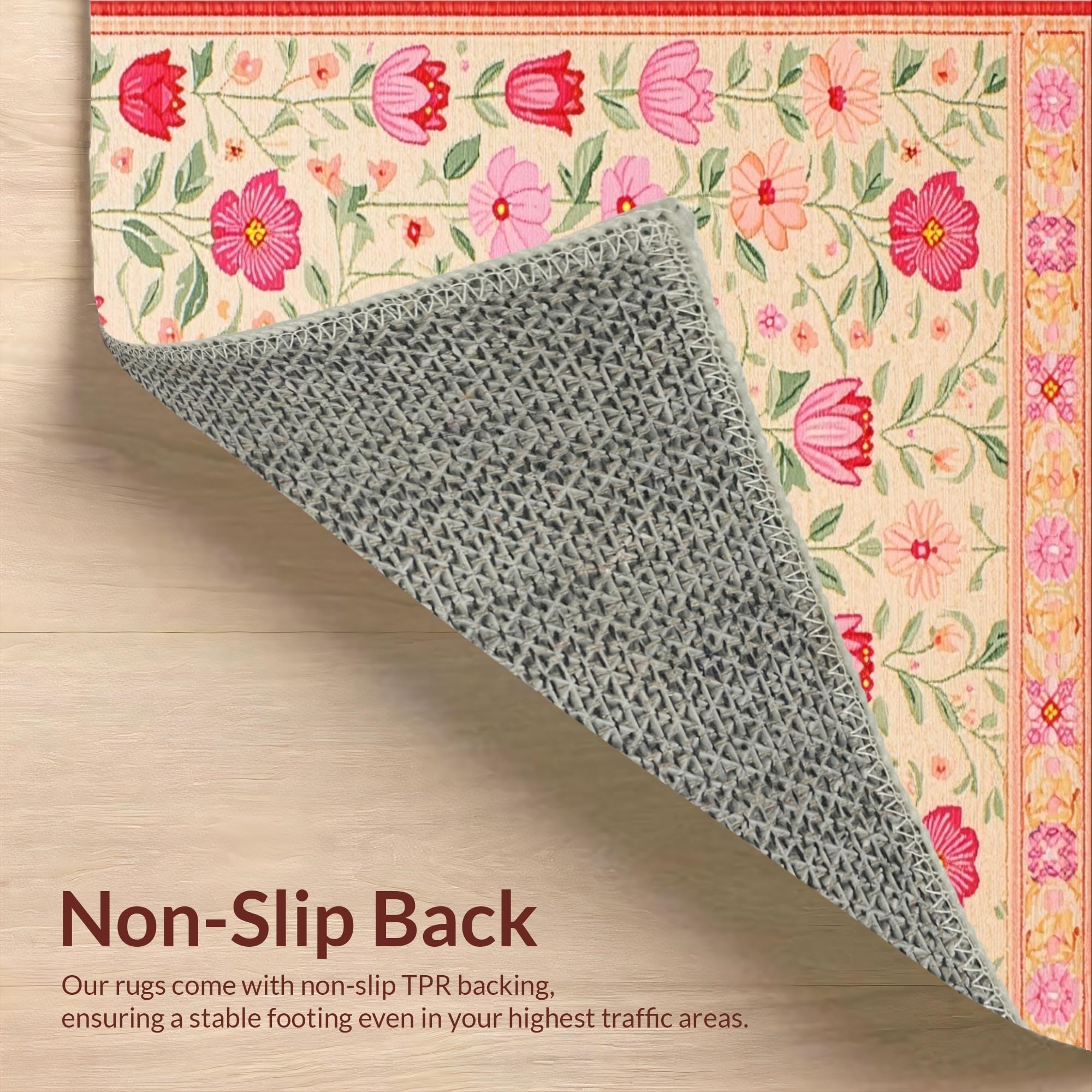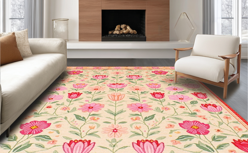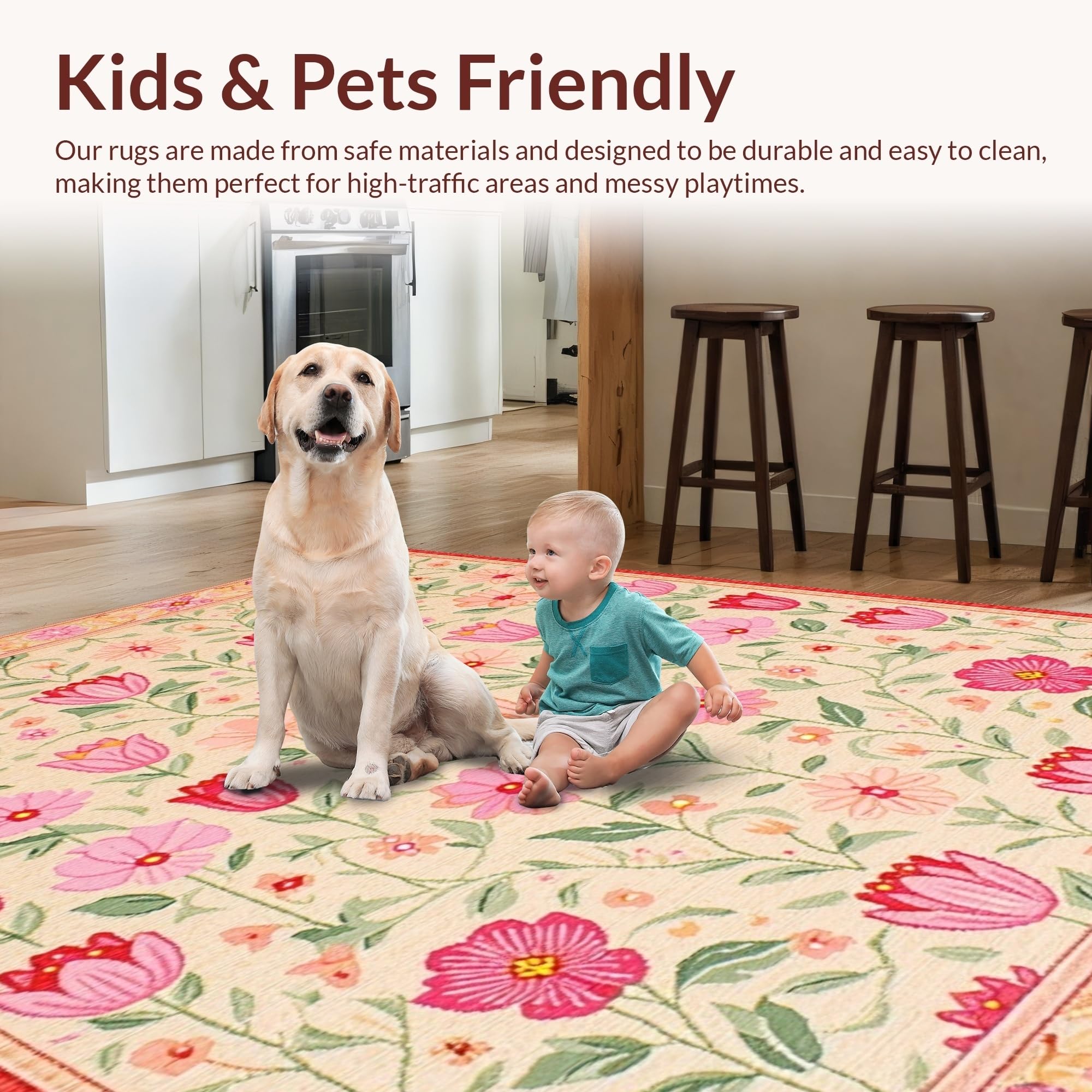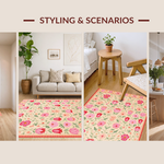 Ultra Soft Area Rug, Non Slip, Stain Resistant, Washable Area Rugs for Living Room, Bedroom, Fun Eclectic Floral Composition(Beige) Overview: