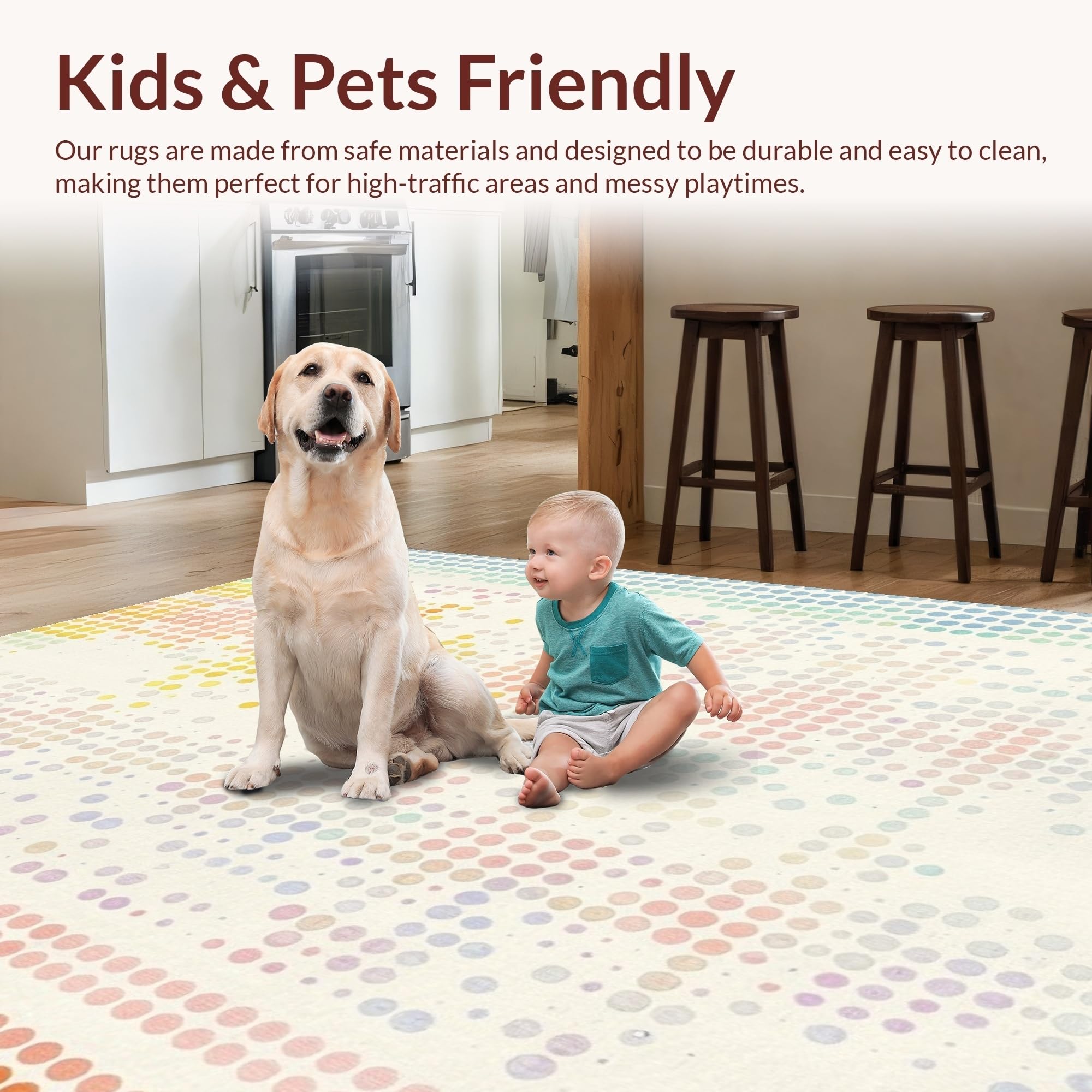 Ultra Soft Area Rug, Non Slip, Stain Resistant, Washable Area Rugs for Living Room, Bedroom, Fun Energetic Polka Dot Statement(White) Overview:
