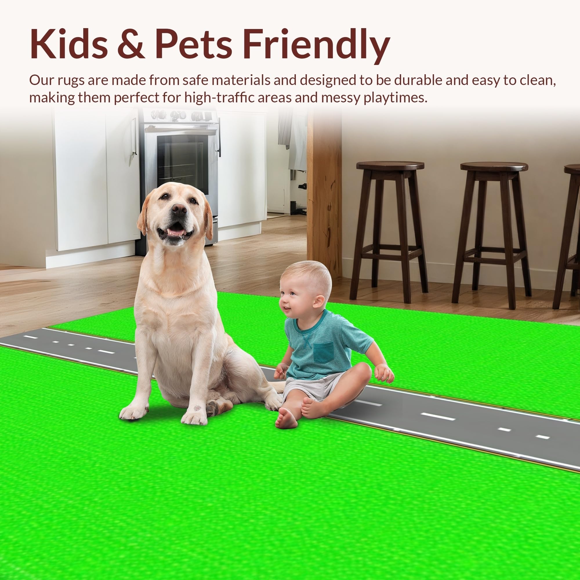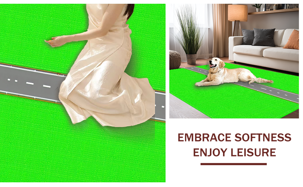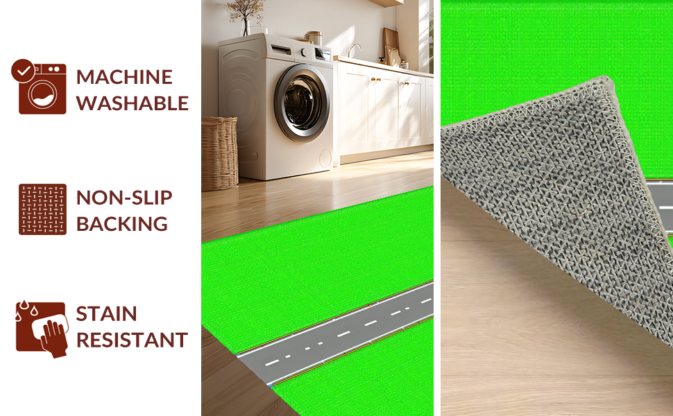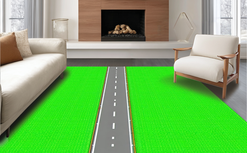 Ultra Soft Area Rug, Non Slip, Stain Resistant, Washable Area Rugs for Living Room, Bedroom, Fun-filled Race Track Inspired Layout(Green) Overview: