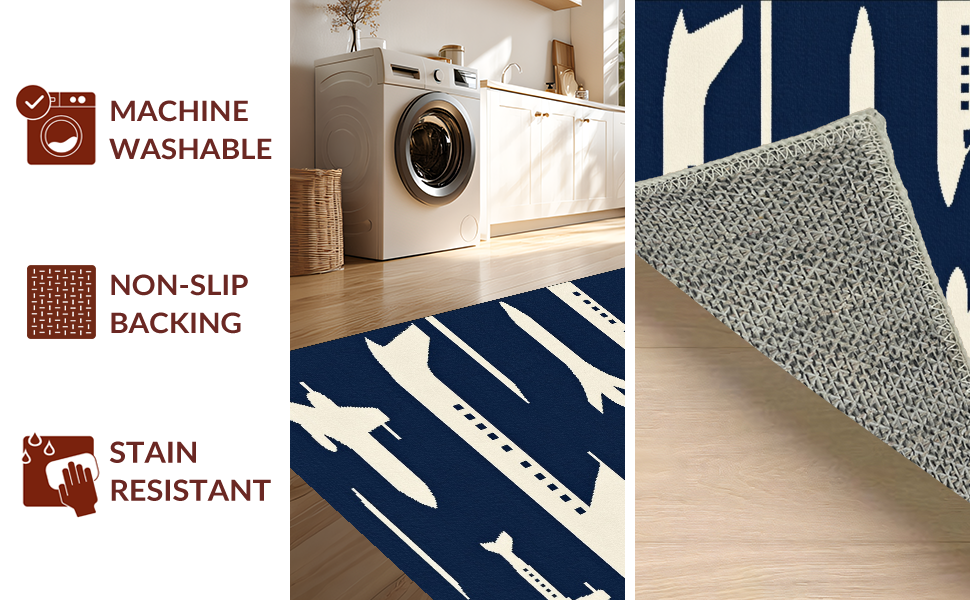 Ultra Soft Area Rug, Non Slip, Stain Resistant, Washable Area Rugs for Living Room, Bedroom, Fun Modern Travel Inspired Design(Blue) Overview: