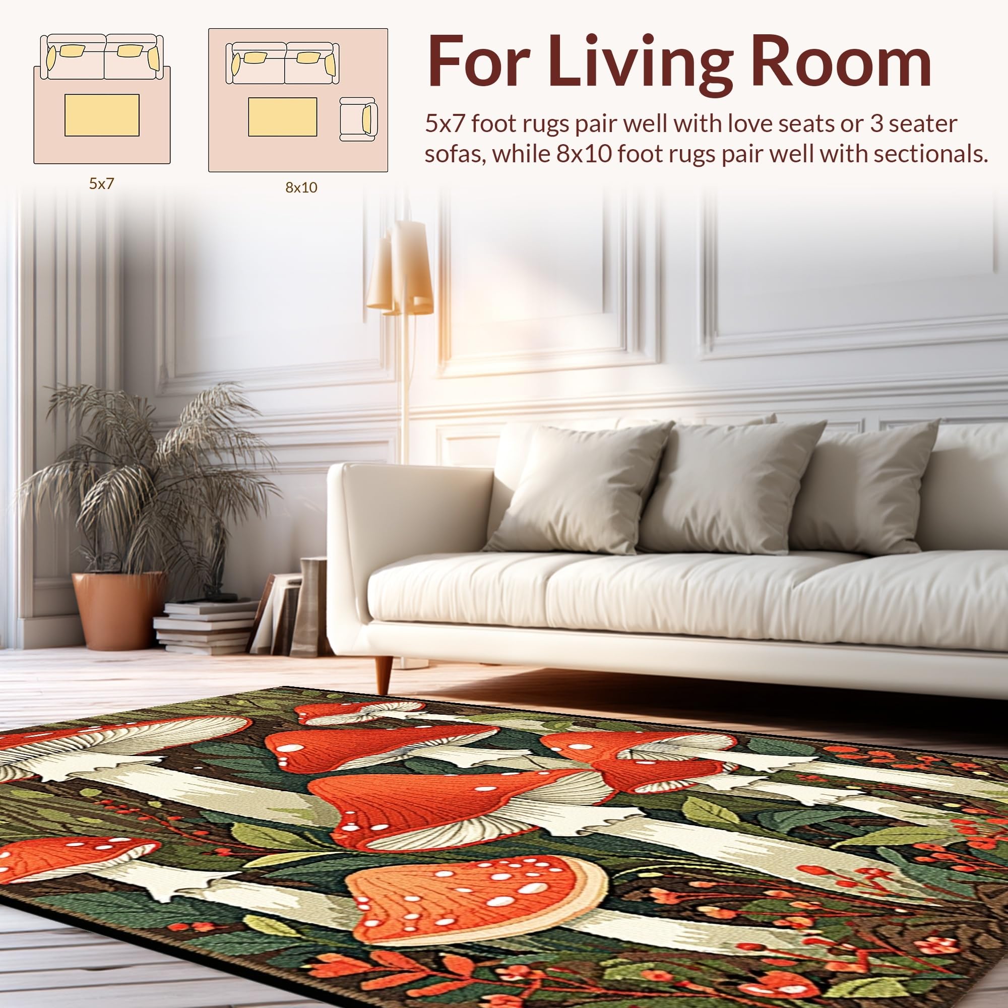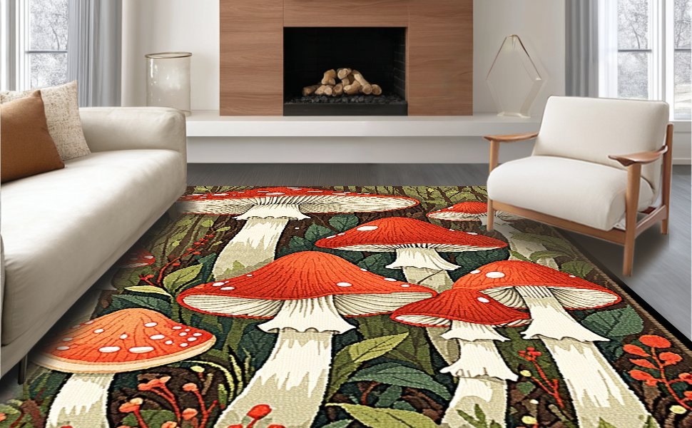 Ultra Soft Area Rug, Non Slip, Stain Resistant, Washable Area Rugs for Living Room, Bedroom, Fun Seasonal Nature Motif(Red) Overview: