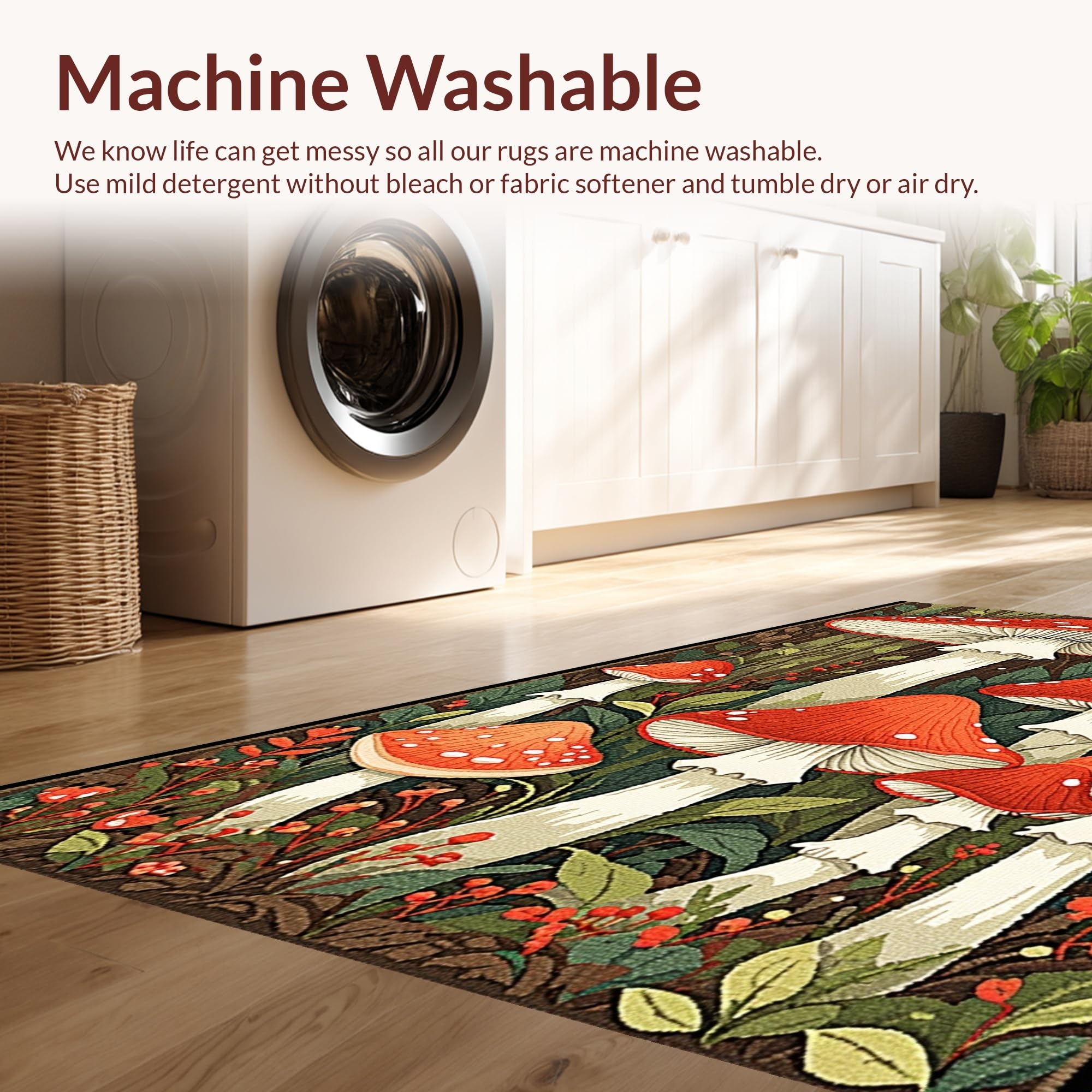 - Machine Washable: Our rugs can be easily thrown in the wash machine.