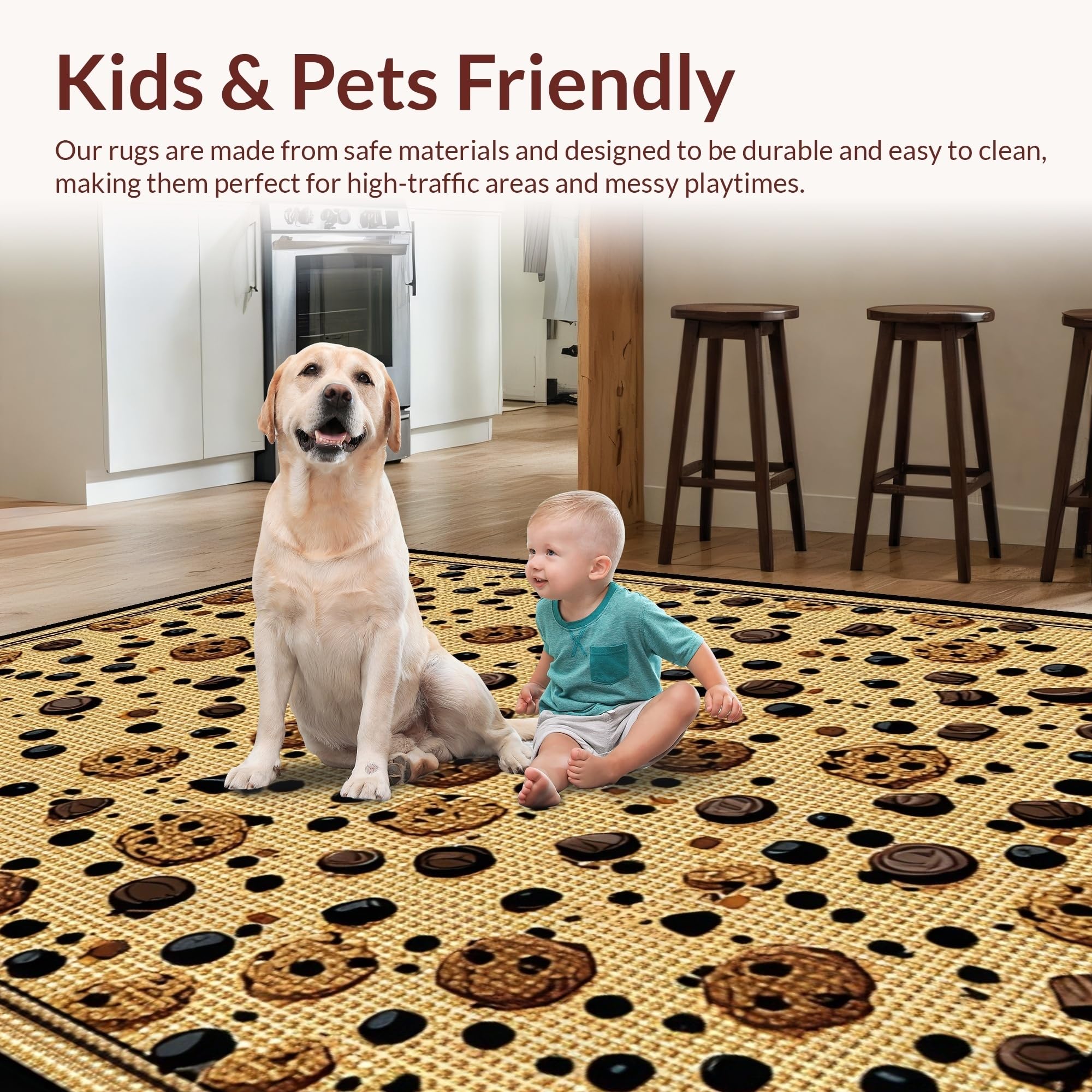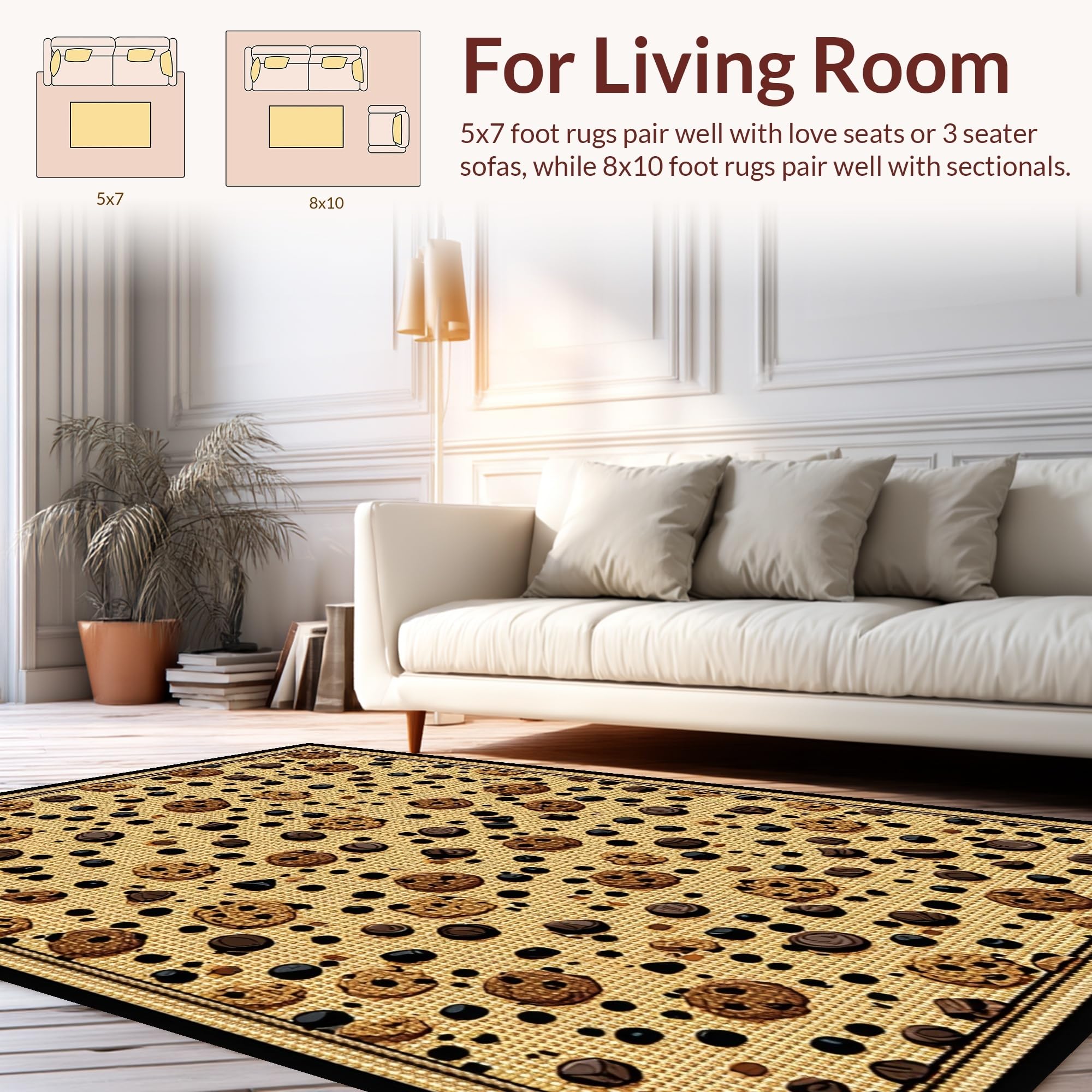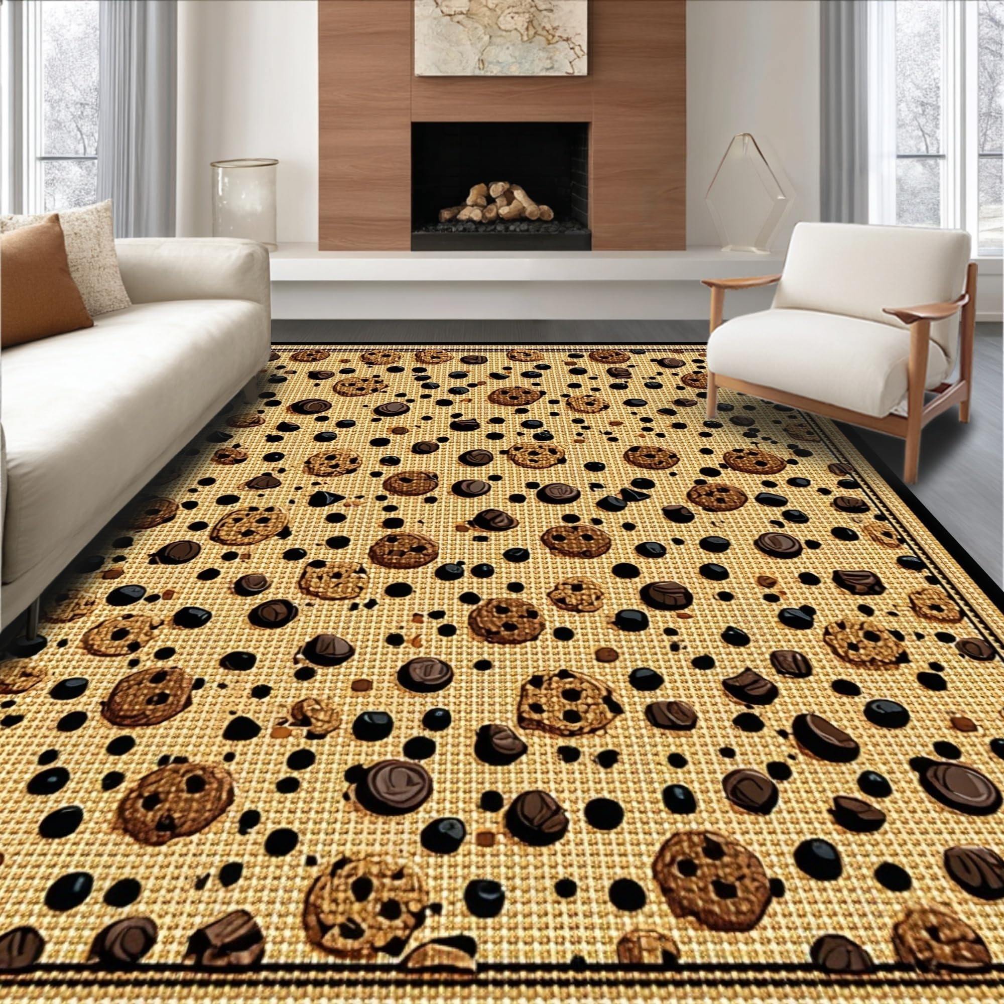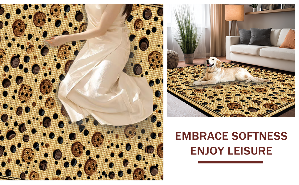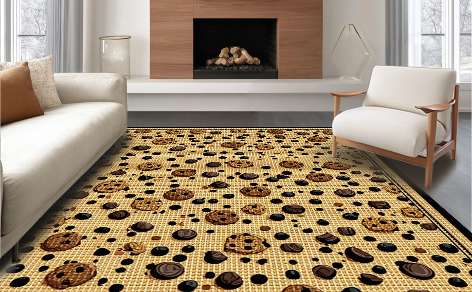 Ultra Soft Area Rug, Non Slip, Stain Resistant, Washable Area Rugs for Living Room, Bedroom, Fun Sweet Treats Circular Theme(Beige) Overview:
