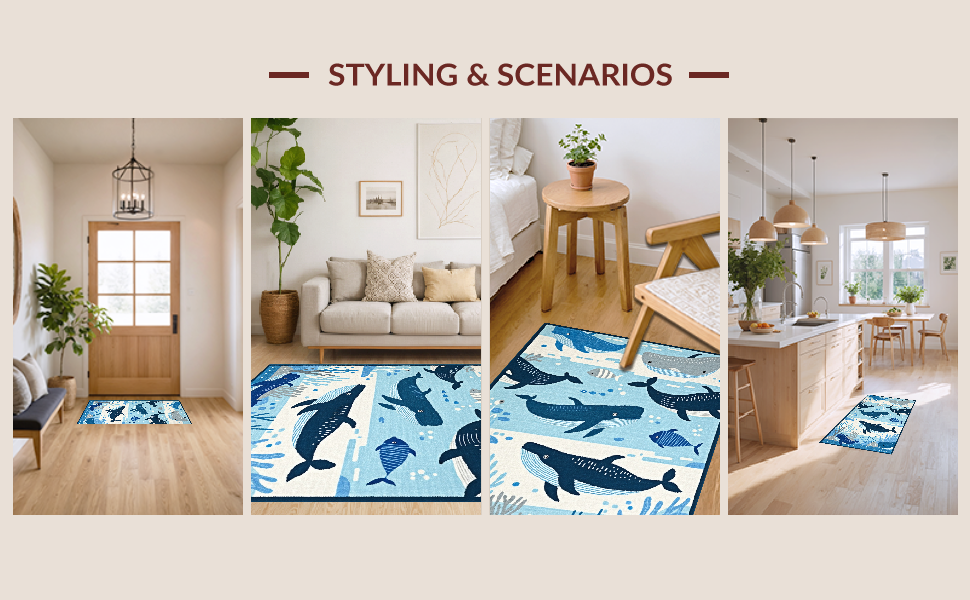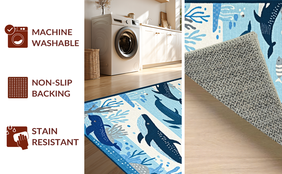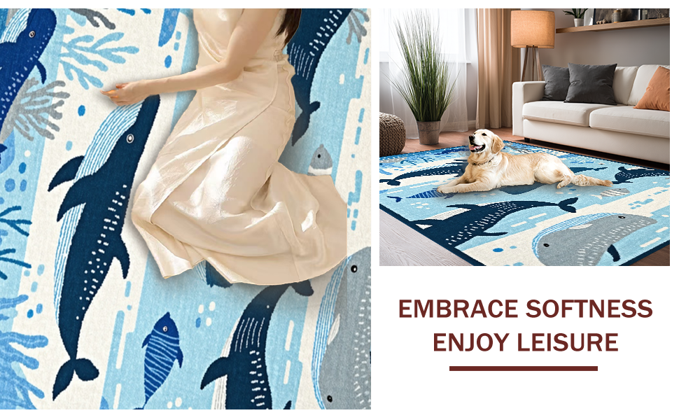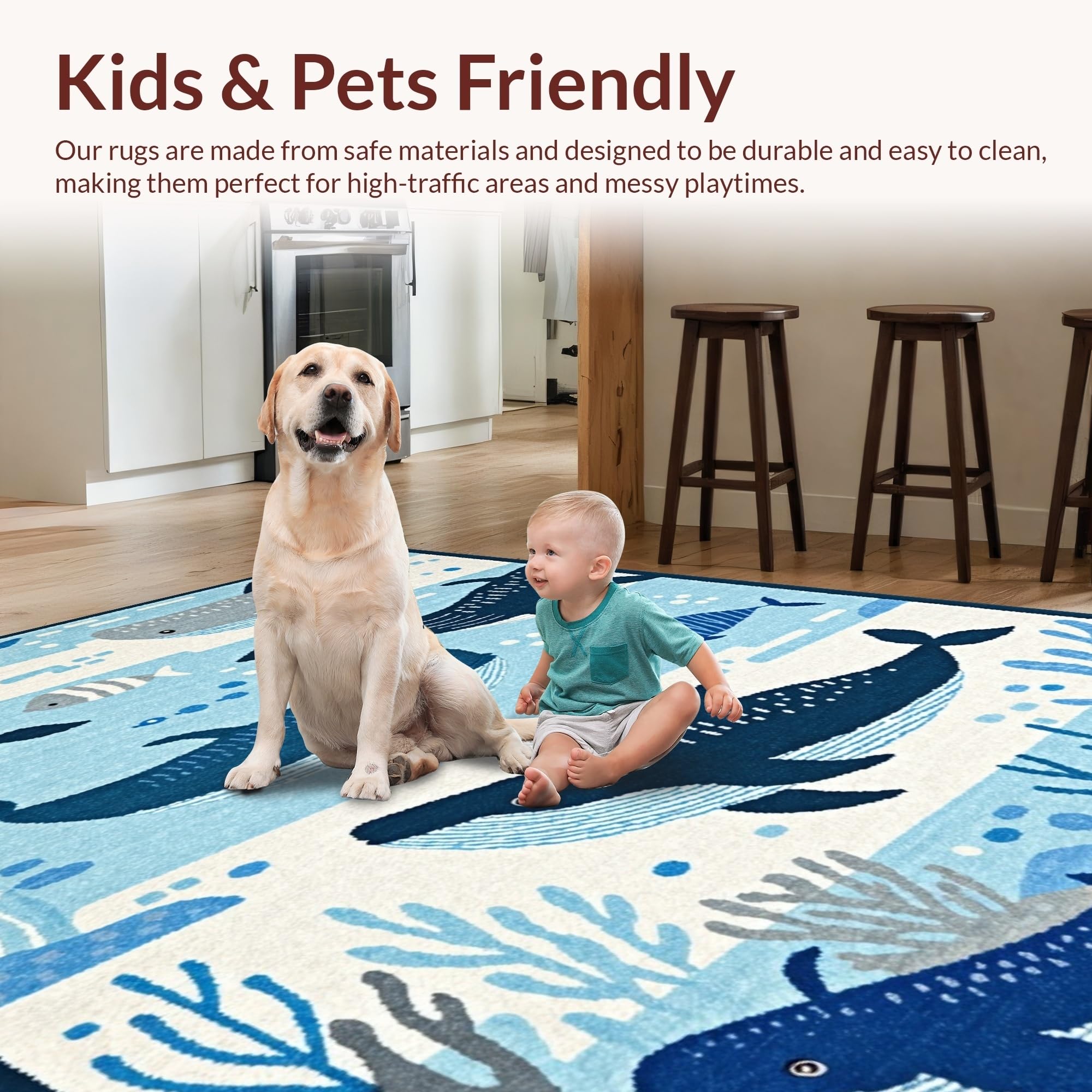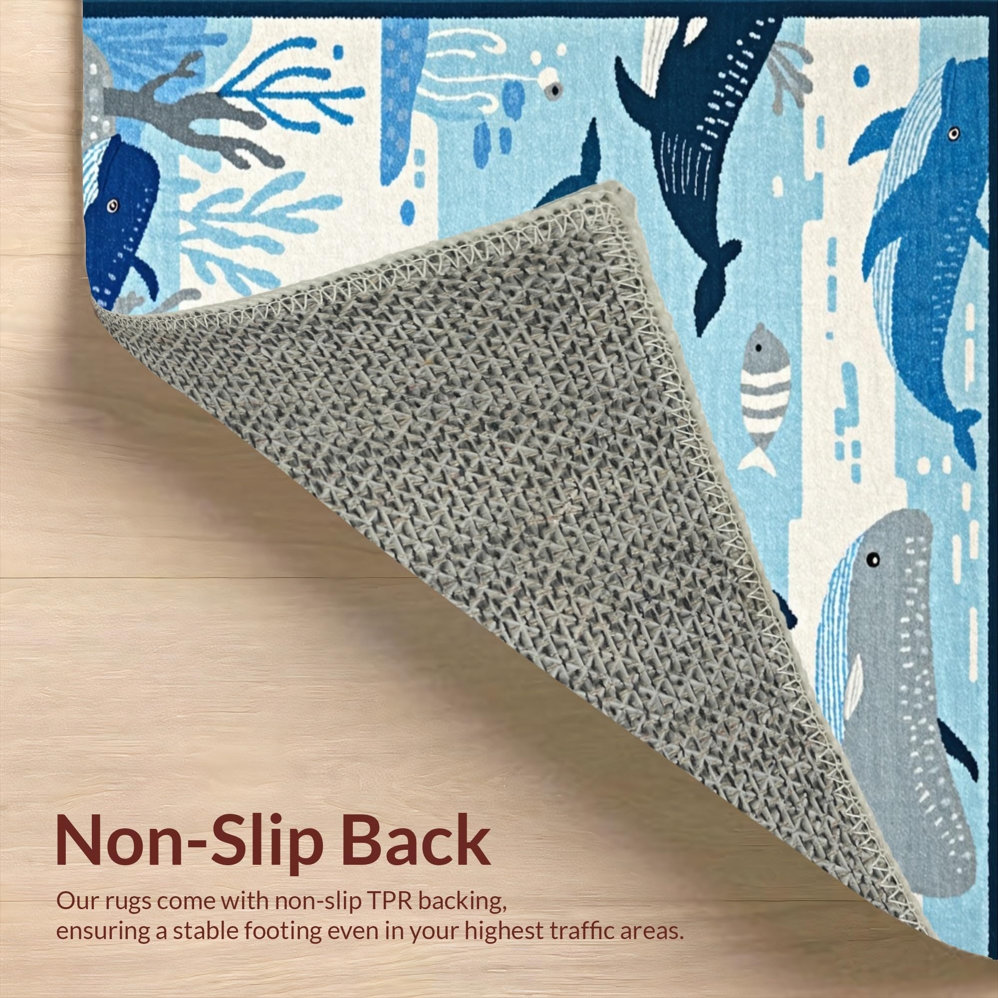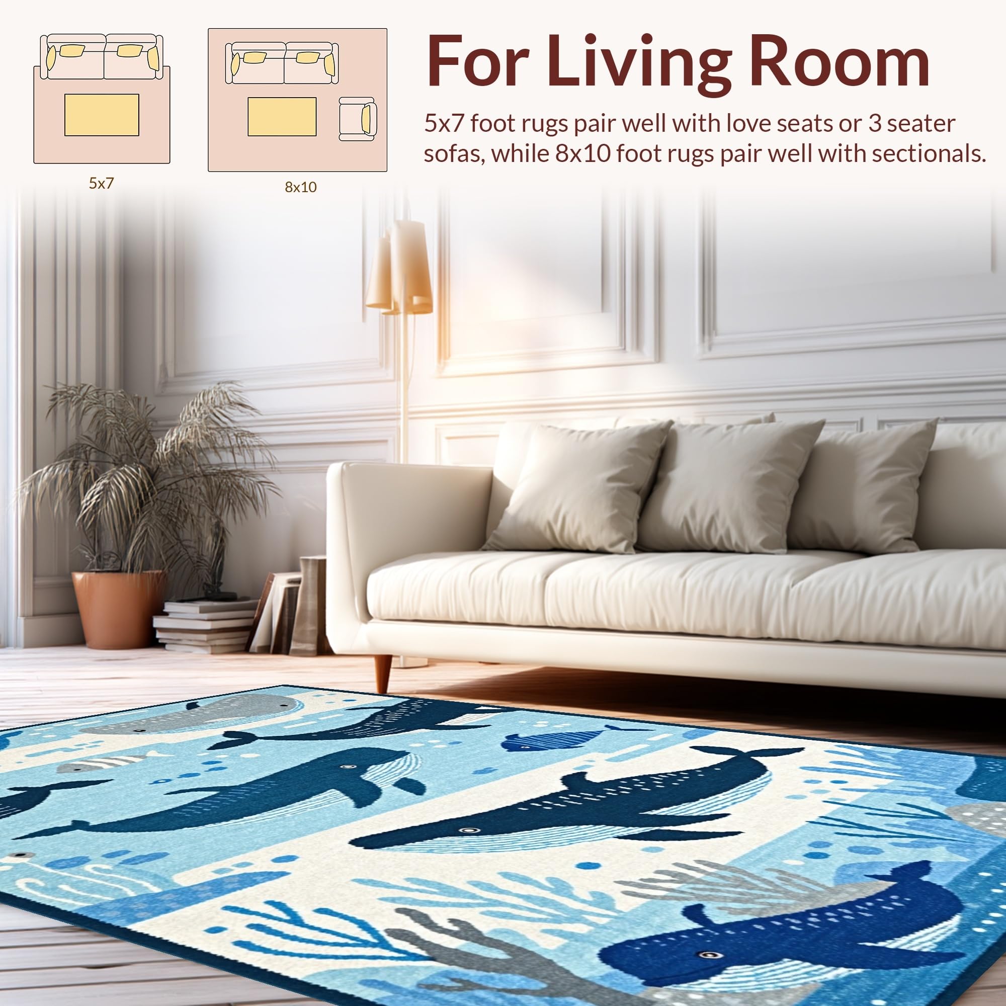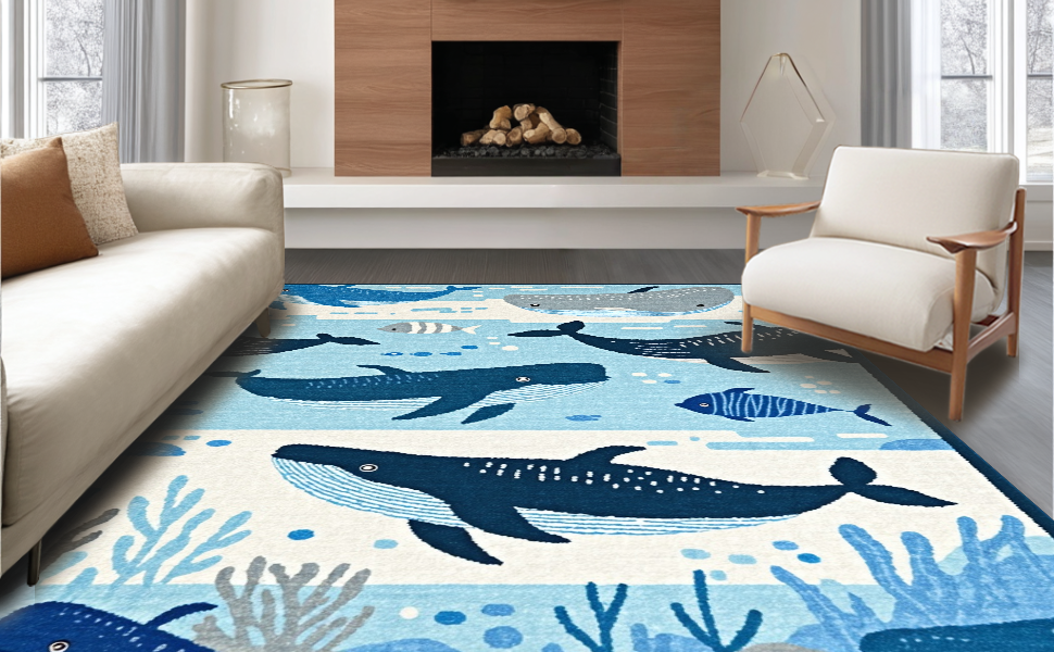 Ultra Soft Area Rug, Non Slip, Stain Resistant, Washable Area Rugs for Living Room, Bedroom, Fun Underwater Fantasy Pattern(Blue) Overview: