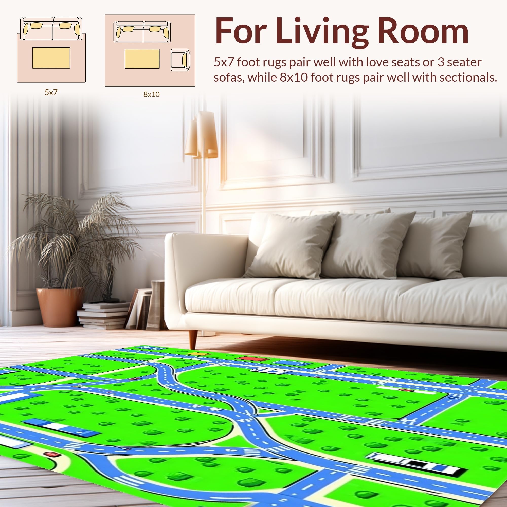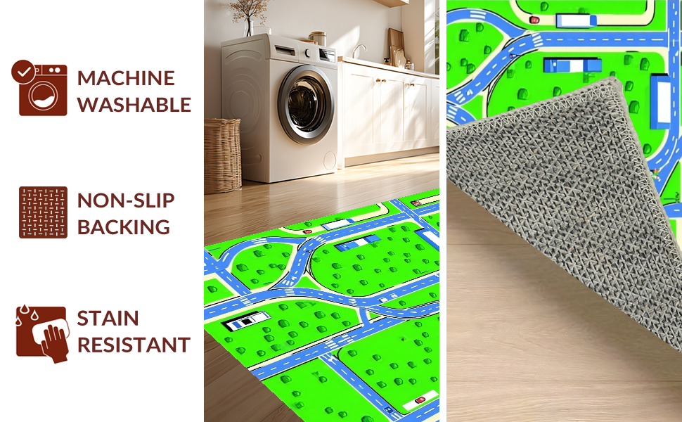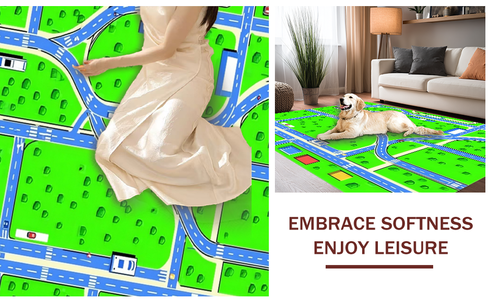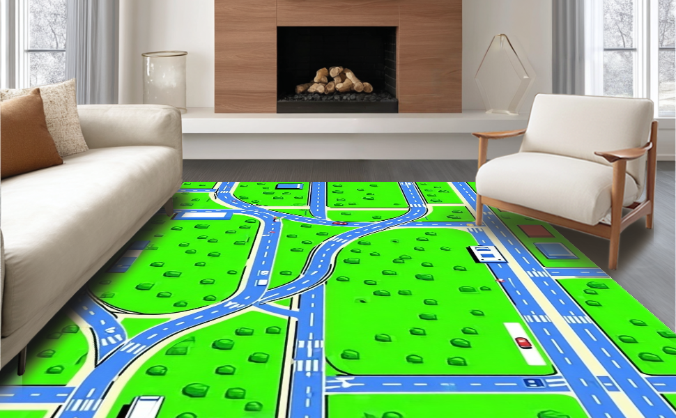 Ultra Soft Area Rug, Non Slip, Stain Resistant, Washable Area Rugs for Living Room, Bedroom, Fun Urban Exploration Graphic(Green) Overview: