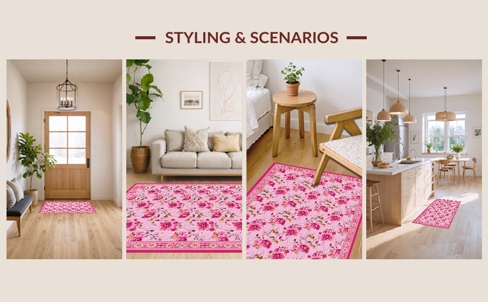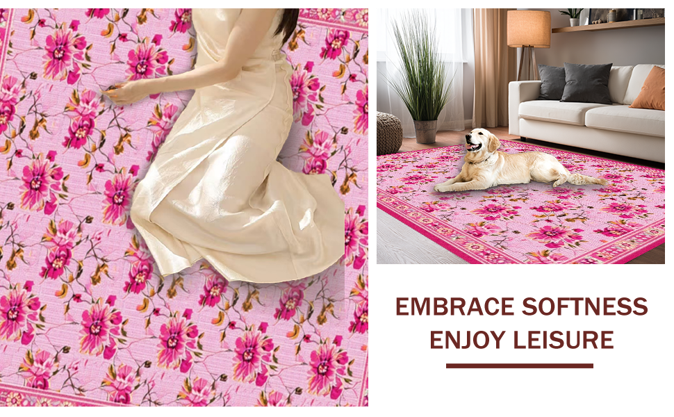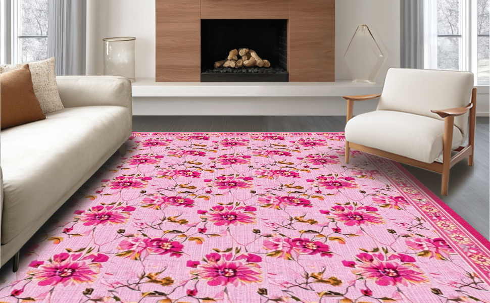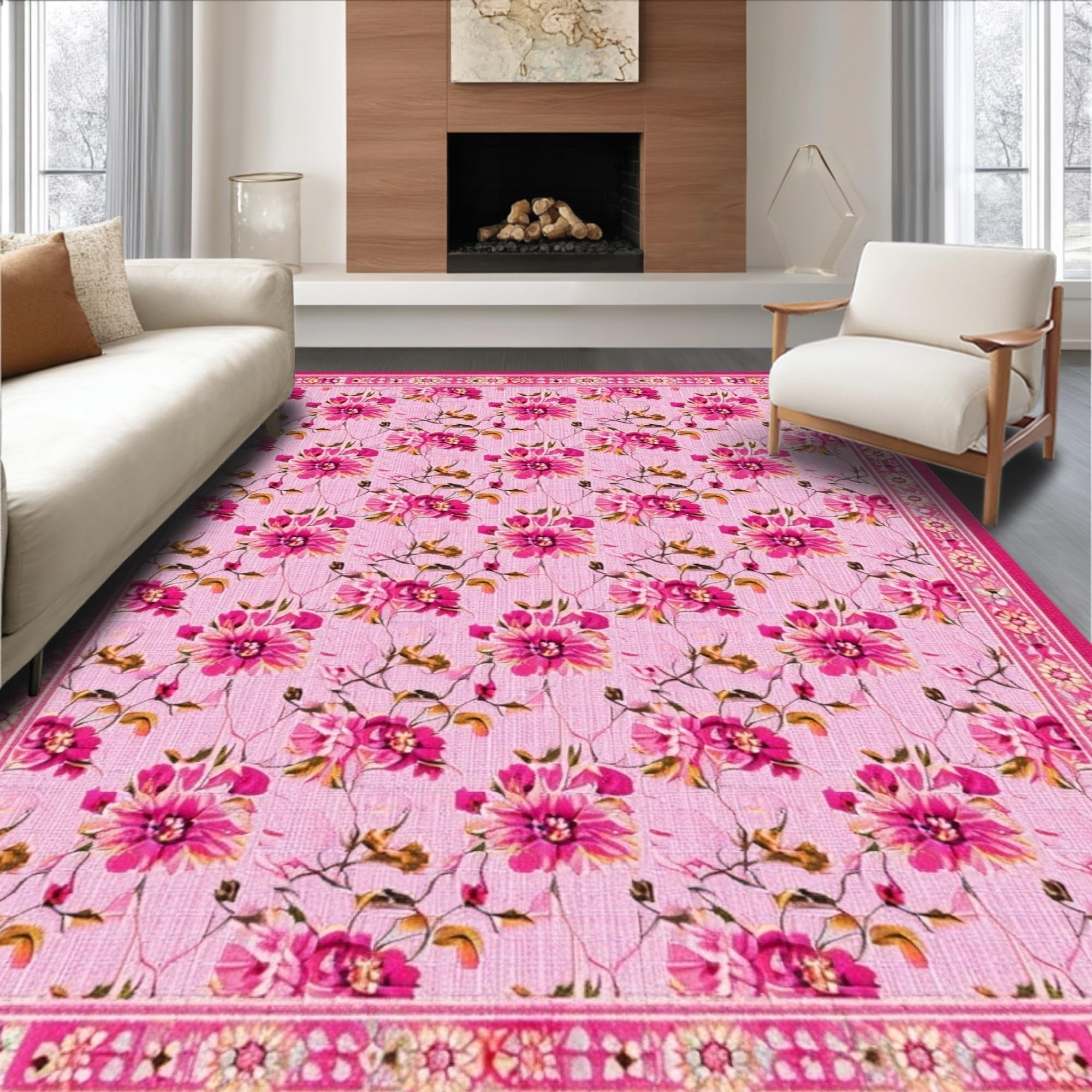 Ultra Soft Area Rug, Non Slip, Stain Resistant, Washable Area Rugs for Living Room, Bedroom, Funky Abstract Flower Aesthetic(Pink) Overview: