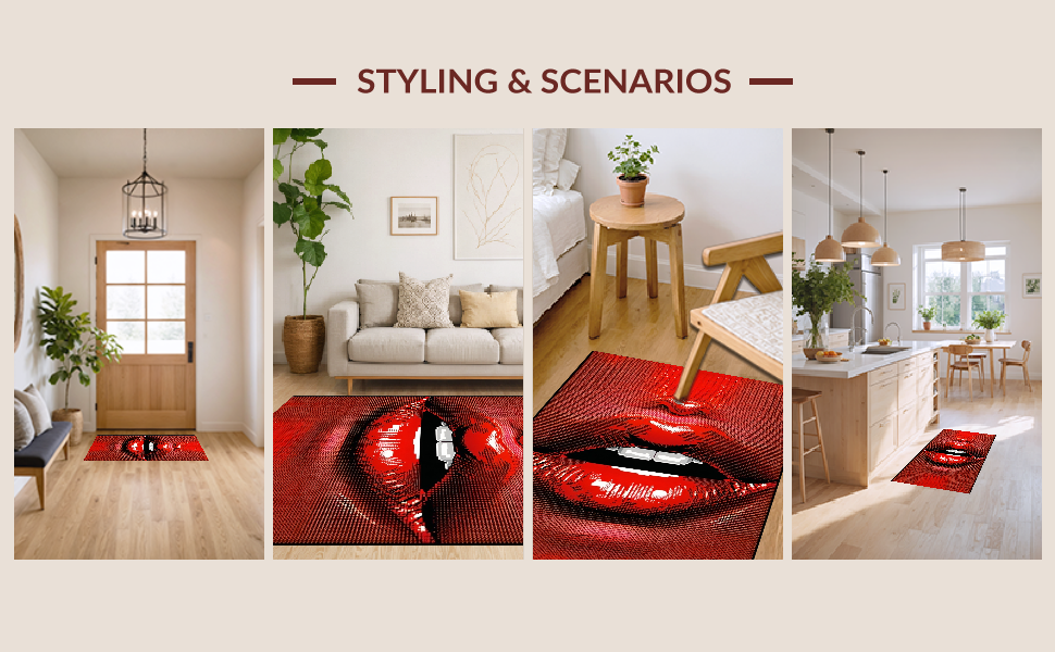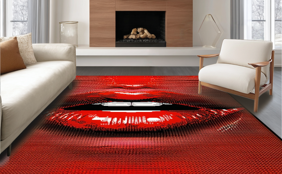 Ultra Soft Area Rug, Non Slip, Stain Resistant, Washable Area Rugs for Living Room, Bedroom, Funky Graphic Artful Splash(Red) Overview: